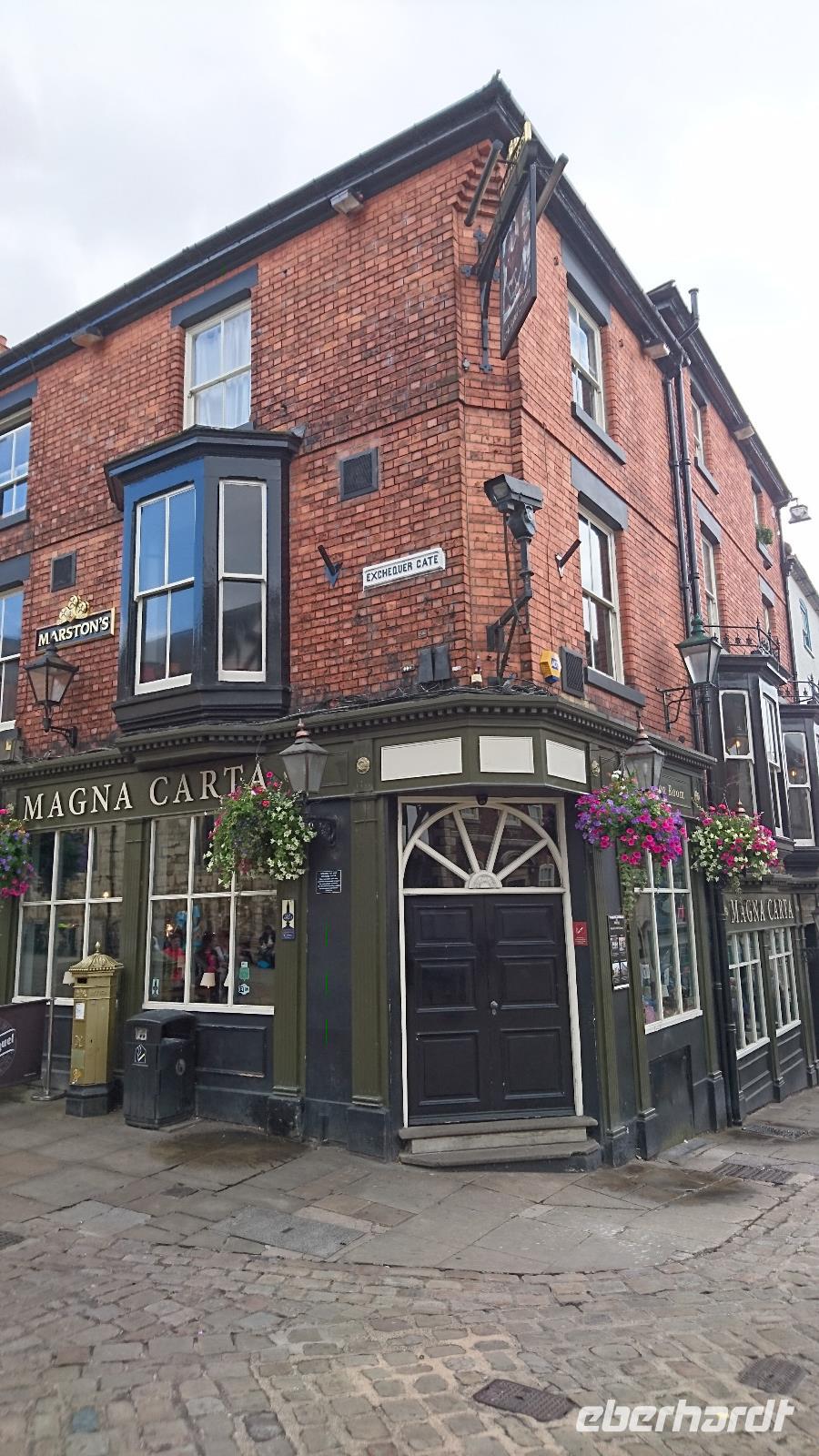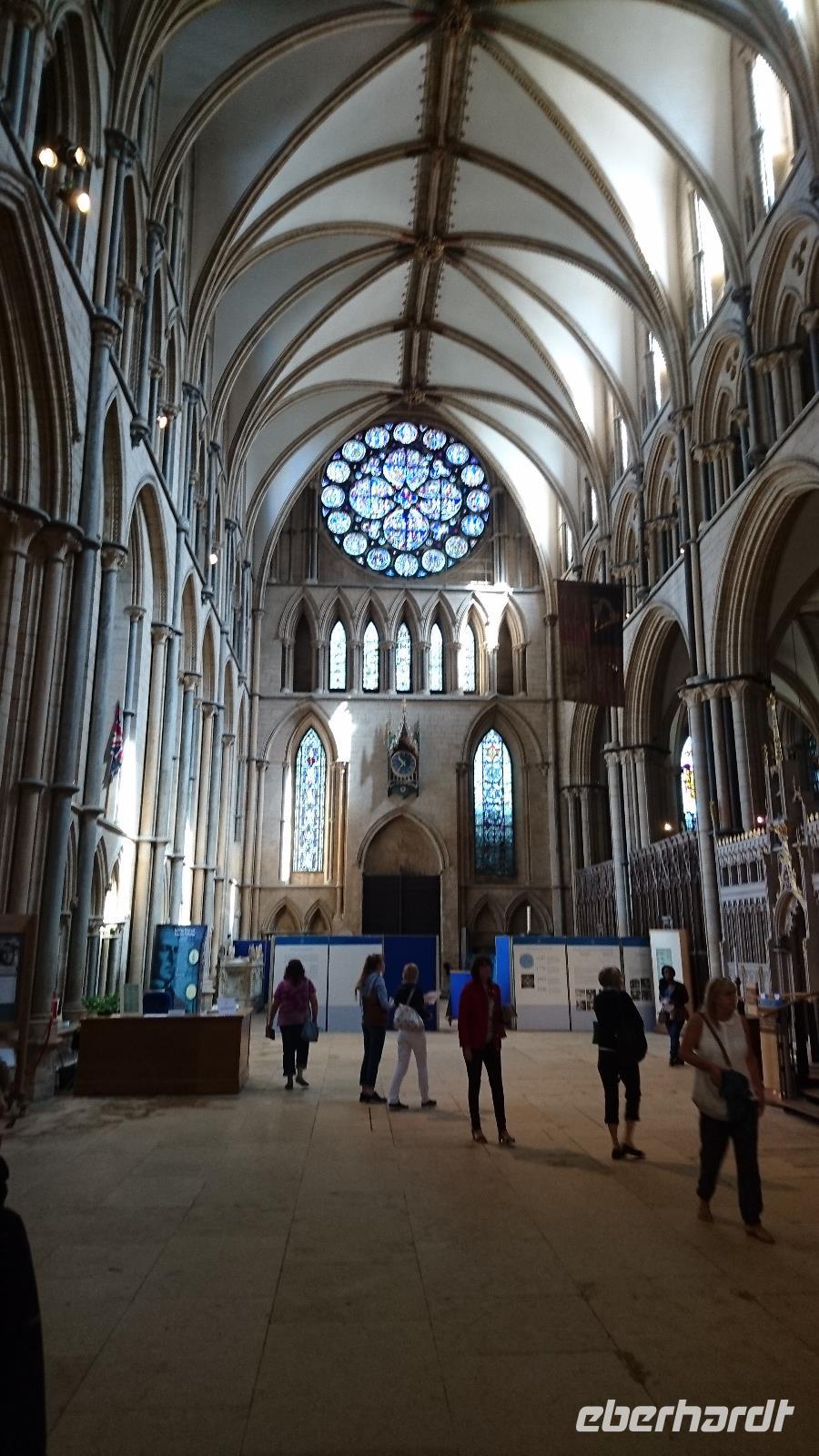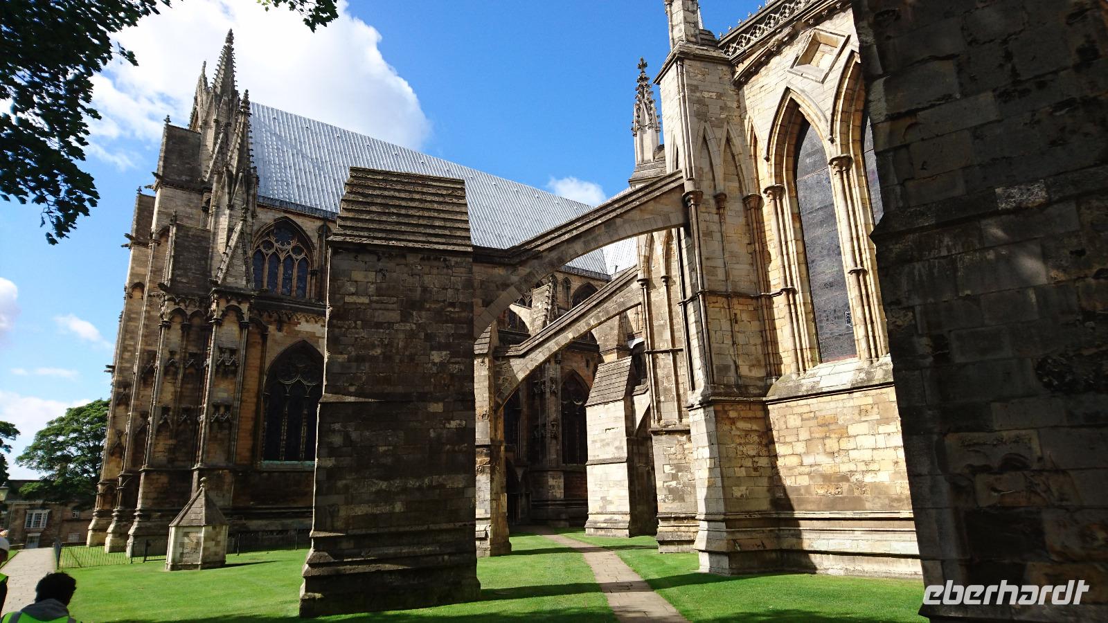 Alte Bauten, die Geschichte vermitteln. Was fällt einem dazu ein? Natürlich, Kirchen. Oft verschwanden die einfachen Katen, die Bürgerhäuser sind nicht mehr so, wie sie wohl einst waren und Castle wurden oft niedergebrannt oder umgebaut. Die dem Himmel zustrebenden und um Gottes Segen bittenden Profanbauten der verschiedenen Kirchenrichtungen jedoch bleiben oft erhalten, ob nun nur in den Außenmauern oder gar vollständig. Heute ging es zu solch einem imposanten Bauwerk in Lincoln. Nahe der Kathedrale parkten wir am Busbahnhof und liefen mit Stefan hinüber. Er erzählte uns vor und in der Kathedrale viele interessante Fakten über Kirchengeschichte und Bauwerksarchitektur, ehe wir uns noch selbst ein Bild machten, auch die alte Sachsen-Kapelle unter dem Bauwerk anschauten, die als ältester Teil erhalten wurde, und die nahe Innenstadt besuchten. Dann ging es weiter in eine Stadt, deren Namen heute oft genannt wird, jedoch eher mit einem Zusatz davor, was zeigt, dass Namen oft kopiert oder weiter vergeben werden. Wir fuhren nicht nach New York, sondern in die alte Stadt York. Nina, unsere Stadtführerin, empfing uns am Coach-Park und wanderte mit uns durch die Stadt und deren Geschichte. Jeder Stein, so meinte man, atmete noch und wenn einer davon erzählen könnte, würde man sicher so vieles Interessantes erfahren. Doch Nina machte ihre Sache gut und so waren wir vergnügt und genossen die Freizeit, auch wenn es hin und wieder etwas regnete. Später fuhren wir weiter nach Harrogate. Leider lernten wir hier britische Arroganz kennen, denn am Crowne Plaza, unserem Hotel, sagte man Stefan gleich beim Eintreffen, dass wir mit unserem deutschen Bus weder zum Ein- und Ausladen, noch zum Parken die Hotelauffahrt benutzen dürften. Das sei englischen Bussen vorbehalten. Dabei wäre Platz vorhanden. So musste Frank später fast 3 km weiterfahren und den Bus anderswo für die Nacht verstecken. Vielleicht handelt es sich bei solchen Anwandlungen bereits um erste Brexit-Erscheinungen? Egal. Wir bezogen unsere Zimmer, aßen zu Abend und ließen den Tag noch etwas ausklingen.