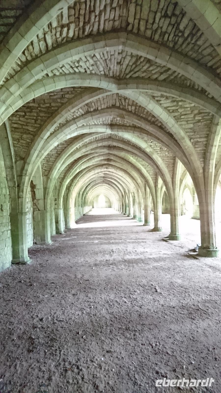 Zeitreise. Gibt es da nur Kathedralen, Abteien und Castle? Weiter oben steht ja schon, dass meist nur jene Bauten die langen Zeiten vom Mittelalter oder früheren Zeiten bis heute überlebten oder zumindest noch nachweisbar machen. Wenn wir also Geschichte zum Anfassen und Schnuppern wollten, mussten wir die alten Bauten besuchen. Unser Weg führte uns heute nach Ripon, einem kleinen Ort unterhalb des Lakeland-Distrikts. Die Kathedrale ist sehr schön erhalten, der Besuch darin war dank Stefans einführender Worte ein Genuss und der Ort gleich um die Ecke lud uns noch ein wenig zum Bummeln ein, ehe wir später weiter zu einem Monument der Geschichte und der kirchlichen Macht fuhren. Leider handelt es sich auch dabei nur um eine Ruine, denn Heinrich der Achte löste ja nach seinem Bruch mit Rom alle Klöster auf wandelte verbliebene Kirchen in Anglikanische um und verleibte sich die so offenen Besitztümer und Immobilien an. Das riesige Gelände von Fountains Abbey verkaufte er später und nach mehreren Besitzerwechseln, die zum Glück nie zum vollständigen Abbruch der alten Abtei führten, wird das Gelände nun vom britischen National Trust betreut und ist zugänglich. Sieht man die alten Mauern, Treppentürme, schmale und trotz Wind und Wetter heute noch haltende Bögen, Kreuzgänge und Flächen, kann man sich einen bleibenden Eindruck von der Macht und vom Reichtum er alten Klöster machen. Natürlich weckt das Begehrlichkeiten. Denken wir nur an Philipp de Schönen von Frankreich, der wegen eigener Schulden einst gemeinsam mit Papst Clemens den Templerorden auflöste und teilweise zerschlug. Verrückt und doch Geschichte. Gebannt standen wir vor den Mauern, gingen durch sie hindurch und freuten uns, solche Zeugnisse der lebendigen Geschichte heute noch sehen und besuchen zu können. Danach fuhren wir weit nach Norden und fühlten uns schon ein wenig wie in Schottland, denn die Landschaft war sehr ähnlich, Südlich von Penrith in einem Hotel, das man nur über einen schmalen Zufahrtsweg erreicht, betteten wir dann unser Haupt, konnten aber auch noch eine Weile einer echt englischen Hochzeit lauschen und einiges von den hiesigen Bräuchen sehen und erleben, ehe der Tag zu Ende ging.