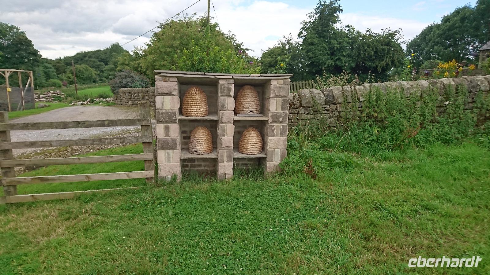 Die Cotswolds sind das Herz Englands. So liest man es allerorten. Schon am Morgen auf unserer Fahrt nach Cirecester sahen wir besonders saftige Wiesen, gut stehende Kornfelder und wunderbare kleine Dörfer und Cottages am Wege, schauten uns dann die größte Stadt des Gebietes an und lachten besonders über einen kleinen Antiquitätenladen, in dem man fast alles kaufen konnte, also die Chance hatte, sich seine eigene Vergangenheit neu zu gestalten. Von da ging es weiter zu einer kleinen, erst 2014 eröffneten Destillery, die auch noch den Namen des Herzens von England trug. Leider wollte man uns da nicht wirklich sehen, denn seit einigen Tagen lag das Unternehmen mit den Anwohnern des Ortes Stourton im Streit, wollte daher niemanden aus der Umgebung mit anrollenden Bussen provozieren und gab uns daher deutlich zu verstehen, dass wir nicht willkommen waren. Nun gut, wir fuhren weiter, denn Stefan baute noch einen besonderen Programmpunkt in unseren schönen Ablauf ein. Er meinte, wenn wir schon in der Gegend waren, sollten wir auch Shakespeare einen Besuch abstatten. Einige von uns erinnerten sich an den Schul-Englisch-Unterricht. Linda und Dave waren damals in Stratford upon Avon. Nun kamen wir auch hierher. Wir erschlossen uns die ganze Stadt, sahen das Royal Shakespeare Theater der RSC, standen vor Shakespeares Geburtshaus und schlenderten vorbei an wegen letzter Olympiasiege in Gold gestrichenen Briefkästen und durch die kleinen Läden des alten und doch an einigen Stellen neuen, jedoch wunderbar restaurierten Ortes, ehe wir am Nachmittag ins Gebiet eines weiteren Helden Englands aufbrachen. Nach Nottingham. Robin Hood trafen wir leider nicht an, nachdem wir unser Hotel in der Innenstadt bezogen, doch Stefan lud uns ein, das heutige Dinner nicht profan da zu genießen, sondern in den wohl ältesten Pub Englands, vielleicht gar der Welt zu gehen. Ye olde Trip to Jerusalem. Quer durch die Stadt marschierten wir, nachdem ein Platzregen verebbte, wegen dem wir fast mit dem Taxi hätten fahren müssen, und hatten dann einen urig aus dem Felsen der darüber liegenden Burg geschlagenen eigenen Pub-Raum für unsere Abendgestaltung mit tollem Ale und einem leckeren 2-Gang-Menü, das wir uns auch noch aus einer umfangreichen Karte zusammenstellen konnten. Danach ging es zurück zum Hotel und wir genossen die Nachtruhe und freuten uns auf den nächsten Tag.