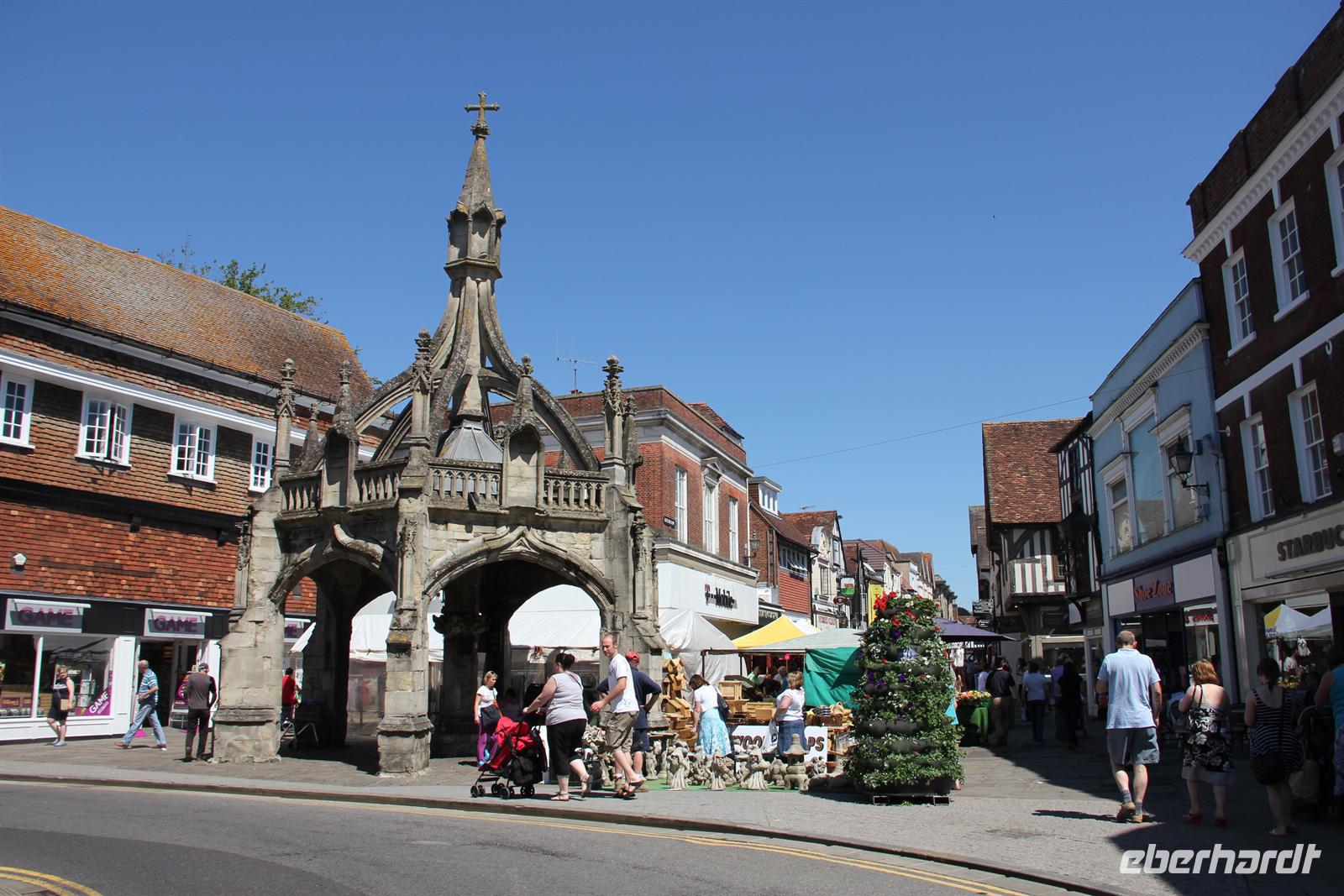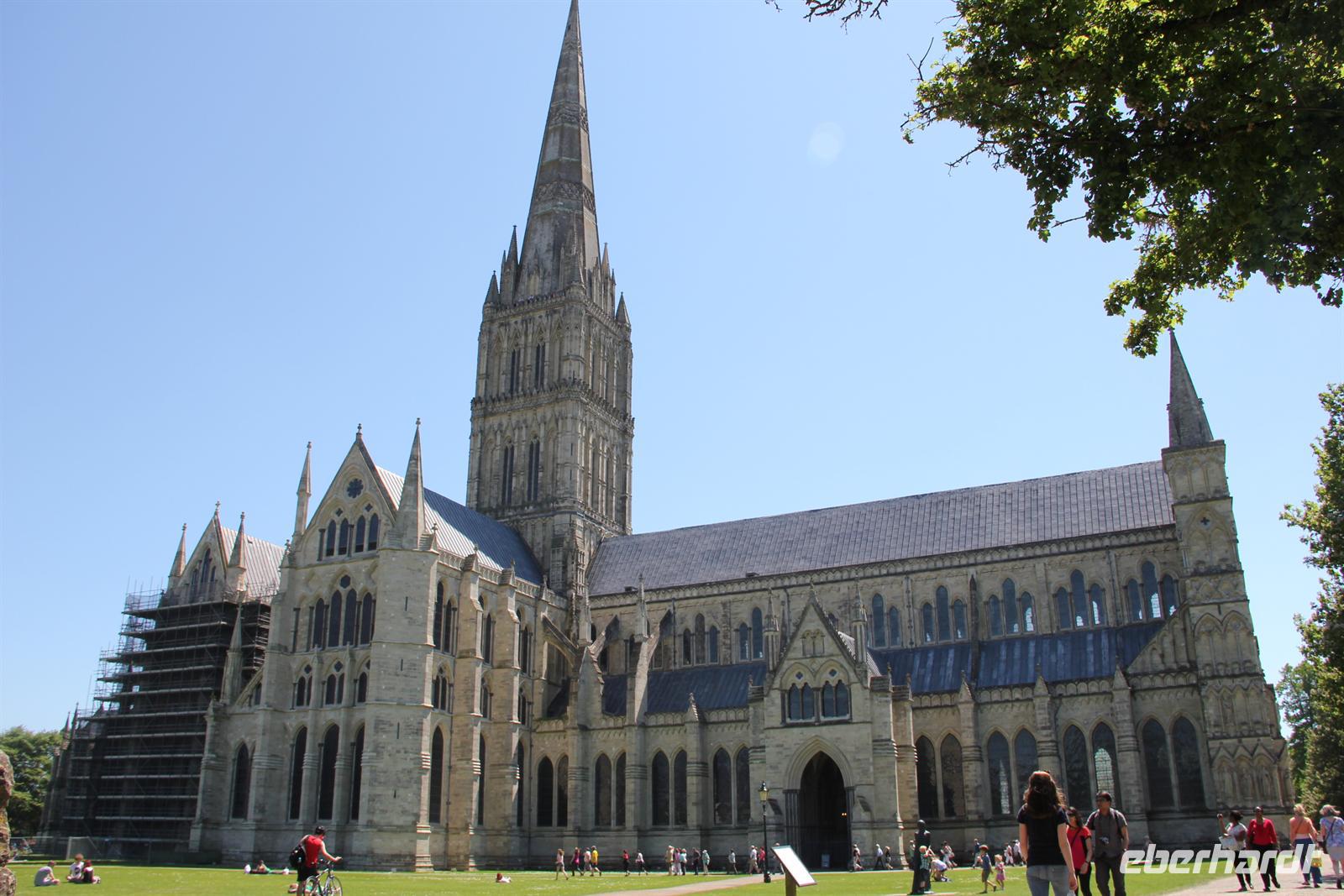 Heute hieß es auf nach Stonehenge, dem wohl Sagen umwogenstem Steinkreis der Welt! Doch vorher stand noch eine Stadtrundfahrt durch Bristol an. Vorbei am Bahnhof Bristol Temple Meads. Im 12. Jahrhundert errichtete der Templerorden die benachbarte Temple Church, von welcher sich der Name des Bahnhofes ableitet. Es ging weiter vorbei an der Clifton Suspension Bridge, einer Hängebrücke, die sich über den Fluss Avon spannt, und als eines der Wahrzeichen Bristols angesehen wird. Der erste Halt war nahe der SS Great Britain, welche heute ein Museumsschiff ist. Dann ging es weiter durch die Stadt und wir hatten das Glück die Bristol Cathedral von innen besichtigen zu können. Diese anglikanische Kirche hat besonders durch ihre farbigen Fenster und dem gotischen Baustil einiges zu bieten. Nur einige Meter weiter konnten wir noch einen Blick auf Wills Memorial Building erhaschen, welches heute zum Universitätsgelände gehört. Dann machten wir uns auf den Weg Richtung Stonehenge und trafen unterwegs noch auf das Westbury White Horse. Es ist das älteste von mehreren Abbildern eines weißen Pferdes und wurde 1778 erstellt. Schließlich kamen wir in Stonehenge an, wo jeder einen Audioguide bekam und das Gelänge dann auf eigene Faust erkunden konnte. Stonehenge selbst ist ein in der Jungsteinzeit begründetes Bauwerk, wessen Entstehungsgeschichte bis heute ungeklärt ist. 1986 wurde das eigenartige und zugleich faszinierende Bauwerk schließlich von der UNESCO zum Weltkulturerbe ernannt. Danach ging es weiter nach Salisbury. Doch gleich einige Minuten nachdem wir losgefahren waren, hielten wir auch schon wieder an. Der Grund: am Straßenrand war ein Stand mit frischen Erdbeeren, wo wir natürlich zuschlagen mussten. In Salisbury angekommen, führte uns unsere Reiseleiterin Simone durch die Stadt und wir sahen z.B. das Marktkreuz von Salisbury, den Markt und die St. Mary’s Cathedral. Dann war Zeit um die Stadt individuell zu besichtigen und mit einigen Tipps, was man sich ansehen sollte ging jeder seiner Wege. Alle haben schließlich noch kurz im Supermarkt vorbeigeschaut und dann ging es nach Plymouth. An den Fovant Badges wurde noch ein kurzer Fotostopp eingelegt. Dies sind in die Landschaft eingelassene überdimensionale Regiments-Abzeichen. Sie wurden von in der Nähe stationierten Soldaten errichtet, die während des ersten Weltkriegs darauf warteten, nach Frankreich zurückkehren zu können. Am Abend kamen wir schließlich in unserem Hotel in Plymouth an, welches wir für zwei Nächte bezogen.