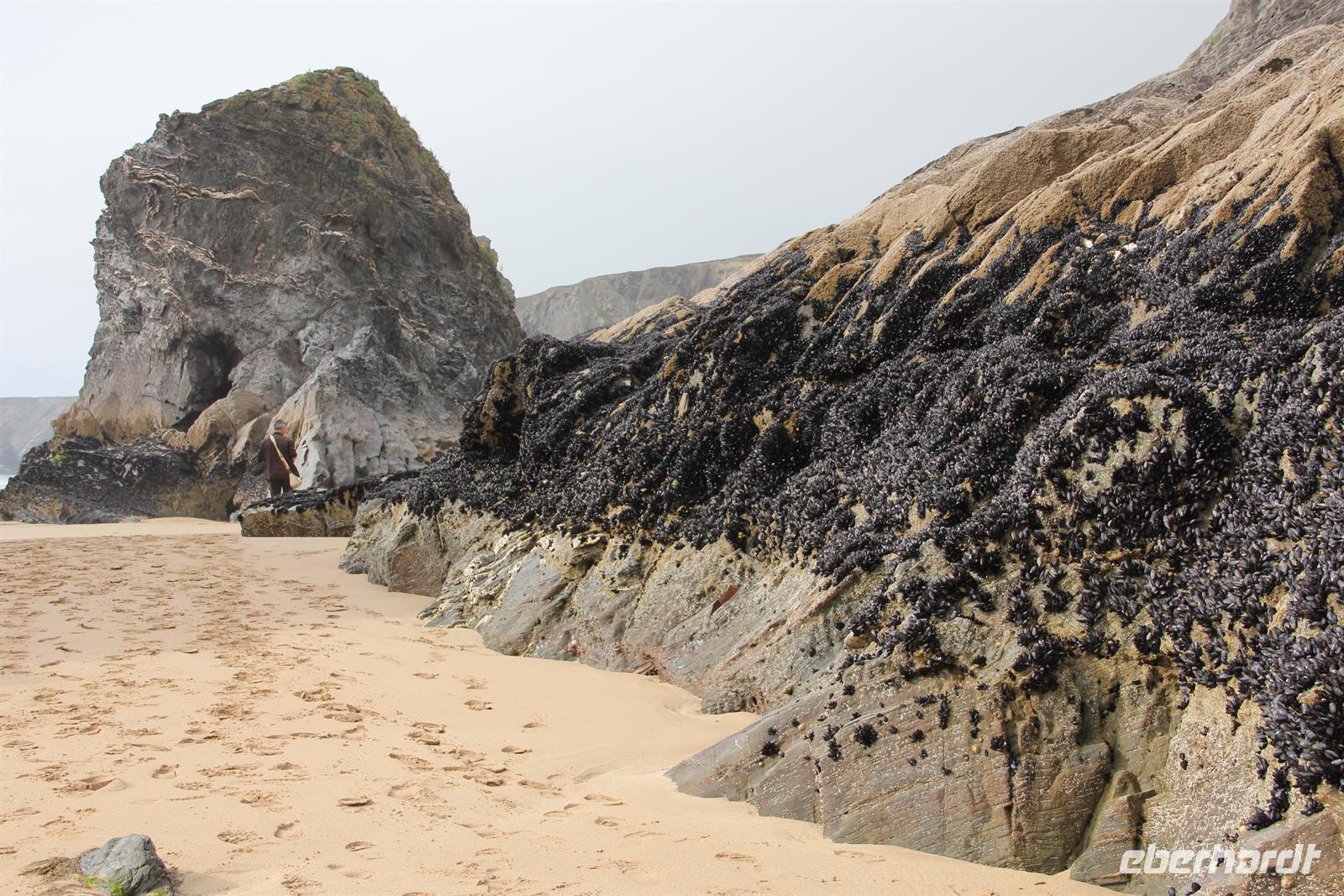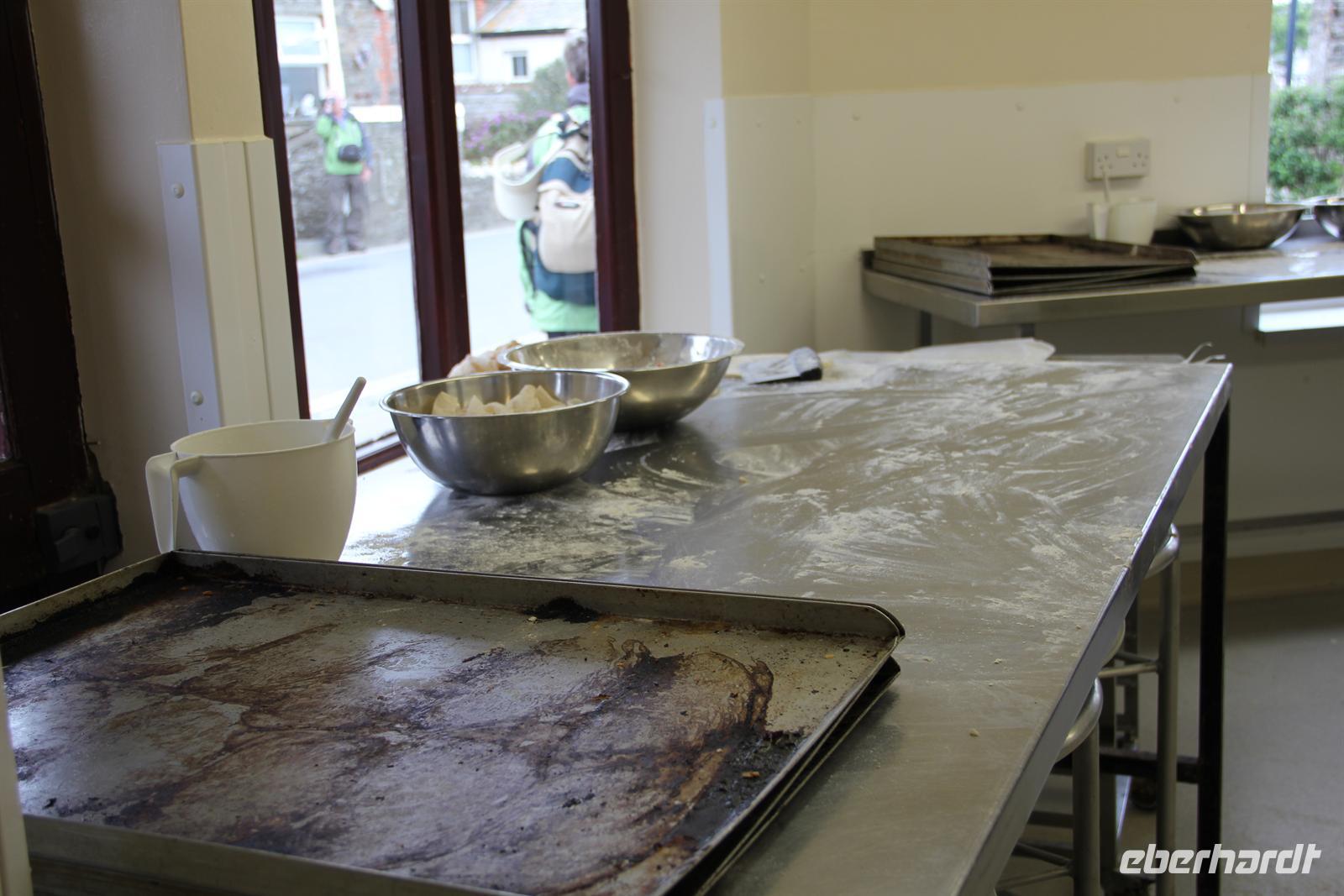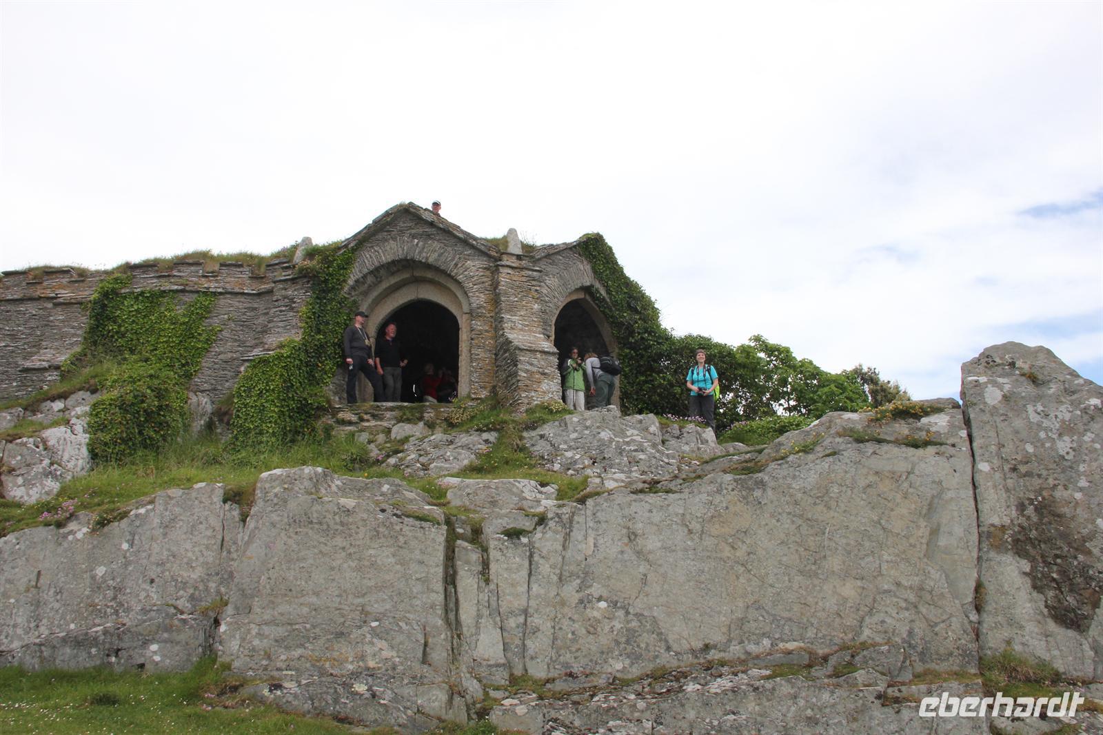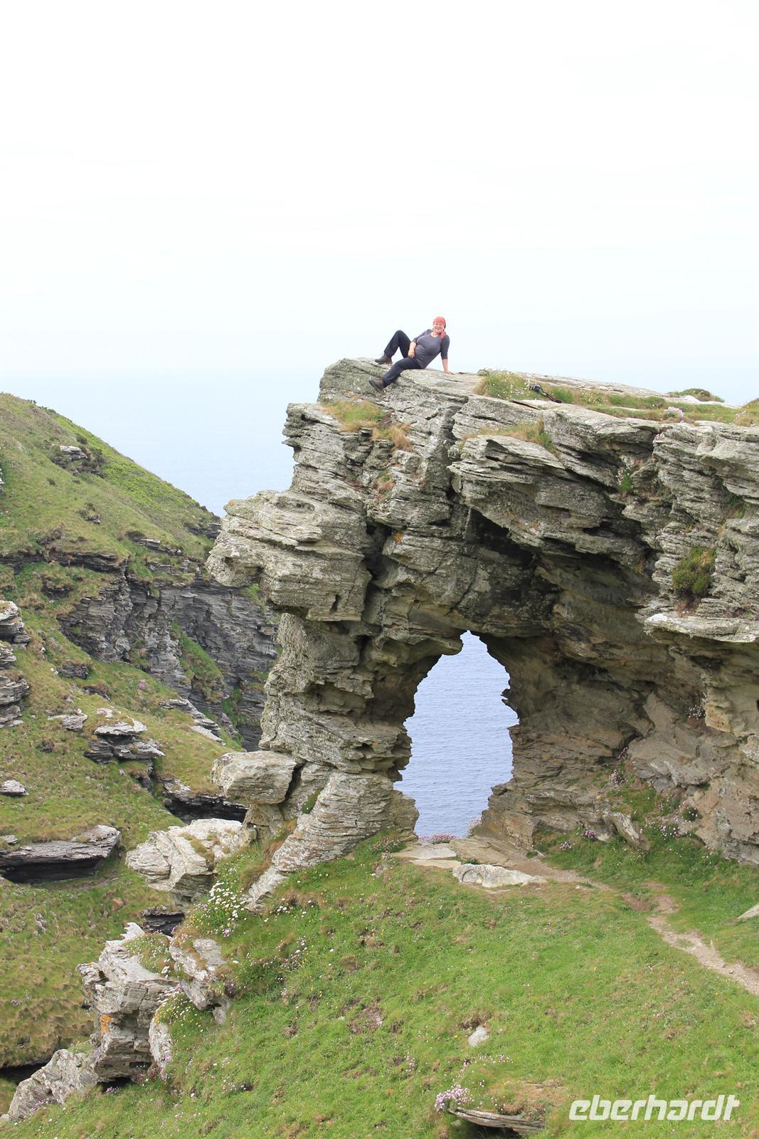 Heute wanderten wir auf den Spuren von König Artus. Unser Weg führte uns nach Tintagel, doch bevor die Wanderung starten konnte, mussten wir einfach noch einen Halt an einem echten Cornish Pasty Geschäft einlegen. Damit an diesem Tag auch jeder in den Genuss dieser regionalen Spezialität kommen konnte, zeigte Simone uns einen Laden, in dem diese Köstlichkeit noch von Hand hergestellt wird. Gefüllt mit allerlei Köstlichkeiten, wie Lamm oder auch Käse & Zwiebel, war für jeden Geschmack etwas dabei. Dann ging es zur Tintagel Church und schließlich erklommen wir Tintagel Castle, was für die kleineren unter uns eine echte Herausforderung wurde, da die Treppenstufen manches Mal fast höher waren als die eigenen Beine. Endlich erreichten wir unsere erste Etappe und hier, wo der sagenumwobene König Artus der Legende nach gezeugt worden sein soll, herrschte durch den vielen Nebel eine mystische Atmosphäre. Wir konnten wieder hinabsteigen und die Höhle des Zauberers Merlin von der Ferne aus sehen. Doch auch an diesem Tag sollte unser Motto wieder lauten: Alles was wir hinabsteigen, müssen wir auch wieder hinauf! Also ging es auf und ab und auf und ab, vorbei am Elefantenfelsen und am Ladies Window nach Boscastle, der Stadt mit einem Hexenmuseum. In geselliger Runde wurde noch ein Kaffe oder ein traditioneller Cornish Cream Tea getrunken. Bevor es zurück ins Hotel ging, führte unsere Reiseleiterin uns noch zu den Bedruthan Steps, einer Bucht dessen Felsen von Muscheln geradezu besiedelt ist - ein wahrhaft paradisischer Ort.