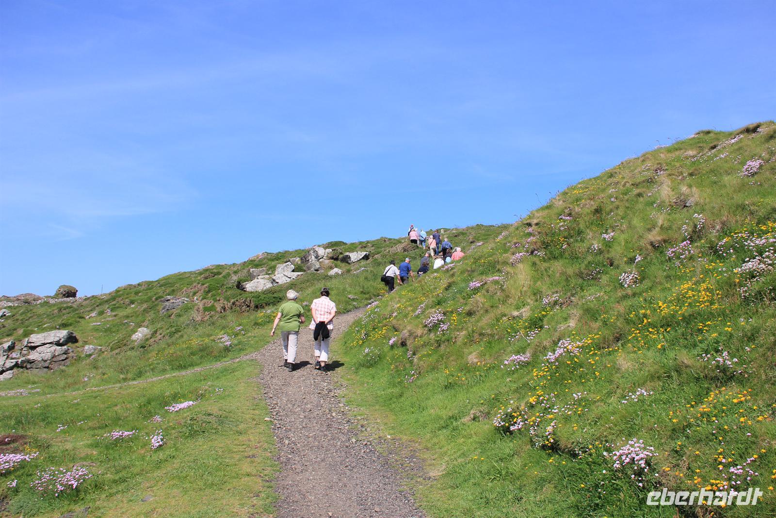 Am heutigen Morgen war unser erstes Ziel eine ehemalige Rosamunde Pilcher Kulisse: der Bahnhof St. Erth. Obwohl die meisten unserer Wandergruppe keine großen Pilcher-Fans sind, war es doch schön dort, denn mit seinen Pflanzen und Bänken lädt der gepflegte Bahnhof durchaus zum kurzen Verweilen ein. Dann ging es weiter zum St. Micheal’s Mount, einer Gezeiteninsel, auf welcher sich eine Burg und ein subtropischer Garten befinden. Unsere Fahrt ging weiter und unsere Reiseleitung Simone brachte uns zu einem Steinkreis aus der Bronzezeit, der sich „Die Hübschen Mädchen“ nennt. Der Legende nach sollen diese Steine einmal Mädchen gewesen sein, die am 7. Tag, dem Ruhetag, trotzdem tanzten und lachten und daher zu Stein erstarrt sind. Gegen Mittag kamen wir dann am eigentlich Ausgangspunkt des heutigen Tages an: Sennen Cove. Die Wanderung führte uns auf der „Schönen Szenerie Straße“ entlang den Steilklippen und wunderschönen Buchten nach Land’s End, dem westlichsten Punkt Englands. Da wir heute nur eine kurze Wanderung, vielmehr einen ausgedehnten Spaziergang genossen, sollte dies noch nicht das Ende des Tages sein. Also ging es weiter zur Botallack Mine, einem ehemaligen Bergwerk. Von hier unternahmen wir noch eine kurze Wanderung zur Geevor Tin Mine bevor unser Bus uns wieder nach St. Erth brachte. Dort wartete eine Überraschung auf unsere Gäste, da wir mit dem Zug nach St. Ives fuhren, wo wir uns die hiesige Kirche anschauten und das Städtchen danach noch individuell erkunden konnten. Bevor es wieder zurück ins Hotel ging, durften wir noch in den Geschmack von echtem englischen Fugde kommen, einem Karamell-Konfekt.