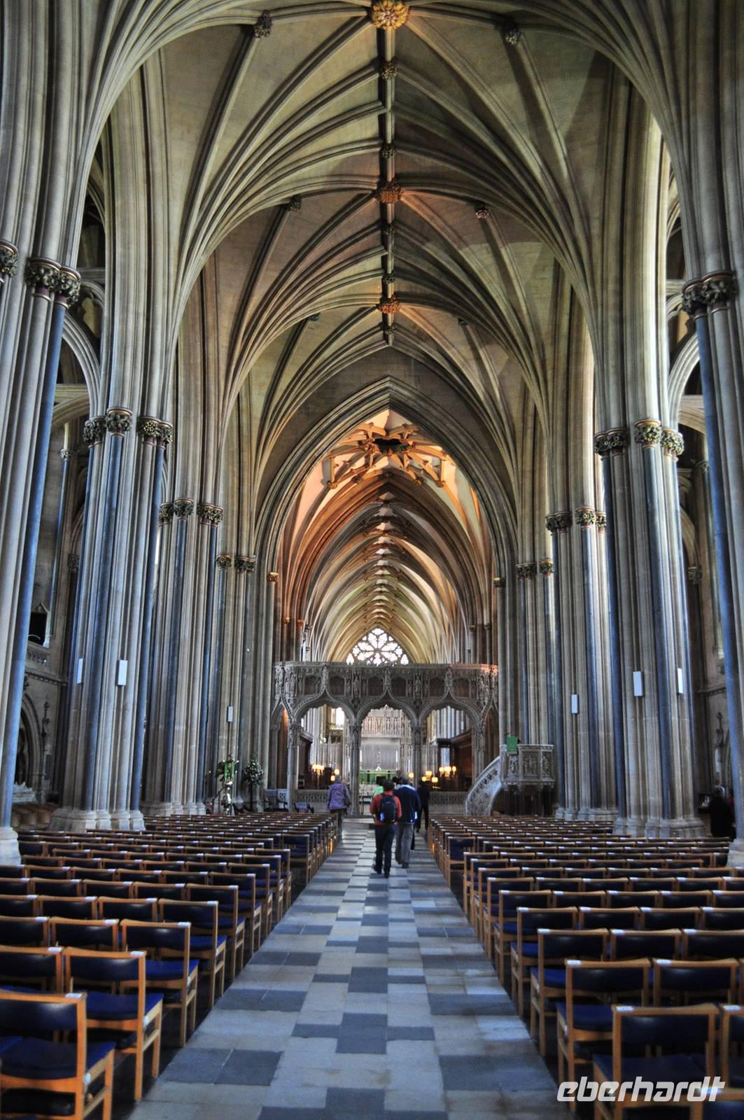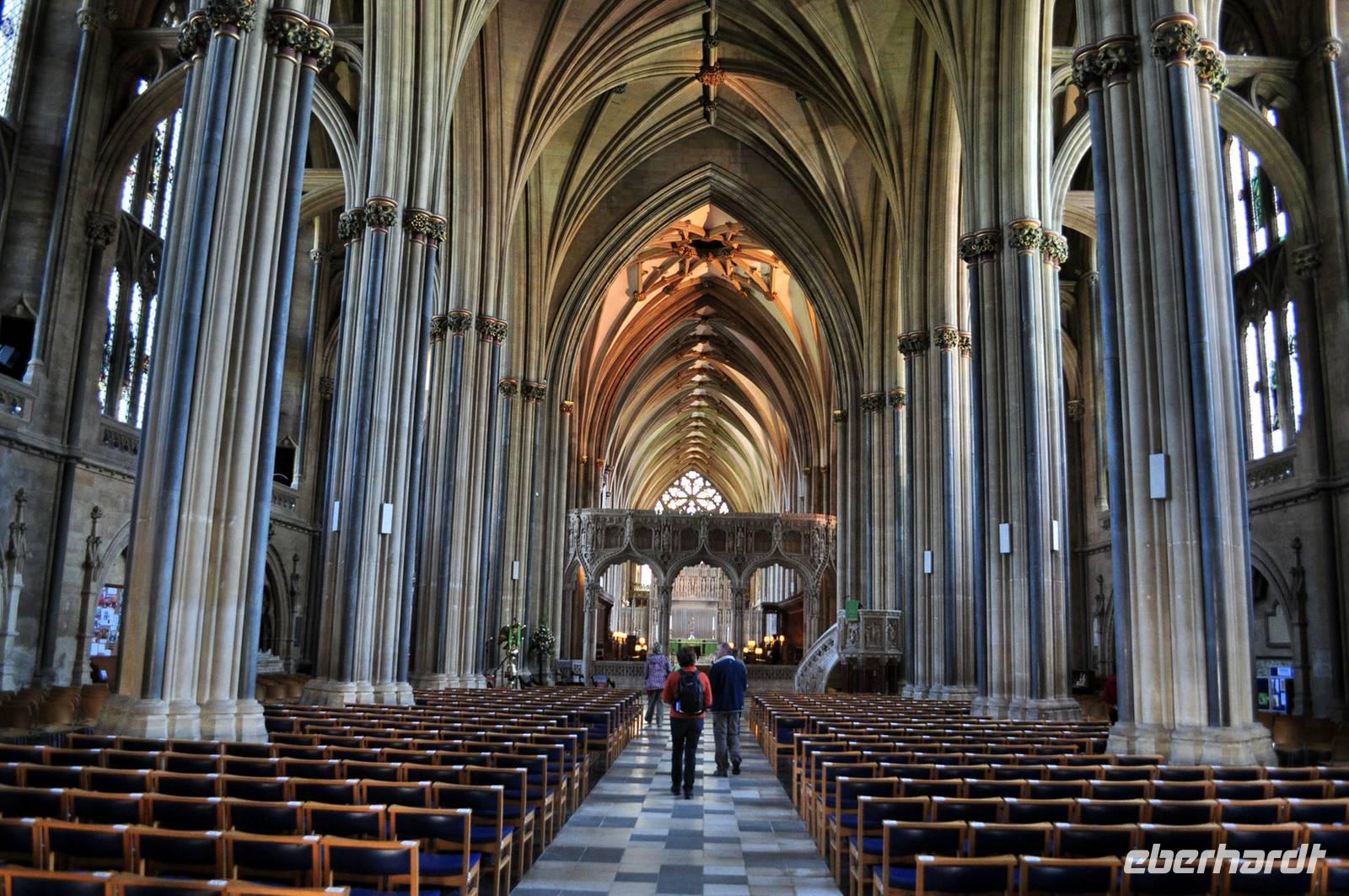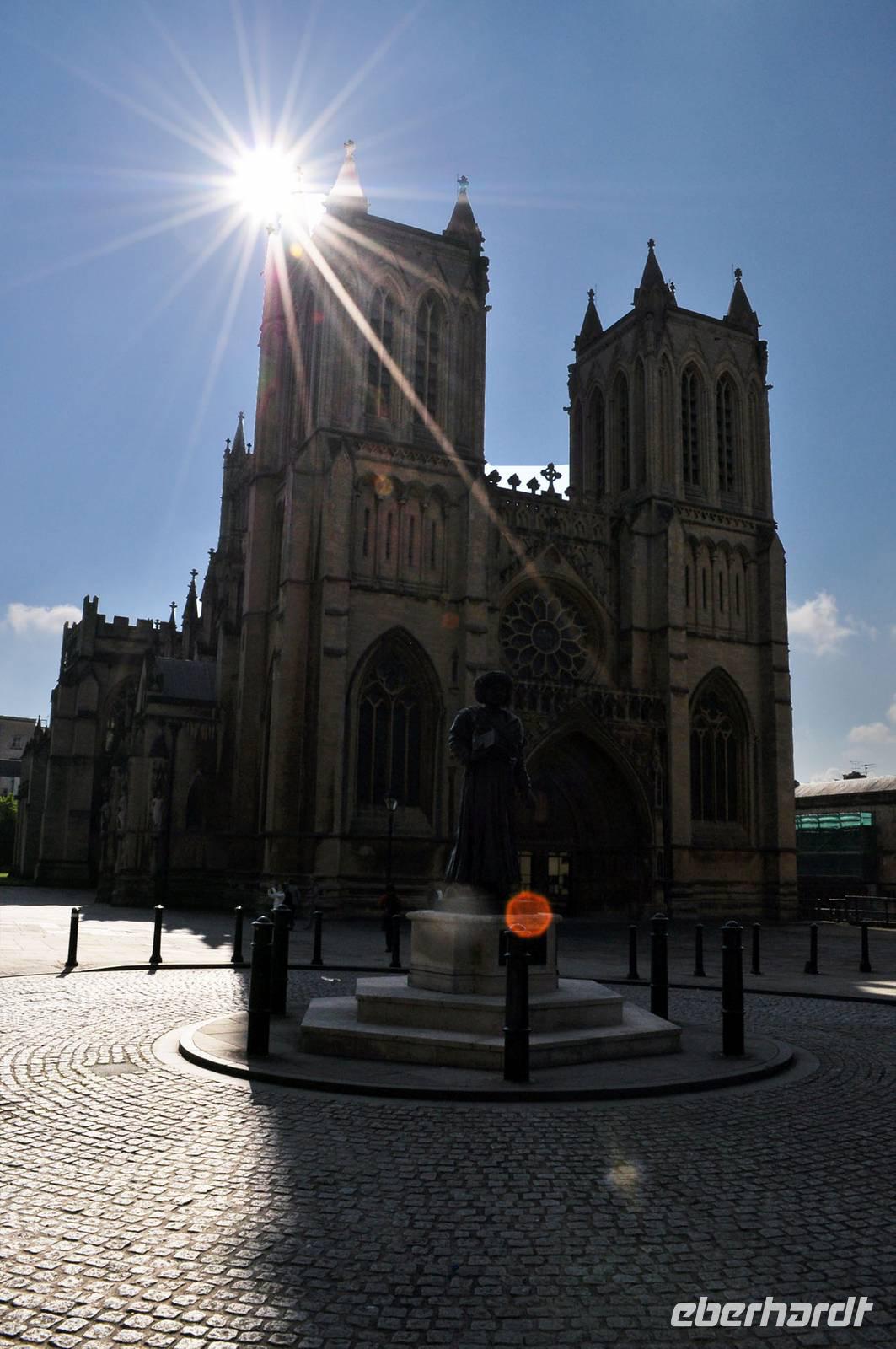 Es folgt der Besuch der imposanten „Bristol Cathedral", einer dieser imposanten englisch-gotischen Sakralbauten. Die Größe ist beeindruckend, ebenso die reich verzierten und gut erhaltenen Glasmalereien sowohl im Kreuzgang, als auch in der Fensterrose.