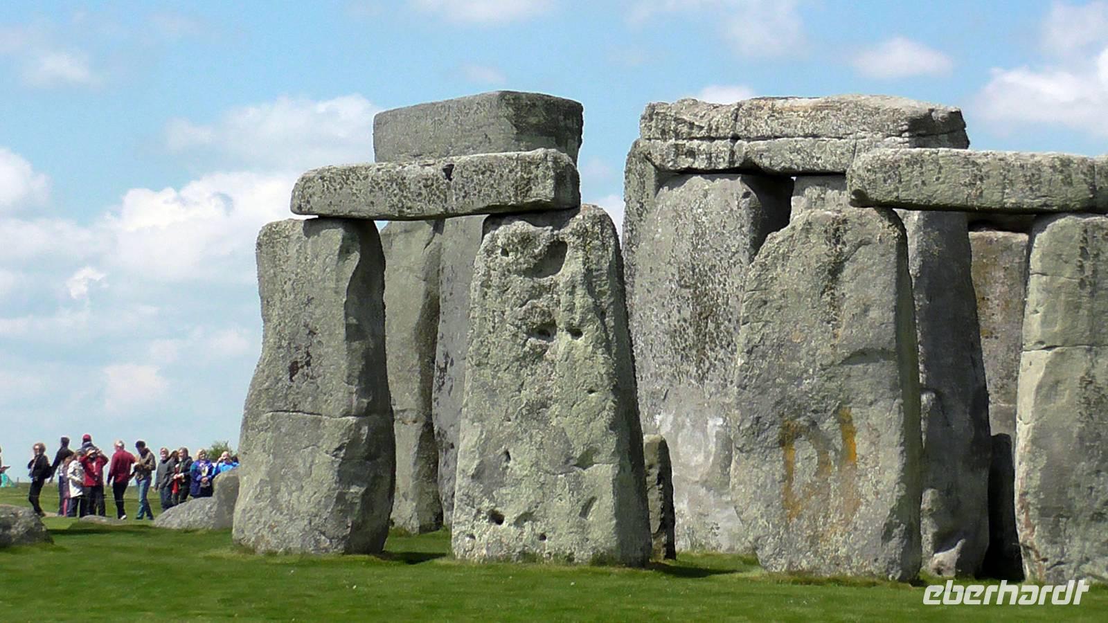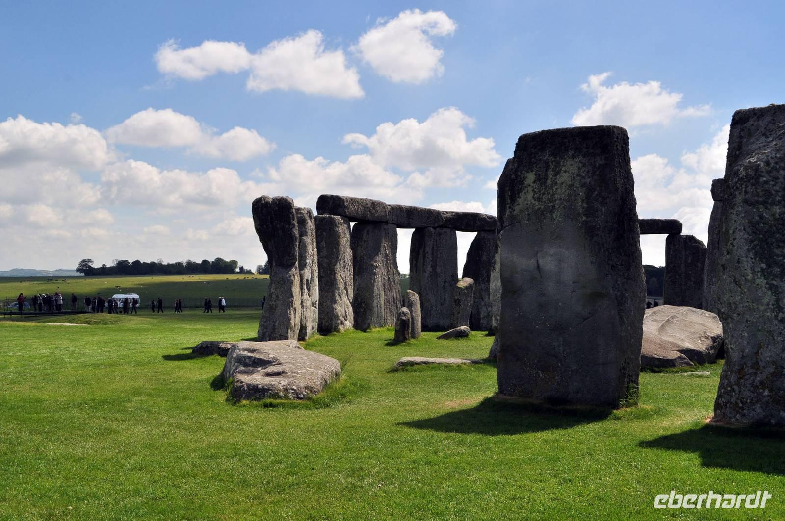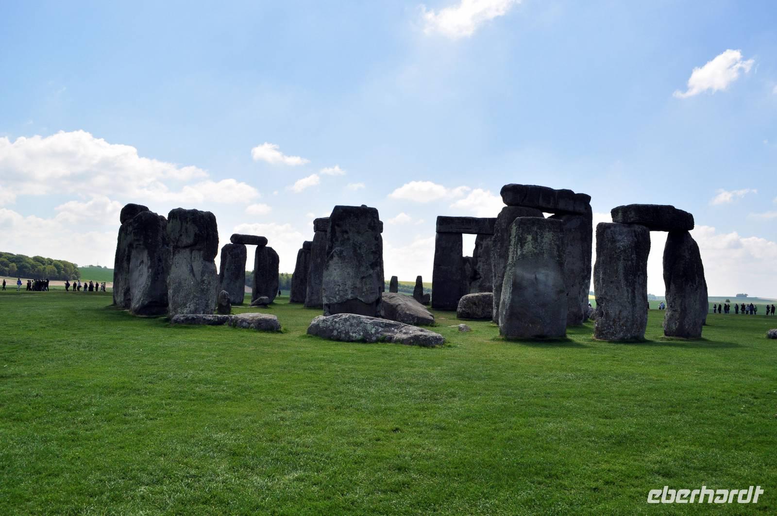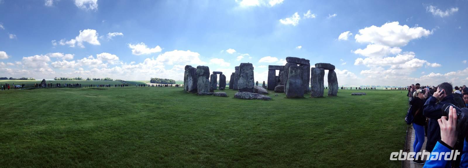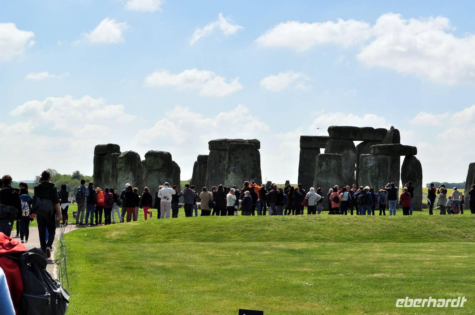 Trotz des Besucherandranges an dieser berühmten steinzeitlichen Stätte, sind wir schnell auf dem umzäunten Gelände. Audioguides, kleine Geräte, die man wie ein Telefon an sein Ohr hält informieren normalerweise die Besucher. Aufgrund des riesigen Andranges, gab es allerdings nur ein begrenztes Angebot an Audioguides in deutscher Sprache. Die Ankunft von vielen Gruppen diverser Kreuzfahrtschiffe, dem ersten schönen Wochenende des Frühjahrs und das das verlängerte Wochenende mit dem verbundenen Ferienbeginn in England führten zu einem großen Andrang. Wir ließen uns nicht die Laune verderben, wer konnte nutzte die englischen Guides. Viele Legenden ranken sich um diese Kultstätte, Opferstätte, .... Jeder soll sich selbst ein Bild machen, was Stonehenge für eine Bedeutung hatte. Das mystische Lichtspiel, der schnelle Wechsel von Licht und Schatten hervorgerufen durch die Sonne und die vorbeiziehenden Wolken taten ihr Übriges.