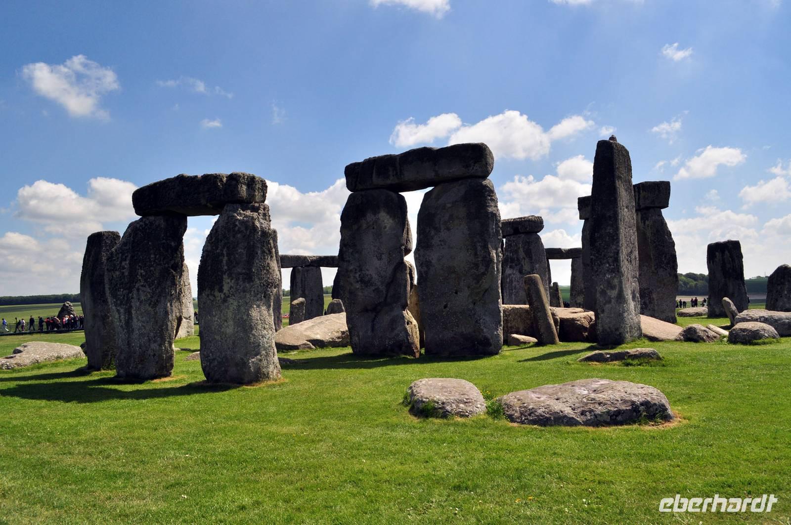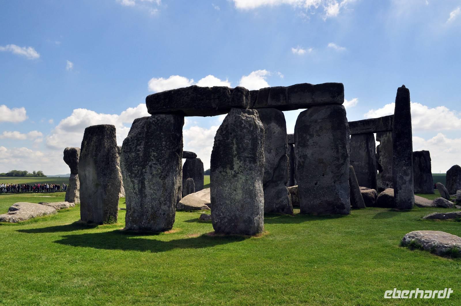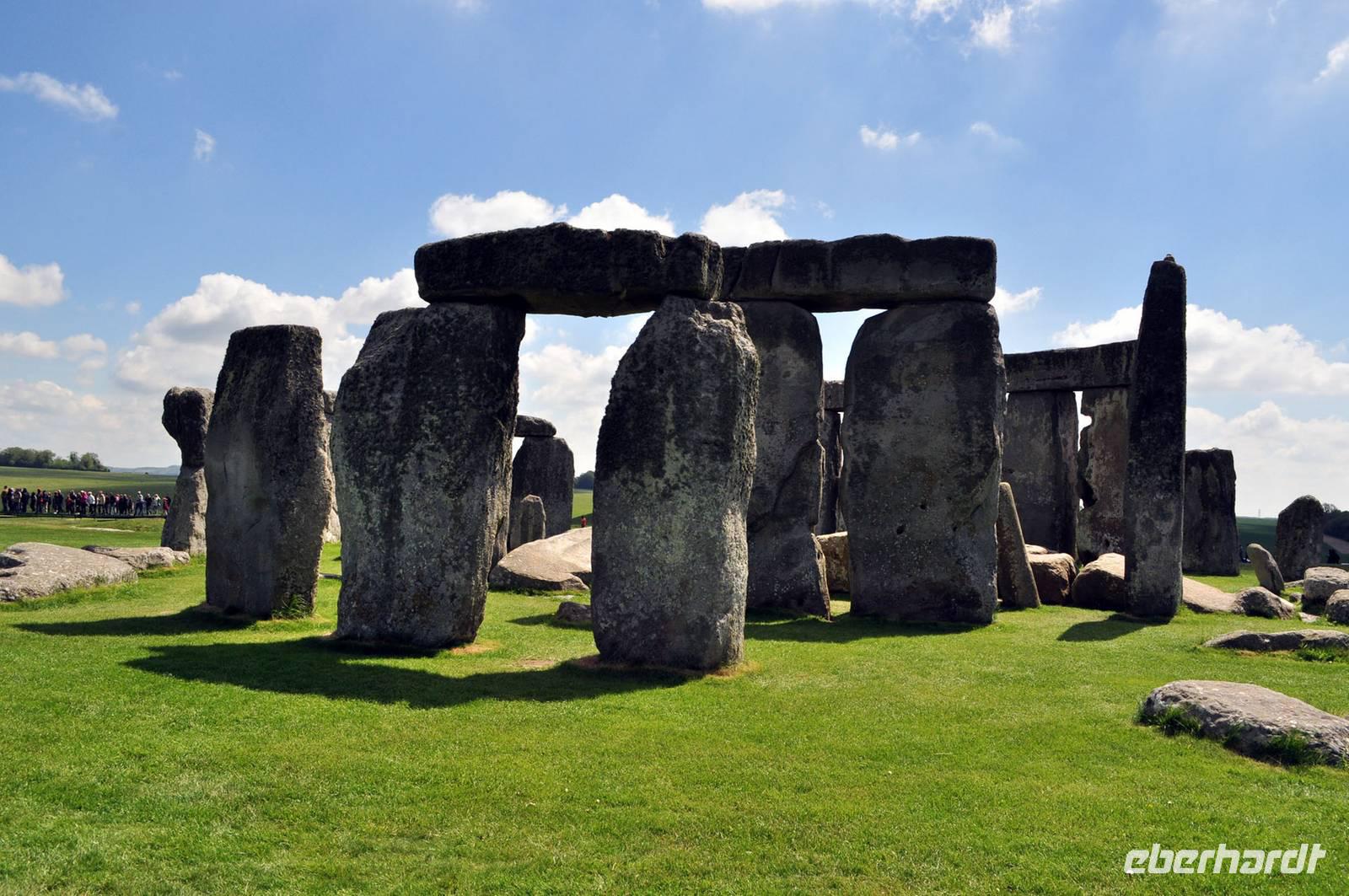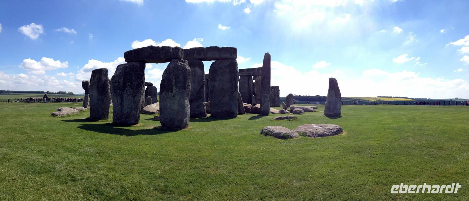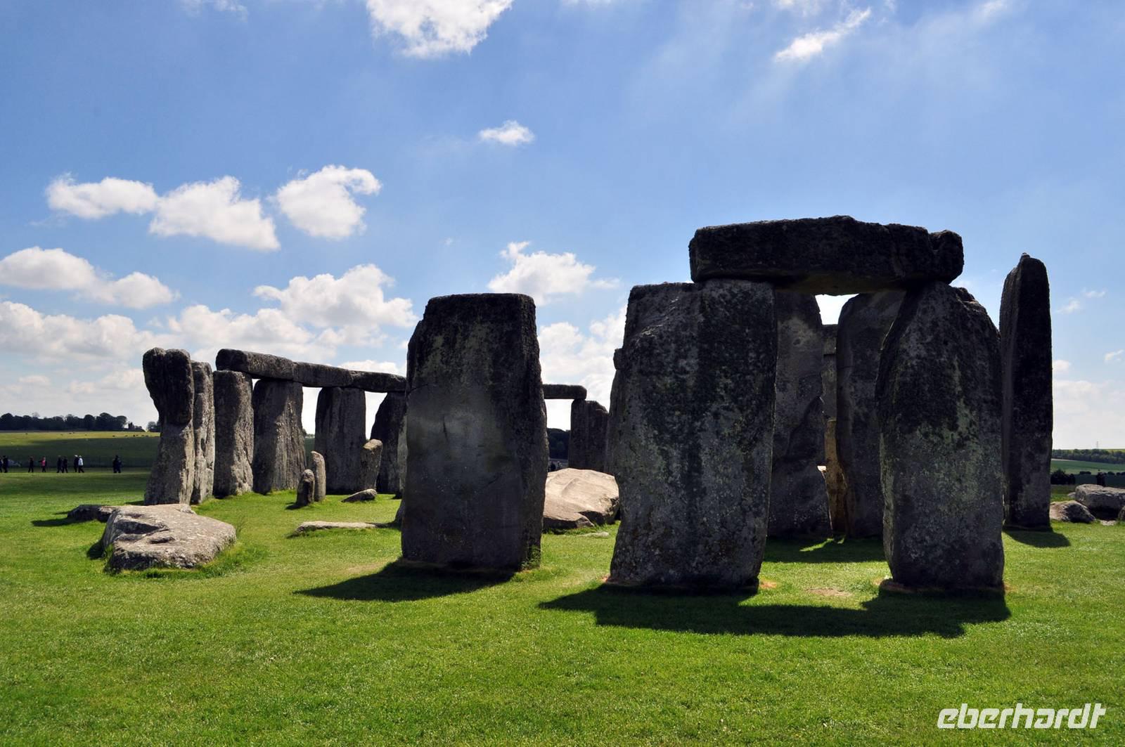 Trotz des Besucherandranges an dieser berühmten steinzeitlichen Stätte, sind wir schnell auf dem umzäunten Gelände. Audioguides, kleine Geräte, die man wie ein Telefon an sein Ohr hält informieren normalerweise die Besucher. Aufgrund des riesigen Andranges, gab es allerdings nur ein begrenztes Angebot an Audioguides in deutscher Sprache. Die Ankunft von vielen Gruppen diverser Kreuzfahrtschiffe, dem ersten schönen Wochenende des Frühjahrs und das das verlängerte Wochenende mit dem verbundenen Ferienbeginn in England führten zu einem großen Andrang. Wir ließen uns nicht die Laune verderben, wer konnte nutzte die englischen Guides. Viele Legenden ranken sich um diese Kultstätte, Opferstätte, .... Jeder soll sich selbst ein Bild machen, was Stonehenge für eine Bedeutung hatte. Das mystische Lichtspiel, der schnelle Wechsel von Licht und Schatten hervorgerufen durch die Sonne und die vorbeiziehenden Wolken taten ihr Übriges.
