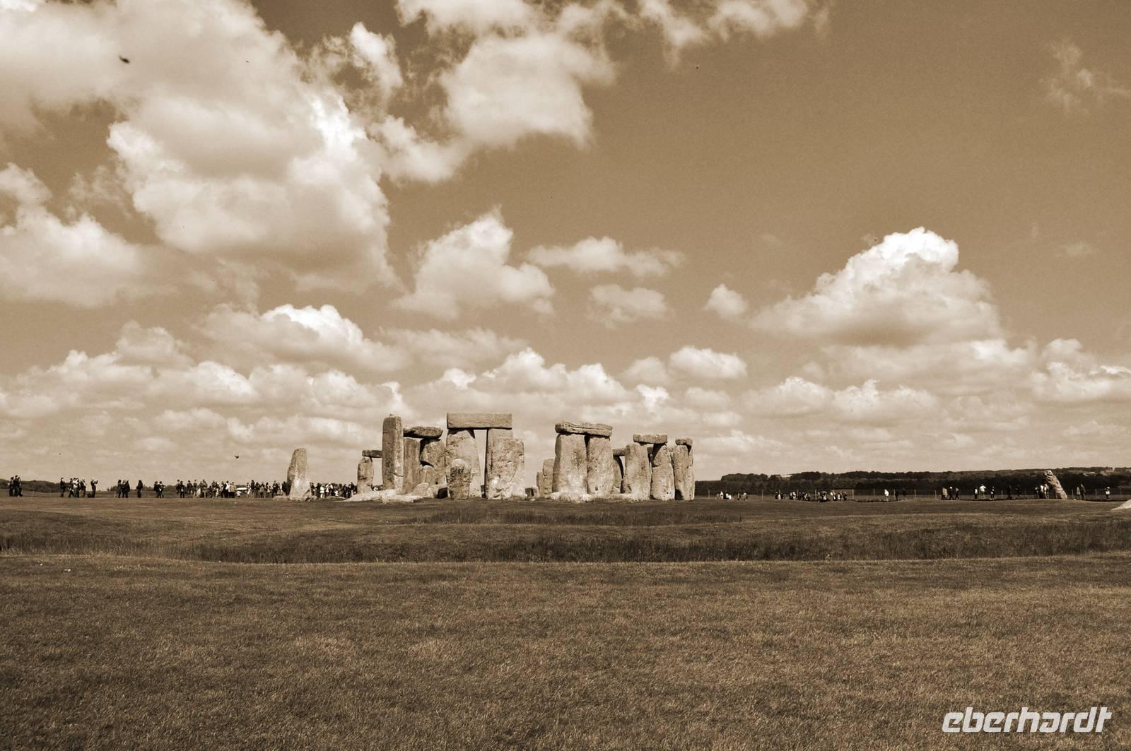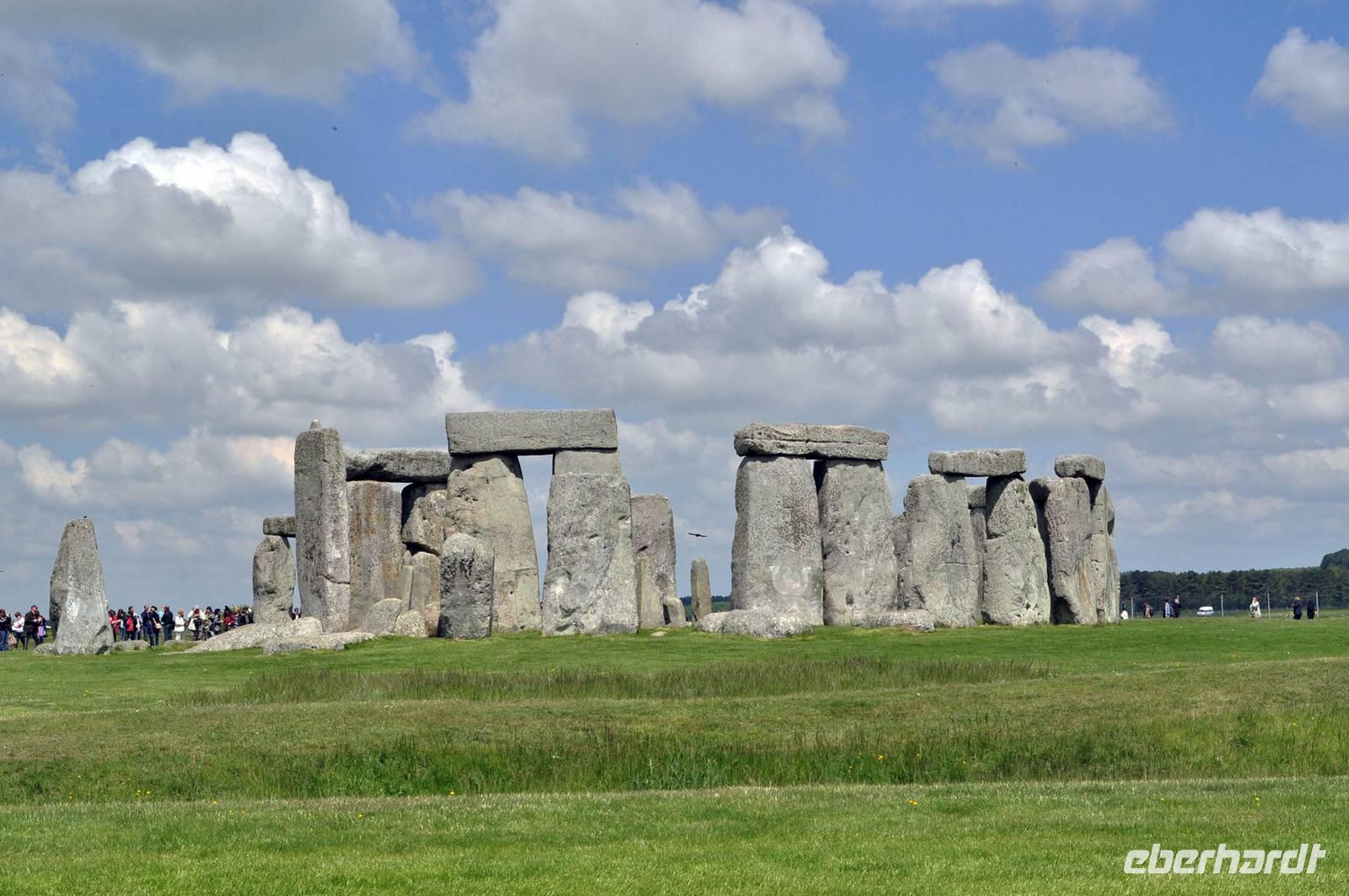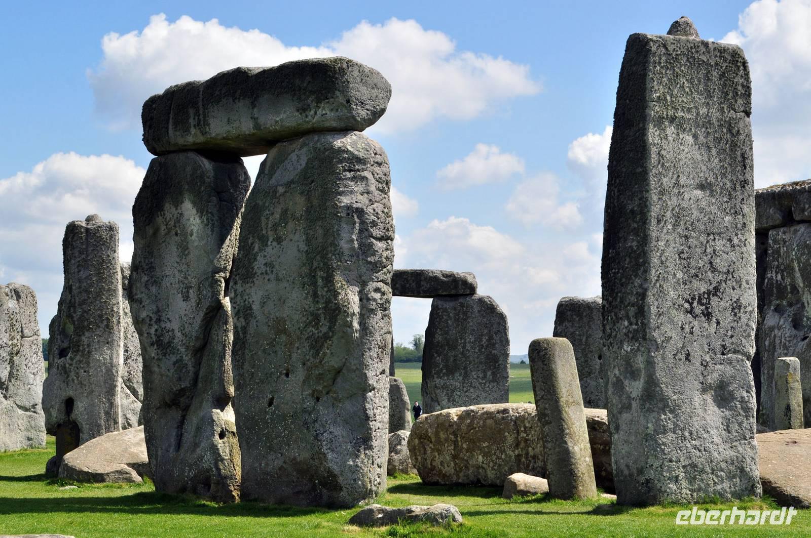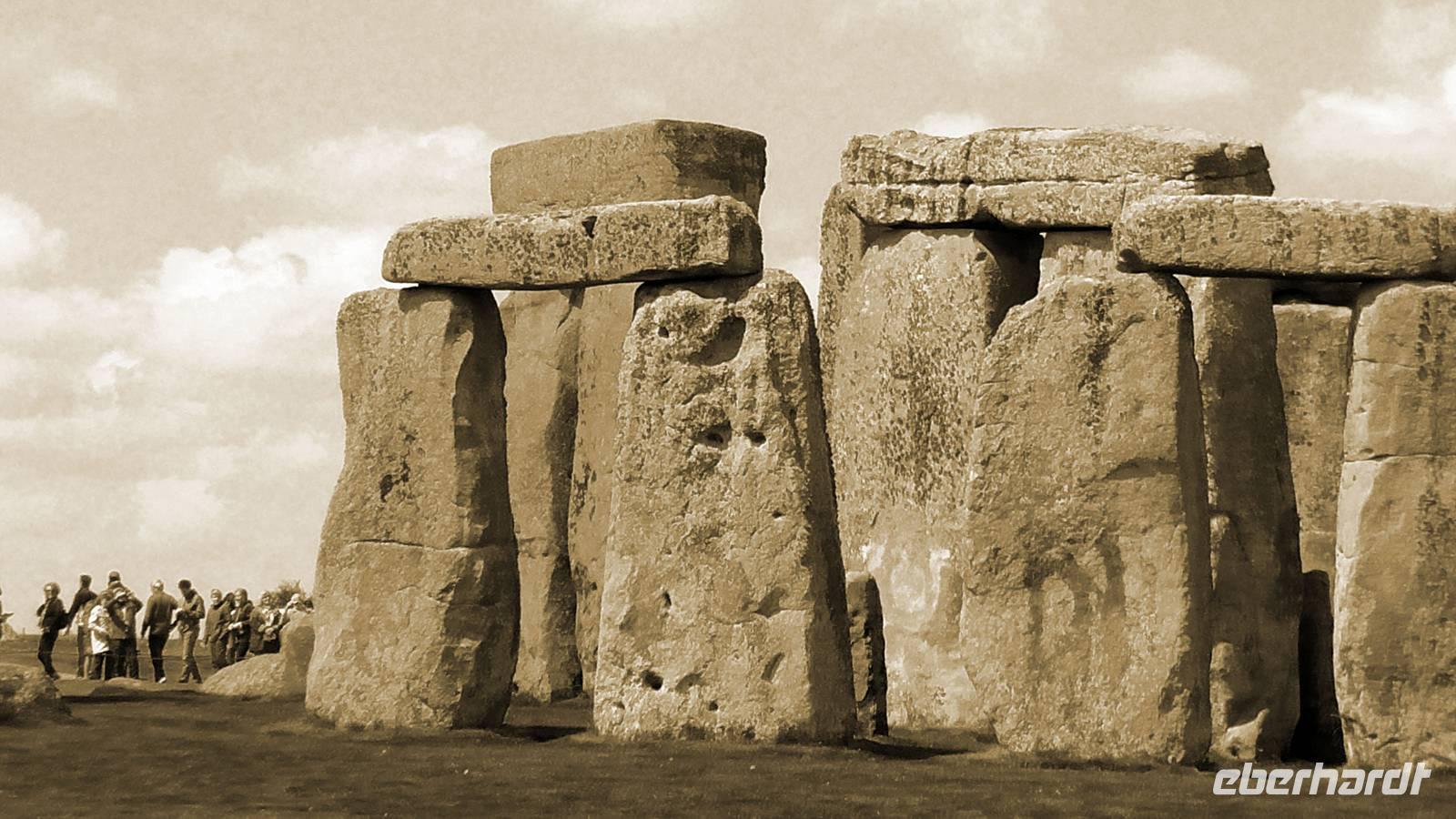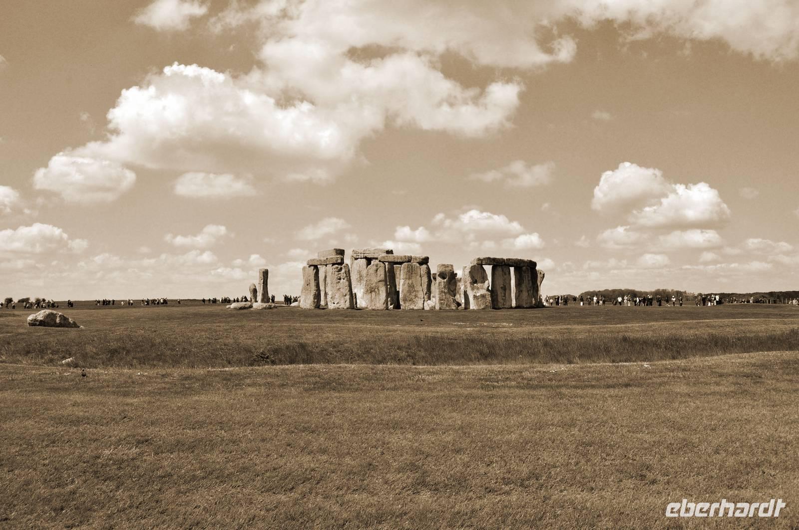 Trotz des Besucherandranges an dieser berühmten steinzeitlichen Stätte, sind wir schnell auf dem umzäunten Gelände. Audioguides, kleine Geräte, die man wie ein Telefon an sein Ohr hält informieren normalerweise die Besucher. Aufgrund des riesigen Andranges, gab es allerdings nur ein begrenztes Angebot an Audioguides in deutscher Sprache. Die Ankunft von vielen Gruppen diverser Kreuzfahrtschiffe, dem ersten schönen Wochenende des Frühjahrs und das das verlängerte Wochenende mit dem verbundenen Ferienbeginn in England führten zu einem großen Andrang. Wir ließen uns nicht die Laune verderben, wer konnte nutzte die englischen Guides. Viele Legenden ranken sich um diese Kultstätte, Opferstätte, .... Jeder soll sich selbst ein Bild machen, was Stonehenge für eine Bedeutung hatte. Das mystische Lichtspiel, der schnelle Wechsel von Licht und Schatten hervorgerufen durch die Sonne und die vorbeiziehenden Wolken taten ihr Übriges.
