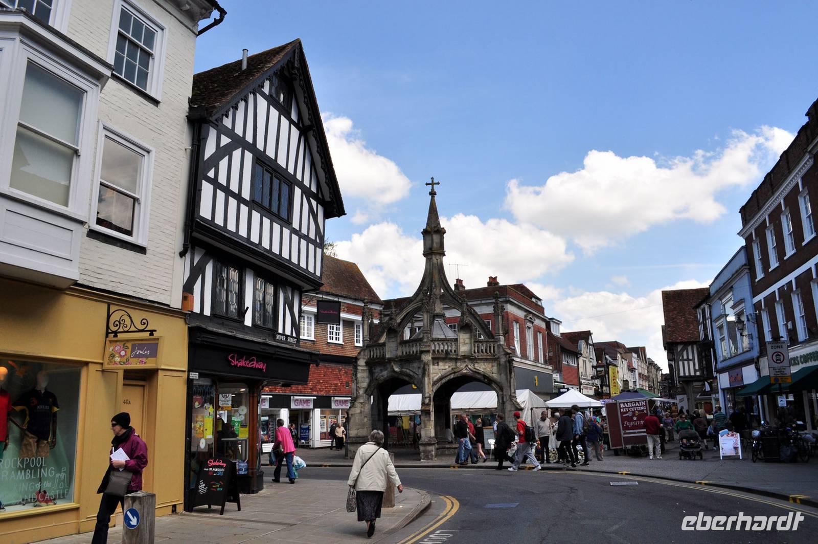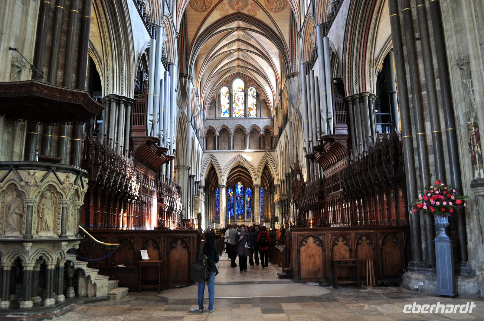 Anschließend ging es weiter ins nahe Salisbury, ebenfalls am Avon gelegen. Nach einem kurzen Stadtrundgang nutzen wir die Mittagspause für individuelle Erkundungen. Vielleicht für ein Mittagessen, einen ersten „Cream Tea" oder zum Besuch der Kathedrale von Salisbury. Mit ihrem kolossalen Aufbau, dem Turm und dem sich anschließenden Kreuzgang ist auch sie ein imposanter Sakralbau. Hinzu kommt ein Schatz von höchster nationaler Tragweite. Hier liegt eine der letzten noch im Original erhaltenen Abschriften der „Magna Charta", der in Teilen noch heute gültigen ersten englischen Verfassung.