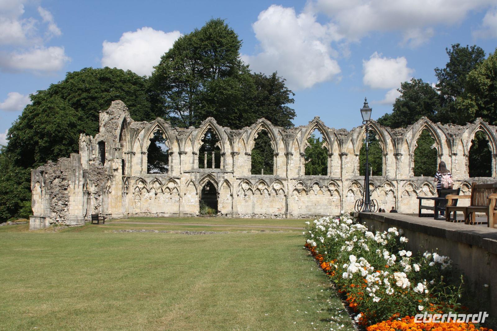 Heute stand die Stadt York auf dem Programm. Mit unserer örtlichen Stadtführerin Marie Louise erkundeten wir die Anlagen entlang der alten Stadtmauer und besichtigten die eindrucksvollen Ruinen der St. Mary´s Abbey mit ihren gepflegten Gärten. Im York Minster bestaunten wir die riesigen Bleiglasfenster und die unerreichbar hohen Gewölbedecken. Anschließend schlängelten wir uns durch die engen Ladenstraßen mit ihren alten windschiefen Fachwerkhäusern. Besonders in den „Shambles" fühlten wir uns wie in eine andere Zeit versetzt, die alte Einkaufsstraße wirkte wie das Vorbild zur Winkelgasse aus den Harry-Potter-Filmen. Wir verbrachten dort etwas Freizeit und fuhren schließlich weiter nach Pickering. Durch einen Stau und ein zu enges Schlosstor verspäteten wir uns und erreichten gerade noch pünktlich unsere Dampfeisenbahn am Bahnhof, die - natürlich - auch Verspätung hatte. An Bord ließen wir uns in den gemütlichen alten Abteilen nieder und fuhren durch den Nationalpark der North York Moors bis in den kleinen Ort Goathland, wo wir wie Harry am Bahngleis aus dem Zug stiegen, nur dass uns kein Halbriese namens Hagrid von dort abholte, sondern unser Fahrer Matthias. Am Bahnhof von Goathland erkannte jeder die Bänke und die rote Holzbrücke aus den Filmen wieder, die dem Bahnhof von Hogsmeade sein markantes Aussehen verleihen. Für die Dreharbeiten wurde hier fast nichts verändert, abgesehen von einer Mauer und ein paar Schildern. Nachdem wir viele Fotos von diesem authentischen Drehort geschossen hatten, gingen wir zu unserem Bus. Wir fuhren weiter nach Norden zum Thistle Hotel in Middlesbrough, einer modernen Industriestadt am Fluss Tee, welche eine von zwei betriebsfähigen Schwebefähren im Vereinigten Königreich besitzt.