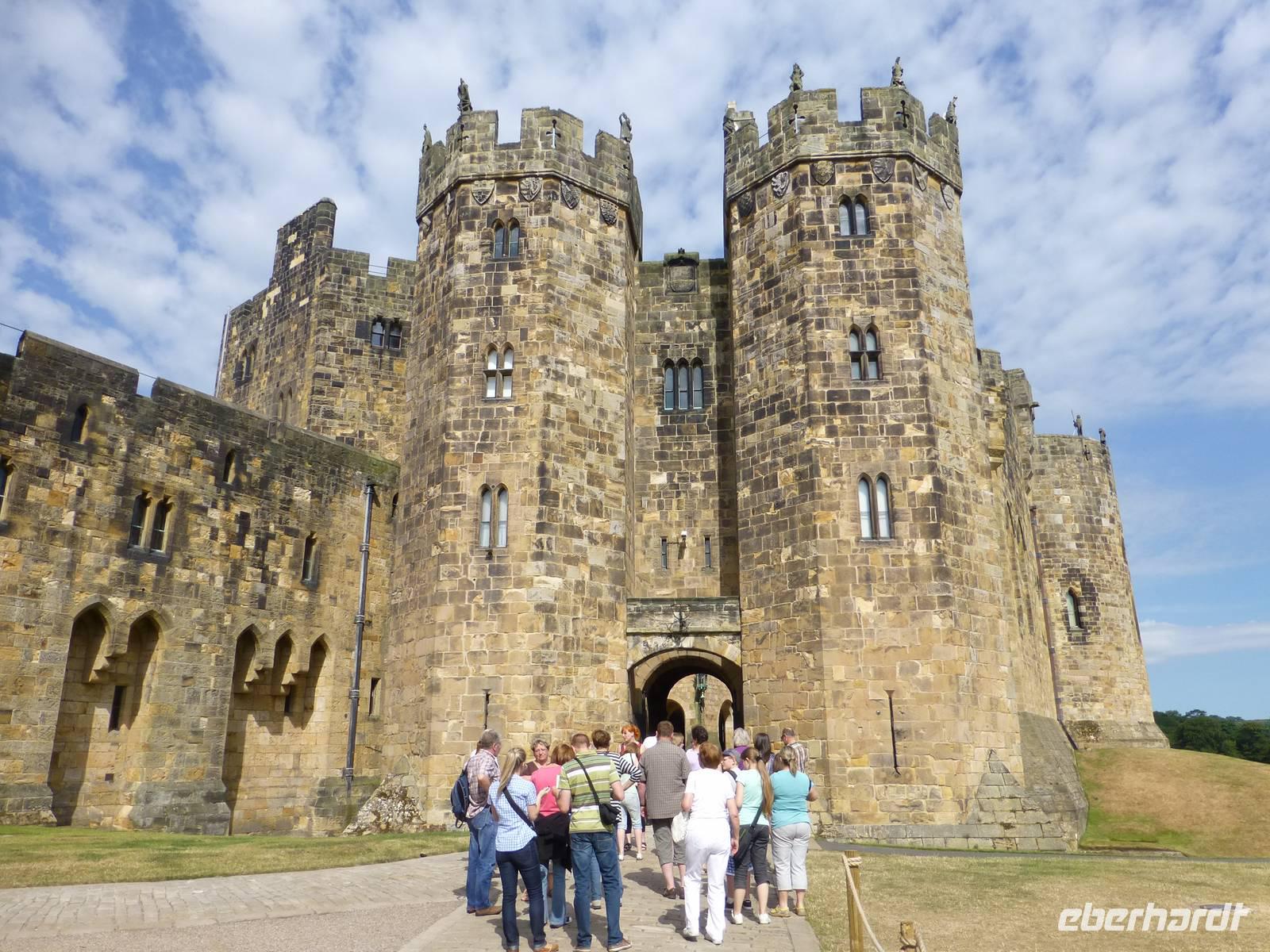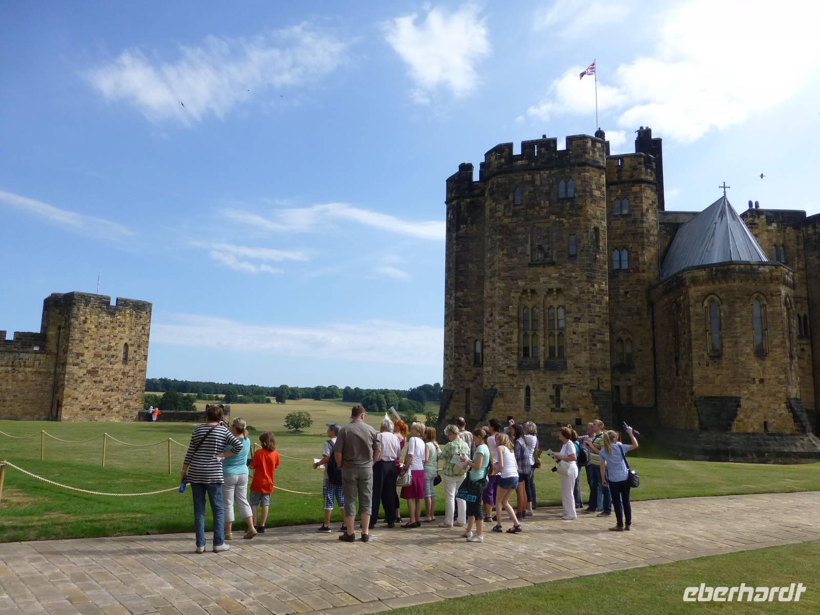 Nach unserem letzten englischen Frühstück im Hotel machten wir uns bereit für die letzte große Attraktion der Reise: Alnwick Castle, dem ursprünglichen Vorbild für die Zauberschule Hogwarts. Im zweitgrößten bewohnten Adelssitz Englands bewunderten wir die Wiese der peitschenden Weide, die im Film Ron und Harry nach ihrer Bruchlandung mit dem fliegenden Auto einige Blessuren verpasst. Außerdem standen wir an der Stelle, an der Harry Besenflugunterricht bei Madame Hooch nimmt und von Oliver Wood das Spiel Quidditch erklärt bekommt. Im Innenhof, der zu den Stage Rooms führt, verließen die Jungs im Film über Hermine lästernd den Unterricht von Professor Flitwick und unter dem großen Eingangstor erraten die drei Freunde, was es mit Hagrids dreiköpfigen Hund Fluffy auf sich hat. In den State Rooms bekamen wir einen Einblick in das Leben der Dukes of Northumberlands. Nach viel Freizeit auf dem Schlossgelände, in der wir die vielen Ausstellungsräume besuchen konnten, nahmen wir schließlich Abschied von Harry Potter und fuhren mit dem Bus nach Newcastle. Unterwegs kürten wir natürlich noch die Sieger des doch recht schwierigen Harry-Potter-Quiz´, die nicht ohne Preis nach Hause fahren sollten. Für alle anderen hatte Claudia noch eine Überraschung: jeder bekam eine kleine Hedwig-Eule als Andenken und ein Rezeptbuch für Zaubertränke zum selbst ausprobieren. Wir verabschiedeten Familie Mattis am Flughafen in Newcastle und fuhren weiter zum Fährhafen, wo wir am späten Nachmittag an Bord des Schiffes King of Scandinavia von DFDS Seeways gingen und unsere Kabinen bezogen. Das reichhaltige Buffet beim Abendessen begeisterte jeden und so wurde die nächtliche Fahrt über die Nordsee auch aufgrund der vielfältigen Unterhaltungsangebote für alle zum Erlebnis.