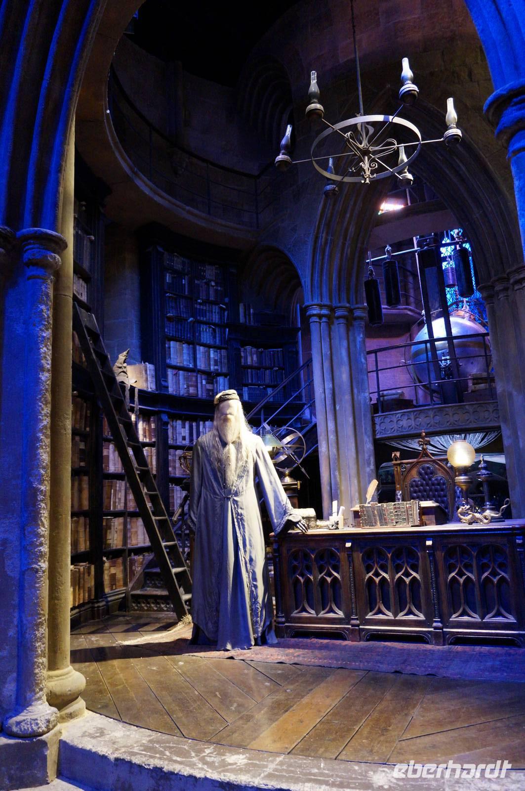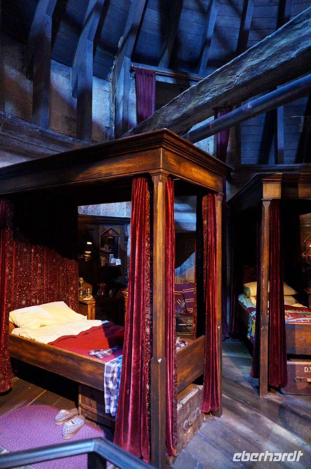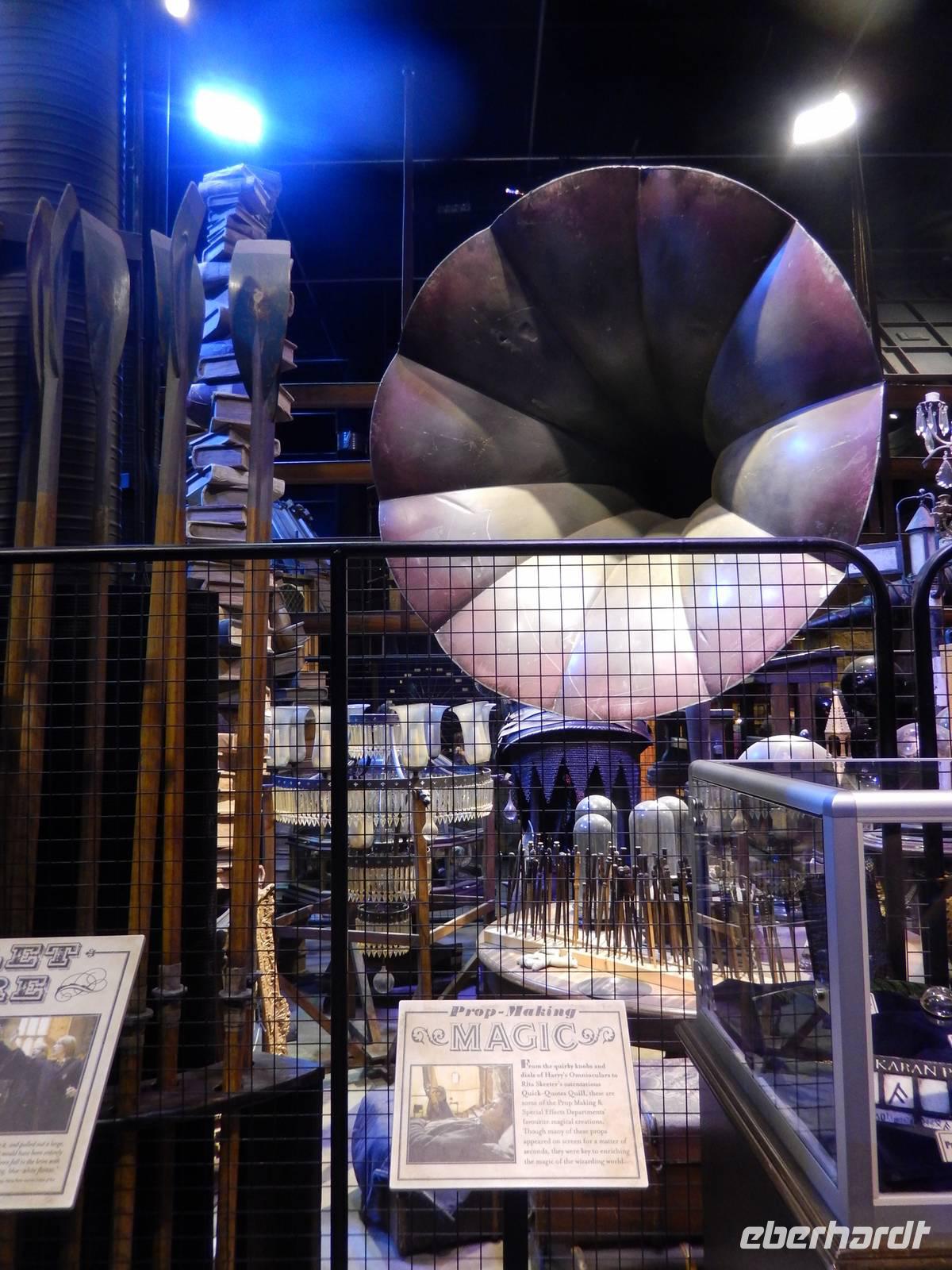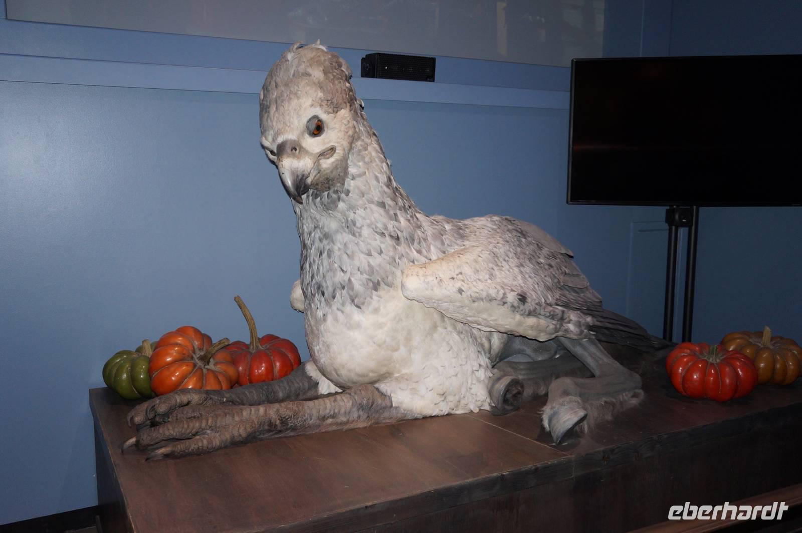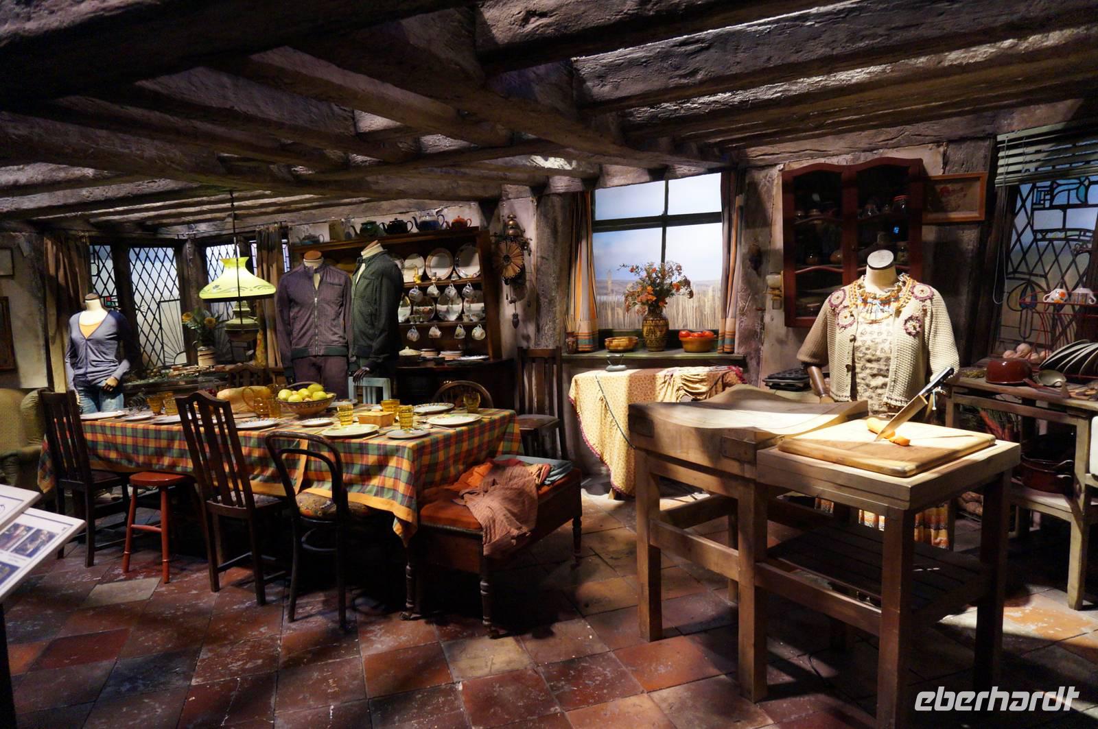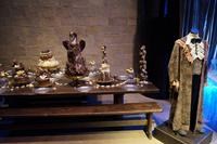 Später in den Studios wurde alles geboten, was das Fan-Herz begehrt, bereits in der Eingangshalle begrüßten uns die gigantischen Bilder der Filmcharaktere. Als sich die Tore endlich für uns öffneten, sahen wir einen kurzen Begrüßungsfilm und wie durch Zauberhand wurde die Tür zur Großen Halle auf einmal Realität, als die Leinwand hochfuhr und wir durch das Original eingelassen wurden. Stundenlang konnten wir uns Filmsets, Requisiten, Masken, Kostüme und die skurrilsten Kreaturen und Modelle anschauen oder Butterbier trinken. Egal ob Hagrids Hütte, die geheimnisvollen Horkruxe, das Zaubereiministerium oder der „Fahrende Ritter", alle alten Bekannten, die wir von Kino und DVD her kannten, waren dort zu bewundern. Natürlich konnte sich danach noch jeder im Souvenir-Laden nach Herzenslust mit Andenken eindecken, die es jedoch preislich ziemlich in sich hatten. Im Anschluss machten wir mit allen Gästen, die gern mit wollten, einen Spaziergang in den Dowding Way, einen weiteren Drehort direkt im neuen Wohngebiet neben den Studios. Hier lief Harry von Zuhause fort, nachdem er seine Tante zur Kugel aufgebläht hatte und wurde prompt vom „Fahrenden Ritter" abgeholt.