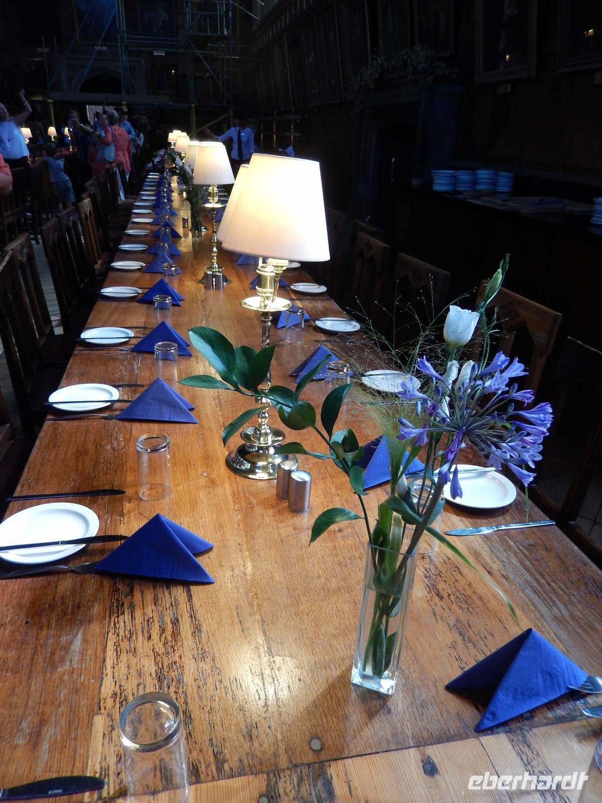 Wieder starteten wir zeitig, um die weltberühmte Universitätsstadt Oxford zu besuchen. Oxford am nördlichen Themseufer birgt Englands älteste Universität. Die Stadt entwickelte sich um das Nonnenkloster St. Frideswide, das in die heutige Christ Church Kathedrale eingegliedert ist. Dieses berühmte College zeigten uns unsere beiden Stadtführerinnen Karin und Ursula natürlich zuerst. Hier befindet sich die große Eingangstreppe, auf der Harry und seine Freunde zum ersten Mal die Große Halle von Hogwarts betreten. Auch diese Halle gibt es im College, jedoch wurde sie für die Filme nur als Vorbild genutzt und im Filmstudio noch größer nachgebaut. Trotzdem erhielten wir Einblick in das berühmte Vorbild mit den langen Tischen und hunderten von Gemälden an den hohen Wänden. Wegen Abschlussfeierlichkeiten der Studenten konnten wir die ehrwürdige Duke of Humphrey´s Bibliothek leider nicht besichtigen. Deshalb besuchten wir stattdessen das ebenfalls sehr rennomierte New College, in dessen Innenhof sich mehrere Filmszenen ereignen, zum Beispiel wird Harry hier von Cedrics Freunden ausgelacht und unterhält sich kurz darauf mit ihm über die Drachenprüfung des "Trimagischen Turniers". HIer steht auch die große Linde, auf der der fiese Draco herumlungert und anschließend vom Professor Moody in ein Frettchen verwandelt wird. Nach einer kleinen Tou durch die verschlafenen Straßen und die romantische Markthalle hatten wir noch etwas Freizeit, um in den Ladenpassagen Oxfords bei strahlendem Sonnenschein essen oder shoppen zu gehen. Wer wollte, konnte auch noch einmal das College besuchen oder einfach durch die Gassen bummeln.