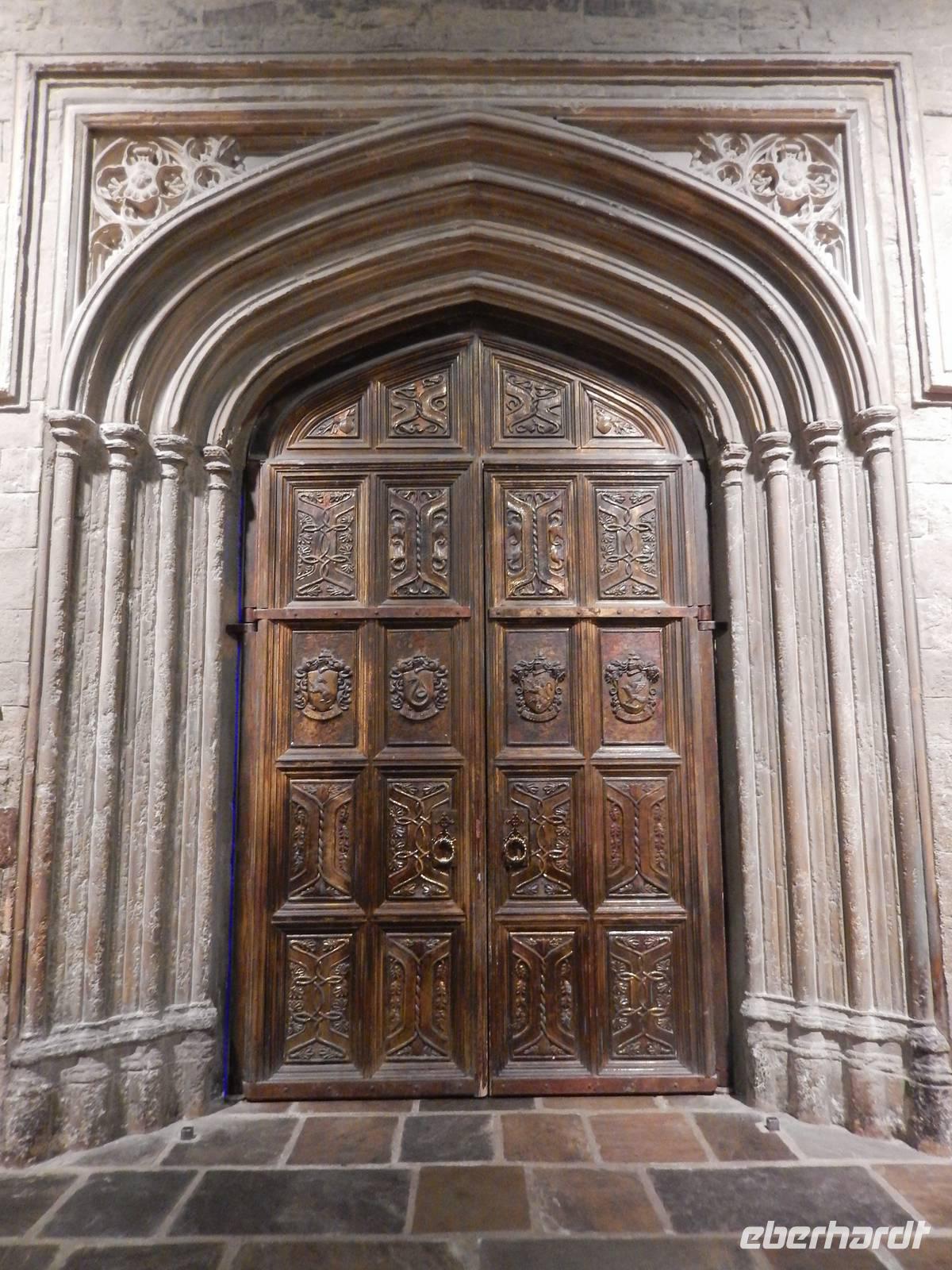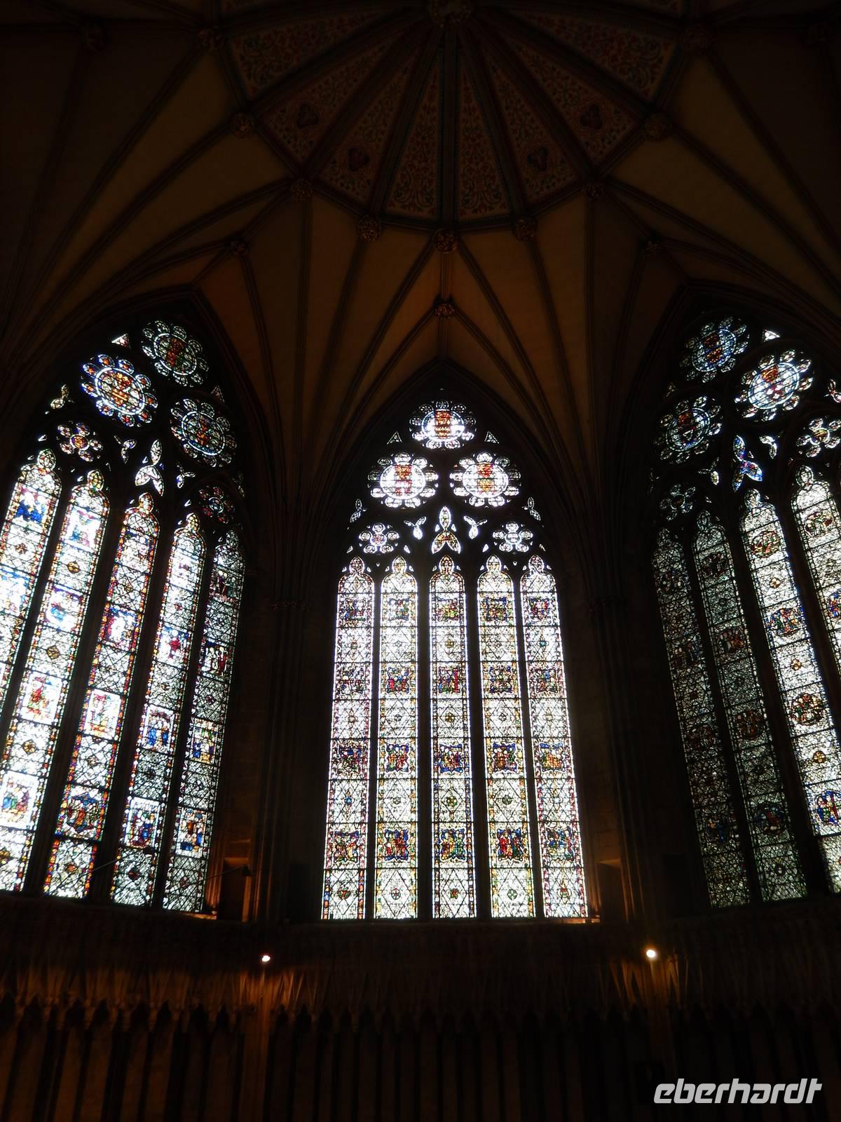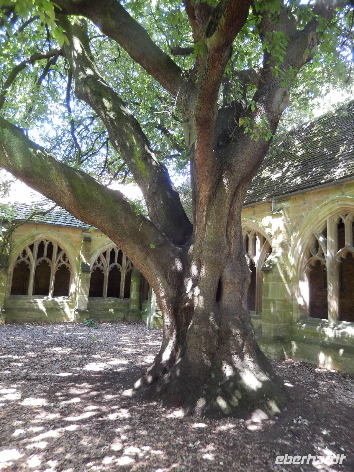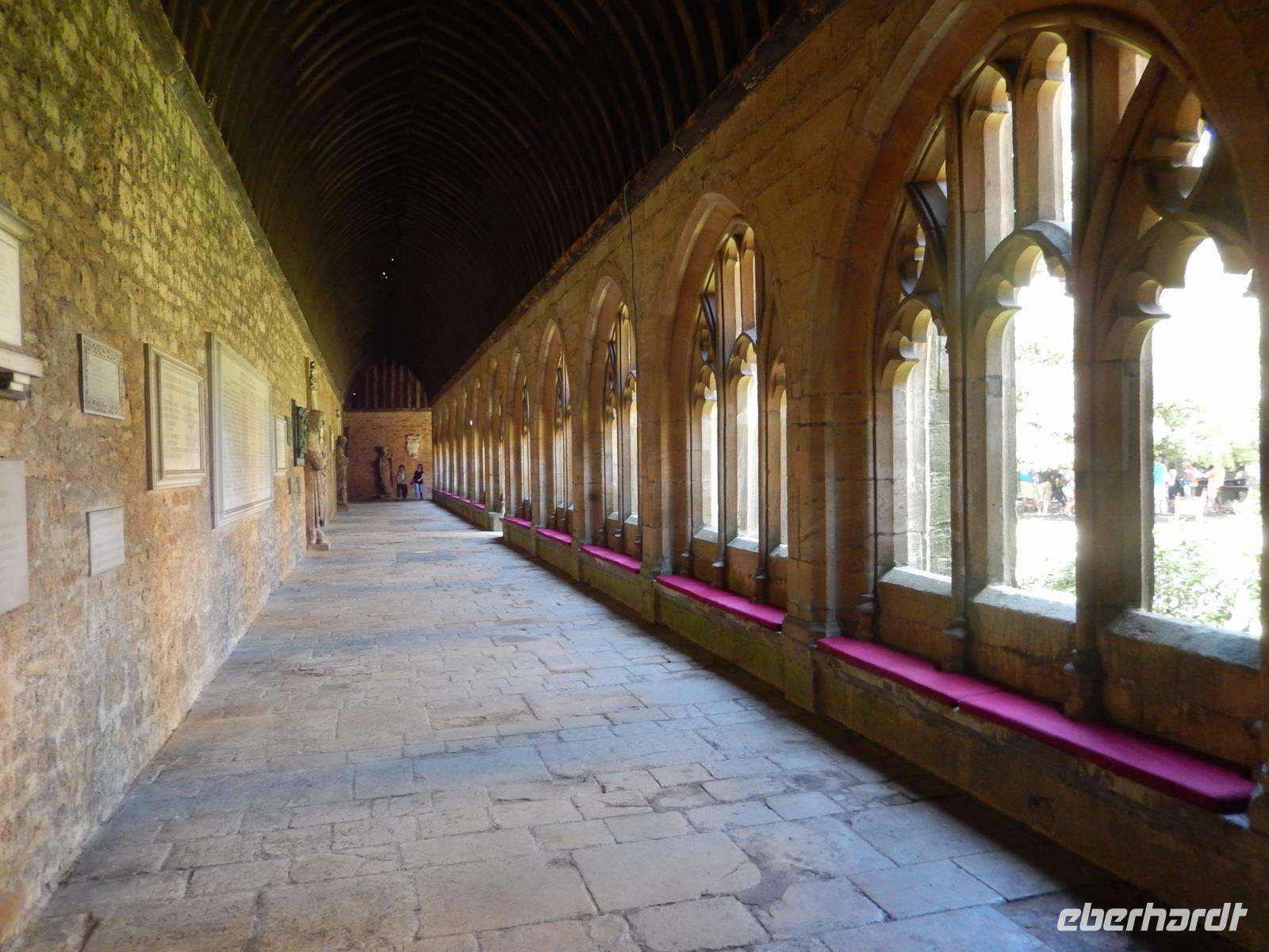 Nach etwas Freizeit in Lacock besuchten wir kurz den Ort Chipping Sodbury, der bis vor einiger Zeit als Geburtsort der Harry-Potter-Autorin Joanne K. Rowling galt. Inzwischen hat sie selbst richtig gestellt, dass sie eigentlich aus dem nahe gelegenen Yate stammt, jedoch wirbt der Ort auch weiterhin mit ihrem großen Namen. Wir durchfuhren beide, direkt nebeneinander liegenden Kleinstädte und fuhren weiter nach Gloucester. Dort wurde in der Kathedrale gerade die Verfilmung des Romans "Wolf Hall" von Hilary Mantel gedreht, deshalb hieß es zuerst, wir dürfen nicht hinein, was nach etwas freundlicher Bettelei dann aber doch möglich war - leider nur verkürzt und im Flüsterton, aber immerhin! Berühmt ist das Fächergewölbe im großen Kreuzgang, welches das erste seiner Art auf englischen Boden ist. Im Kreuzgang wurden bekannte Filmszenen gedreht, zum Beispiel der umherwandernde Bergtroll oder die blutig beschriebene Wand sowie das Porträtloch mit dem Bild der fetten Dame und natürlich die vielen Spinnen, die durch die bunten Fenster krabbeln. Außerdem wird hier Draco von Professor Snape in die Mangel genommen, während Harry die beiden heimlich belauscht. Schließlich führte uns die Reise vorbei an Birmingham weiter ins "Holiday Inn" nach Derby.