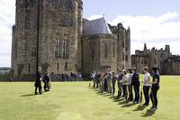 Für unsere Fluggäste bricht heute auch schon der letzte Tag an. Nach dem Frühstück laden wir wieder unsere Koffer ein und machen uns auf den Weg zum letzten Drehort unserer Reise. Alnwick Castle diente als Vorbild für Hogwarts und ist Drehort verschiedener Szenen aus den Filmen eins und zwei. Bei einer magischen Besenflugstunde auf dem Gelände des Schlosses haben wir uns alle herzlich amüsiert.