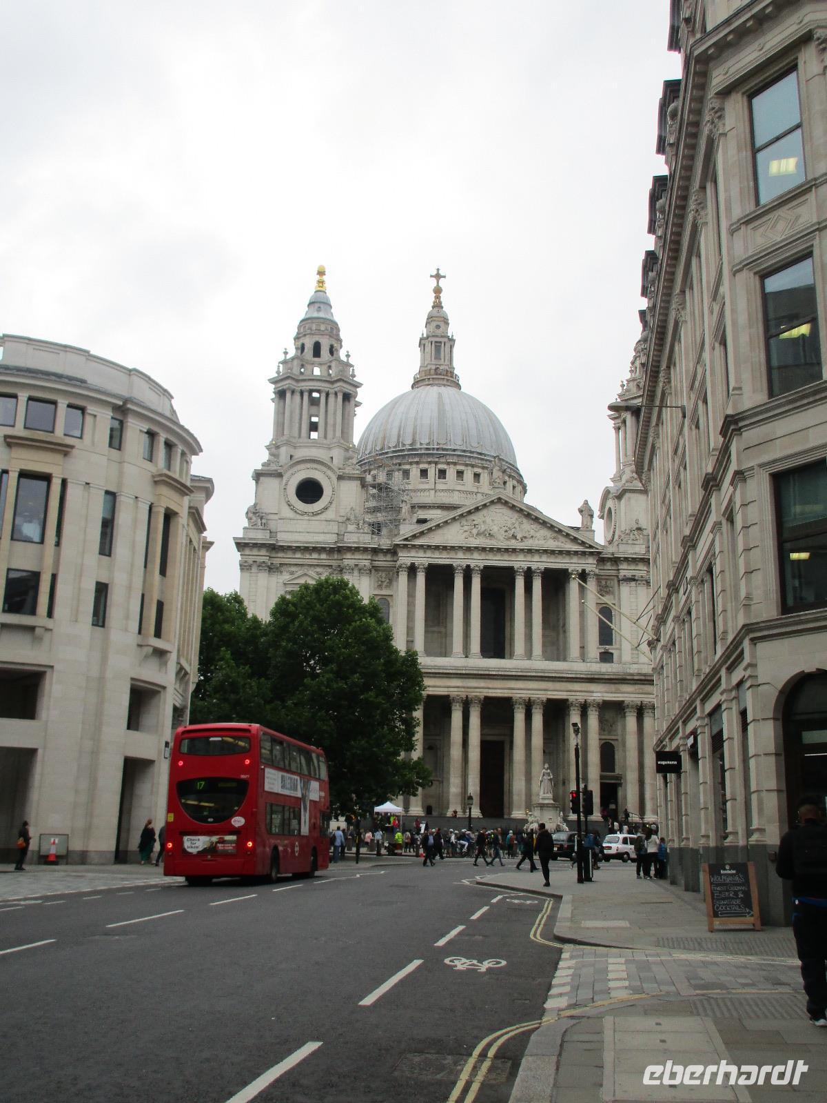 In London angekommen, legen wir einen kleinen Stopp in Greenwich ein. Wer möchte nicht, wenn er schon einmal in London ist, den Nullmeridian sehen und auf der östlichen und westlichen Halbkugel der Erde gleichzeitig stehen wollen? Also wird dies ein „Must have" für uns. Zusätzlich erhalten wir einen wunderschönen Blick über die Skyline von London. Durch den dichten Verkehr schlängeln wir uns bis zur St. Pauls Kathedrale. Hier treffen wir kurze Zeit später auf unseren örtlichen Reiseleiter Phil und unsere 10 Fluggäste aus Berlin und Nürnberg treffen ebenfalls ein. Damit ist unsere Reisegruppe nun mit insgesamt 49 Gästen vollzählig. ?