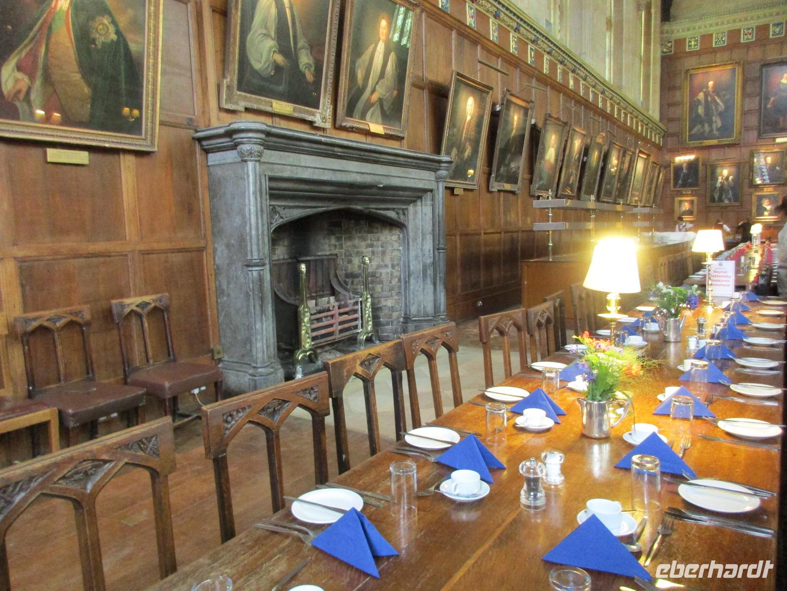 Am heutigen Tag verlassen wir die englische Hauptstadt für einen Tagesausflug nach Oxford. Nach circa zwei Stunden erreichen wir unser heutiges Ziel, die Universitätsstadt Oxford. Auf unserem Weg erzählte uns Simone bereits interessante Fakten über die Bewerbung an einer Universität von England. In Oxford treffen wir unsere Stadtführerinnen Karin und Ruth und starten unseren zweistündigen Rundgang. Wir besichtigen als Erstes das Christ Church College und erfahren, dass die circa 30 College von Oxford im Gesamten die Universität Oxford bilden. Entsprechend des Studienganges haben die Studenten nach drei bis sieben Jahren ein ziemlich schweres Studium absolviert und erhalten einen erstklassigen Abschluss. So wurde die Universität von Oxford in diesem Jahr zur besten der Welt gewählt. Auf unserm Rundgang durch das College entdecken wir den Speisesaal, welcher dem von Hogwarts ähnelt, und wir können über die große Treppe laufen, auf welcher Professor McGonagall die Schüler jährlich in der Zauberschule begrüßt.