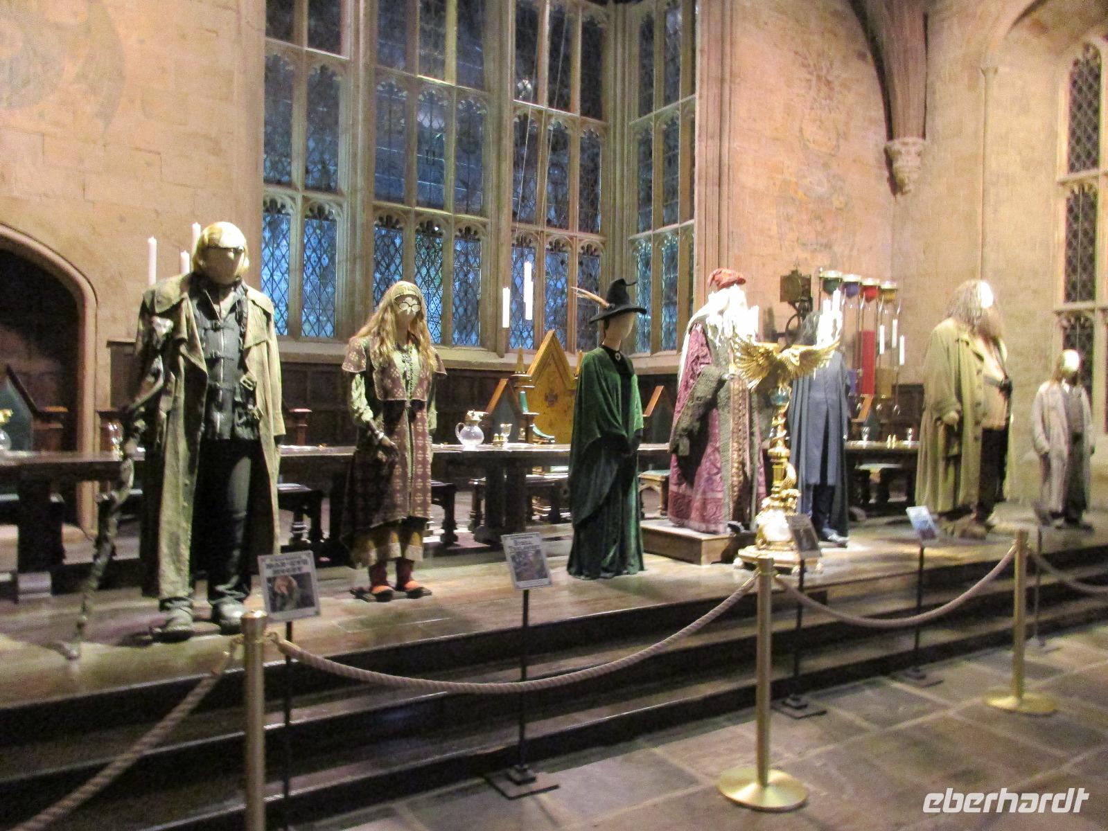 Nach einer kleinen Mittagpause in der Cafeteria erwarten uns auf dem Außengelände der dreistöckige, lila Bus des fahrenden Ritters und das Haus der Dursleys. In der zweiten Halle können wir etwas über die Maskenbildung der Kobolde und das Entstehen von verschiedenen Ideen mit deren Skizzen und Modellen und die Winkelgasse vorfinden. Ganz zum Schluss erwartet uns noch das große, wundervolle Modell des Hogwarts Schlosses, welche für die Dreharbeiten gebaut wurde, denn dieses Schloss existiert in Wirklichkeit gar nicht.