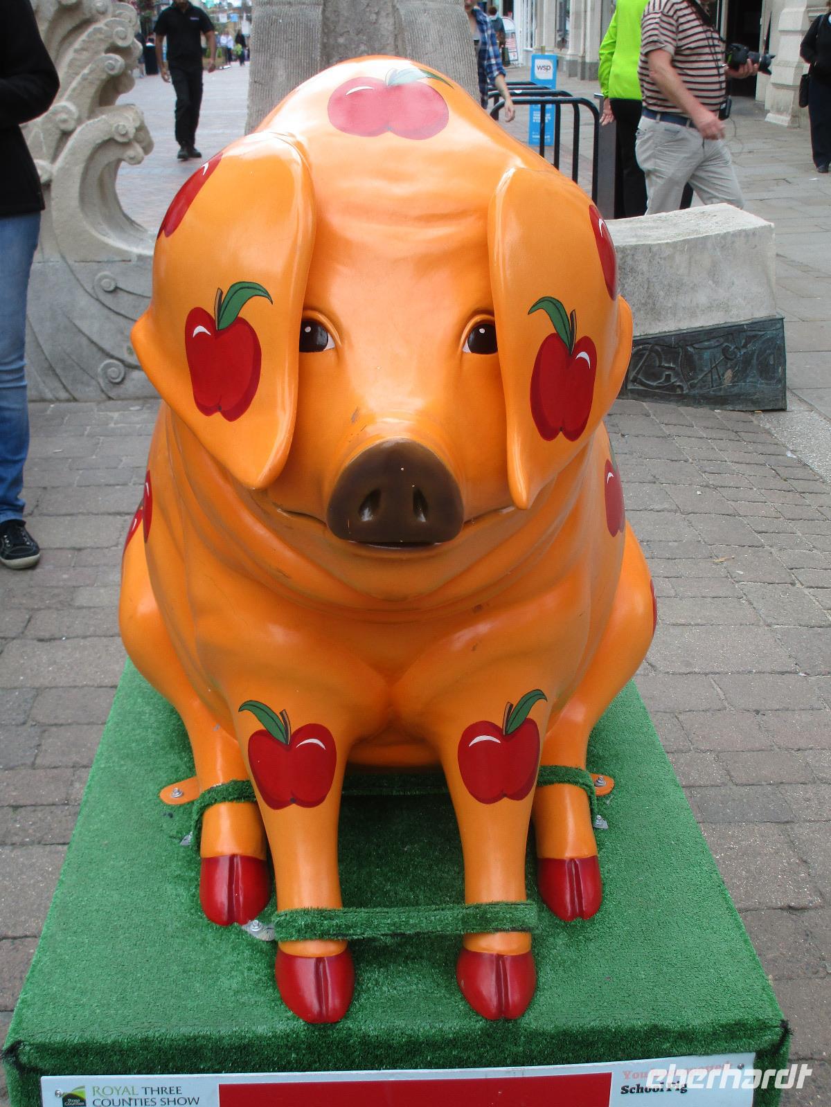Unsere Fahrt führt uns weiter nach Gloucester. Nach einem kleinen Spaziergang mit Blick in die vier Einkaufsstraßen nach Osten, Westen, Süden und Norden besichtigen wir die berühmte Kathedrale, wo ganz verschiedene Baustile vereint sind. Auch hier im Kreuzgang gehen wir auf Entdeckungssuche und können den einen oder anderen Flur von Hogwarts wieder erkennen und die bekannten Waschbecken. In Gloucester befindet sich gerade eine Ausstellung zu den Schweinen von Gloucester, welche daran erinnert, dass die Schweine viel lieber das gute und frische Obst den Bauern in früherer Zeit wegaßen. Überall in der Stadt sind aus diesem Grund Schweine aufgestellt, welche an dieses Ereignis erinnern sollen. Ganz fasziniert sind wir, als wir im Kreuzgang ein Harry Potter Schwein sogar finden können ?
