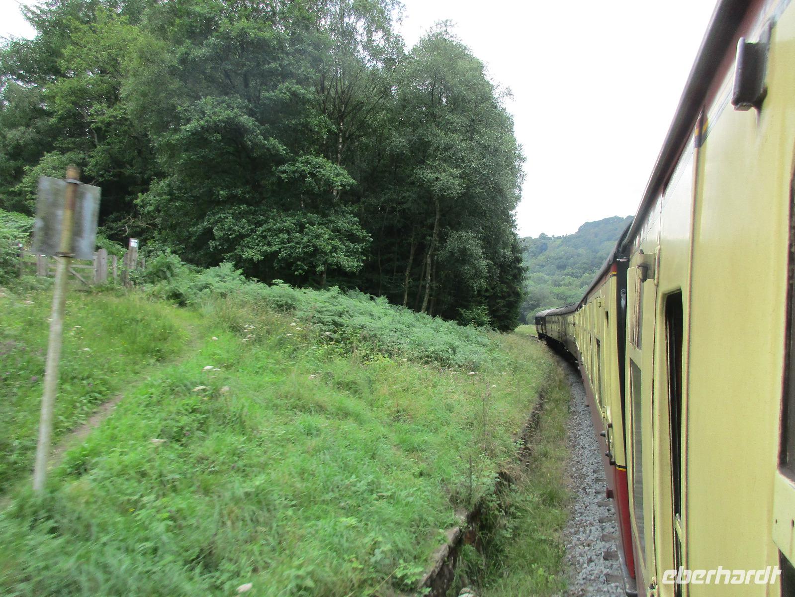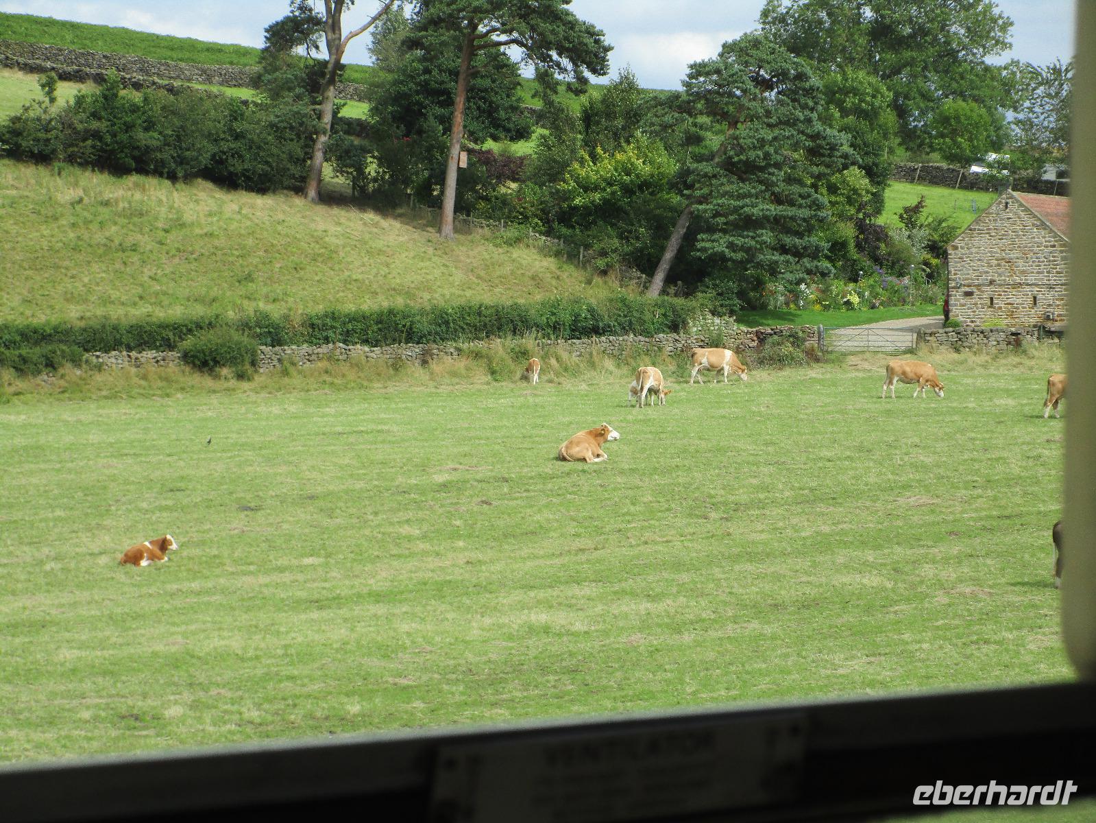 Am Bahnhof angekommen fährt schon unser Zug ein. Durch ein Signalausfall am Vormittag kommt leider eine Diesellok und nicht, wie erwartet, eine Dampflok. Wir steigen alle in das letzte Abteil des Zuges ein und freuen uns auf eine wundervolle Fahrt durch das North York Moors. Simone erzählt uns während der Fahrt einiges über die Landschaft und die Gefahren bei einem Spaziergang durch das Moor.