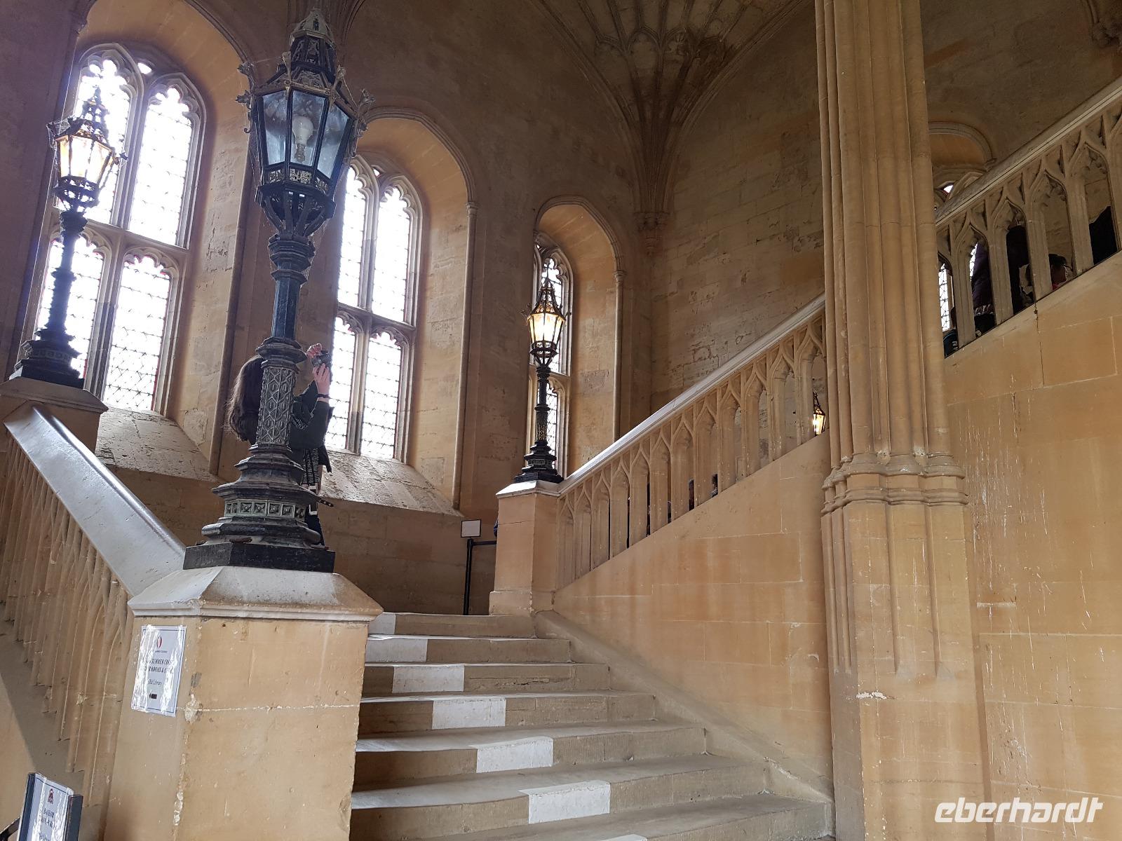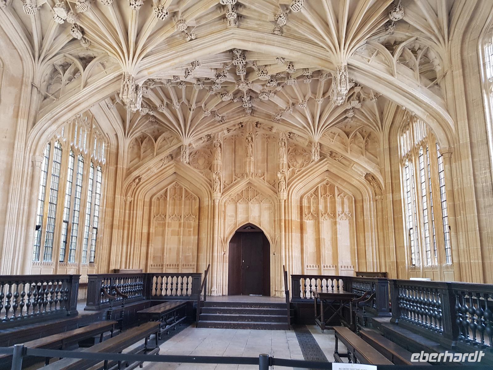 Nach dem Frühstück geht es auf zur Studienstadt Oxford. Unsere beiden örtlichen Reiseleiterinnen zeigen uns Christ Church College welches uns direkt an viele Szenen aus den Harry Potter Filmen erinnert. Auf unserem Weg durch die beschauliche Stadt erfahren wir viel Interessantes über die Universitäten und haben im Anschluss auch Zeit für eigene Erkundungen. Hier lassen sich sehr gut weitere Souvenirs einkaufen, denn es gibt nicht nur einen reinen Harry Potter Laden, sondern auch alles um Alice im Wunderland und natürlich auch diverse Kleidungsstücke mit der Aufschrift „Oxford University" Nach der Mittagspause besichtigen wir zusammen die Divinity School. Dieser Raum diente unter anderem als Drehort für den Krankenflügel von Hogwarts.