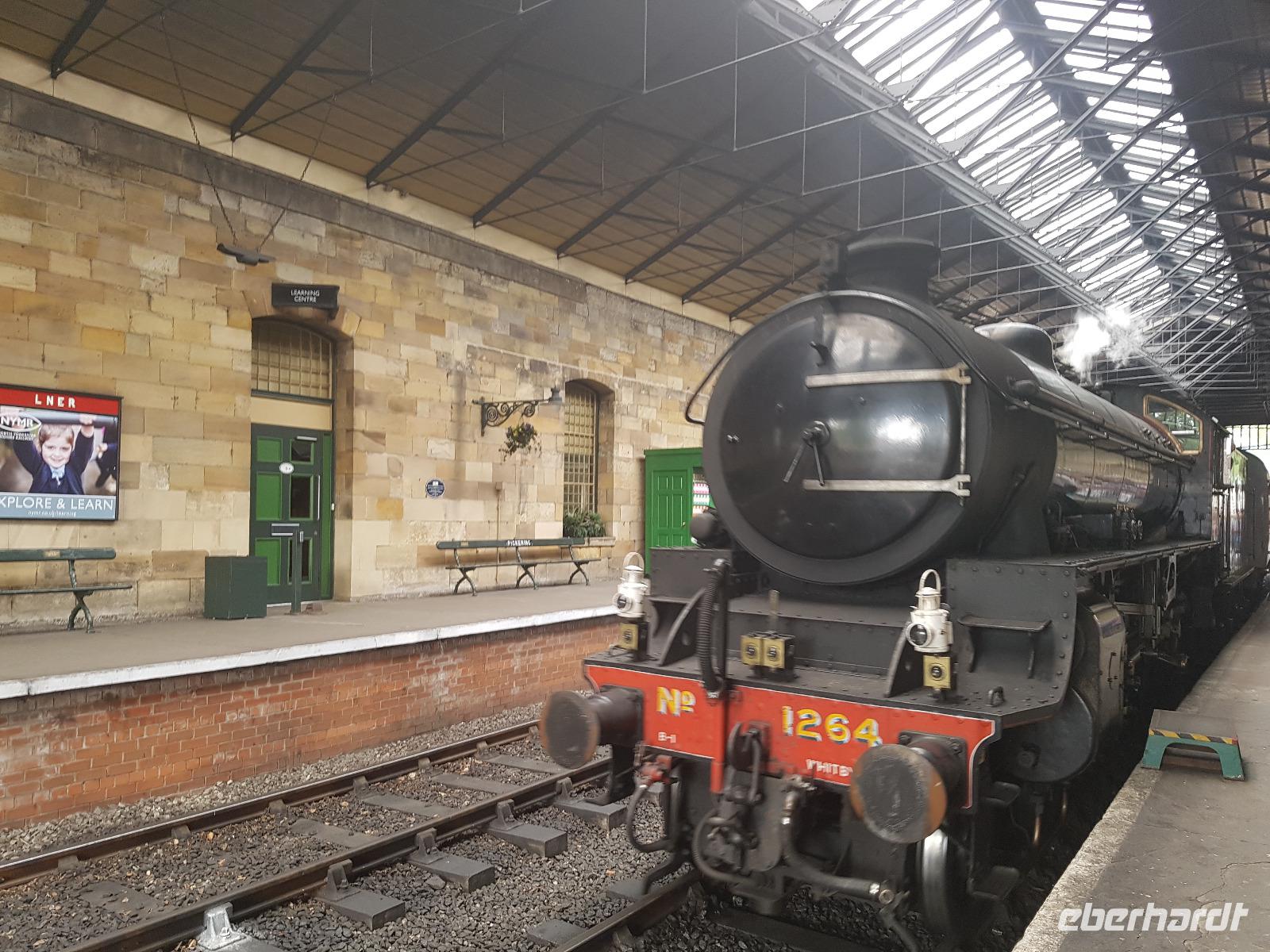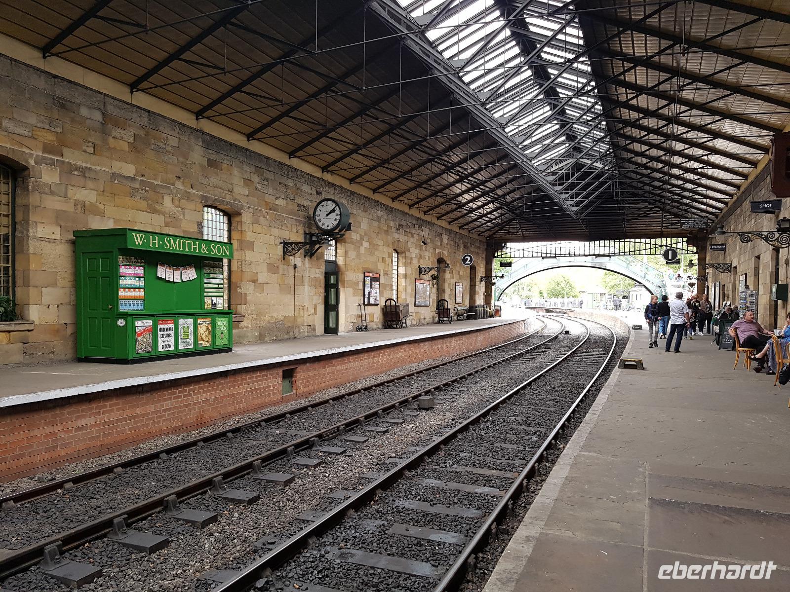 Ein weiteres Highlight unserer Rundreise ist die Zugfahrt von Pickering nach Goathland. Zirka eine Stunde lang können wir die vorbeiziehende Landschaft bestaunen. Der Bahnhof Goathland wurde als Drehort für Hogsmead genutzt und das kann man vor Ort auch erkennen. Einzig und allein das majestätische Schloss im Hintergrund fehlt.