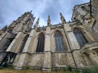 Nach dem Frühstück fahren wir nach York, wo wir uns mit unseren beiden örtlichen Reiseleiterinnen treffen. Auf unserem Weg durch die schmalen Gassen Yorks erfahren wir viel über die Geschichte und die Architektur dieser lebhaften Stadt. Es geht vorbei am Münster, der Kunstgalerie, dem Museumsgarten (mit einer kleinen Vogelschau) und vielen weiteren Sehenswürdigkeiten. Am Ende der Stadtführung landen wir in einer der berühmtesten Straßen Yorks: the Shambles – eine kleine Einkaufsstraße mit vielen magischen Läden! Hier kann man von Umhängen über Zauberstäbe bis hin zu Zaubertränken alles kaufen! Nicht umsonst ist diese Straße zum Vorbild der Winkelgasse geworden – alle Häuser stehen hier ein wenig schief.