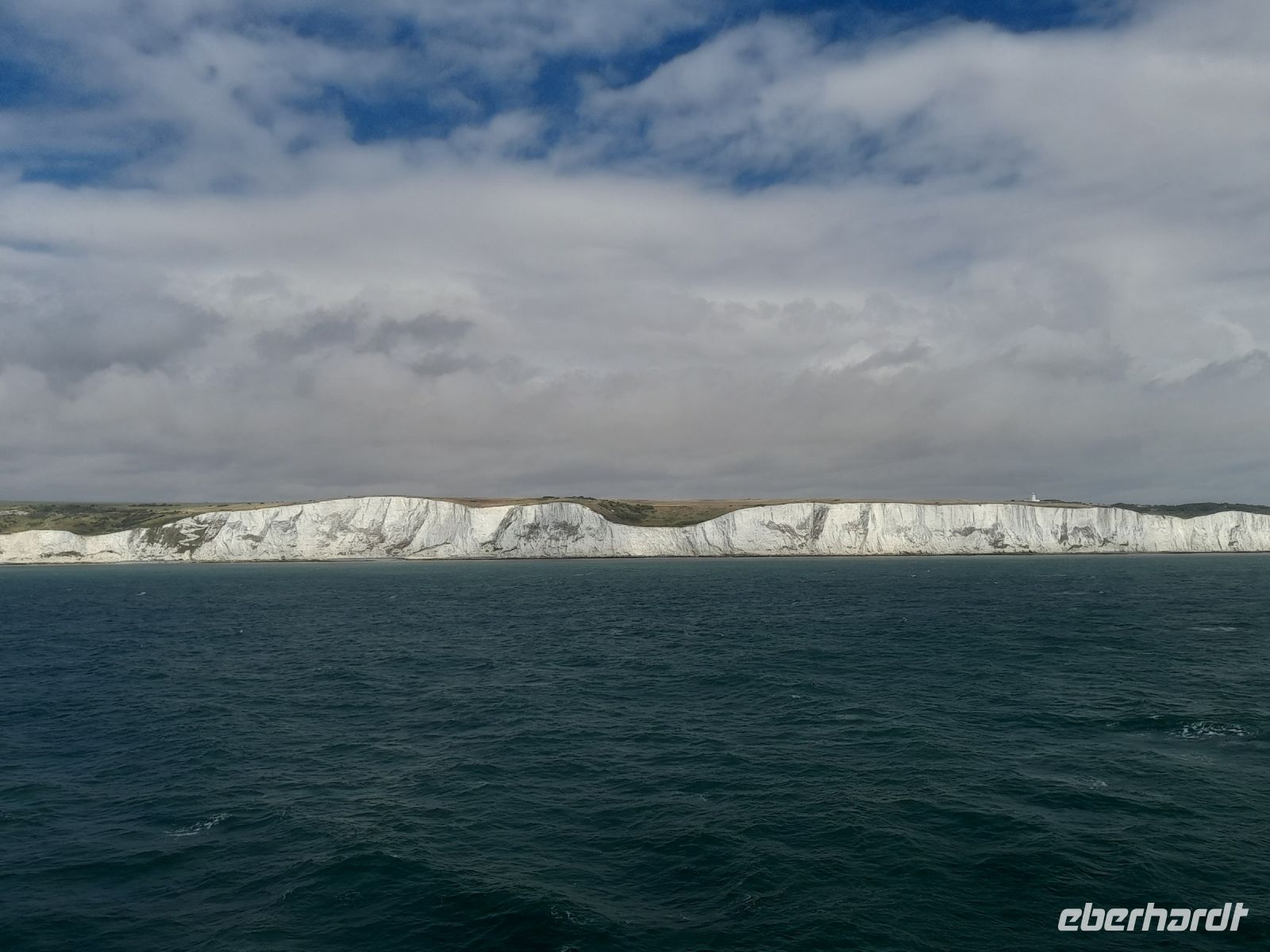 Auch Tag zwei geht früh los, denn mit der Fähre wollen wir den Ärmelkanal gen England überqueren. In Calais angekommen heißt es warten, Zollkontrolle und dann nochmals warten und dann dürfen wir endlich mitsamt unseres Busses auf das Schiff der Fährgesellschaft P&O. Die Überfahrt an der engsten Stelle zwischen europäischem Festland und den britischen Inseln dauert etwa 90 Minuten und entgegen des Klischees lassen wir das schlechte Wetter in Frankreich und Dover begrüßt uns mit Sonnenschein. Schon von Weitem kann man am Horizont die weißen Kreidefelsen sehen – das ist wirklich ein toller Willkommensgruß.