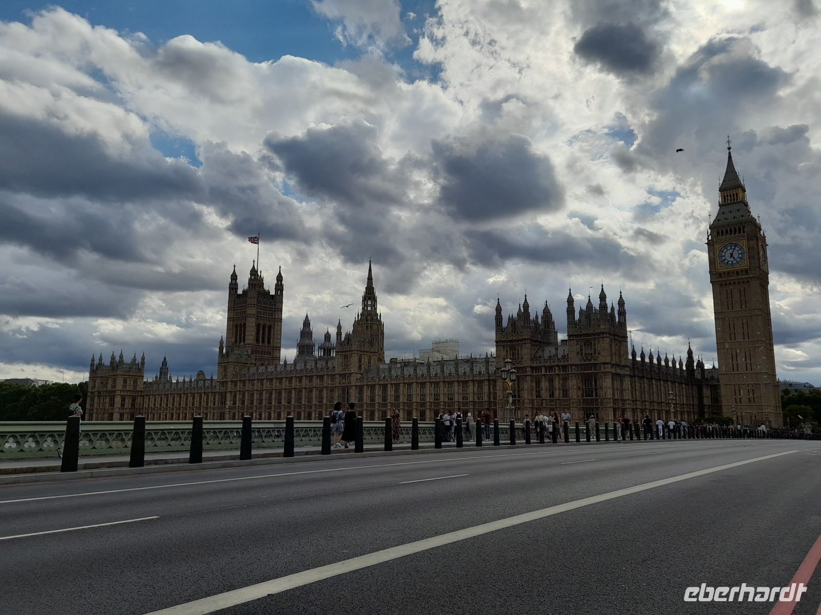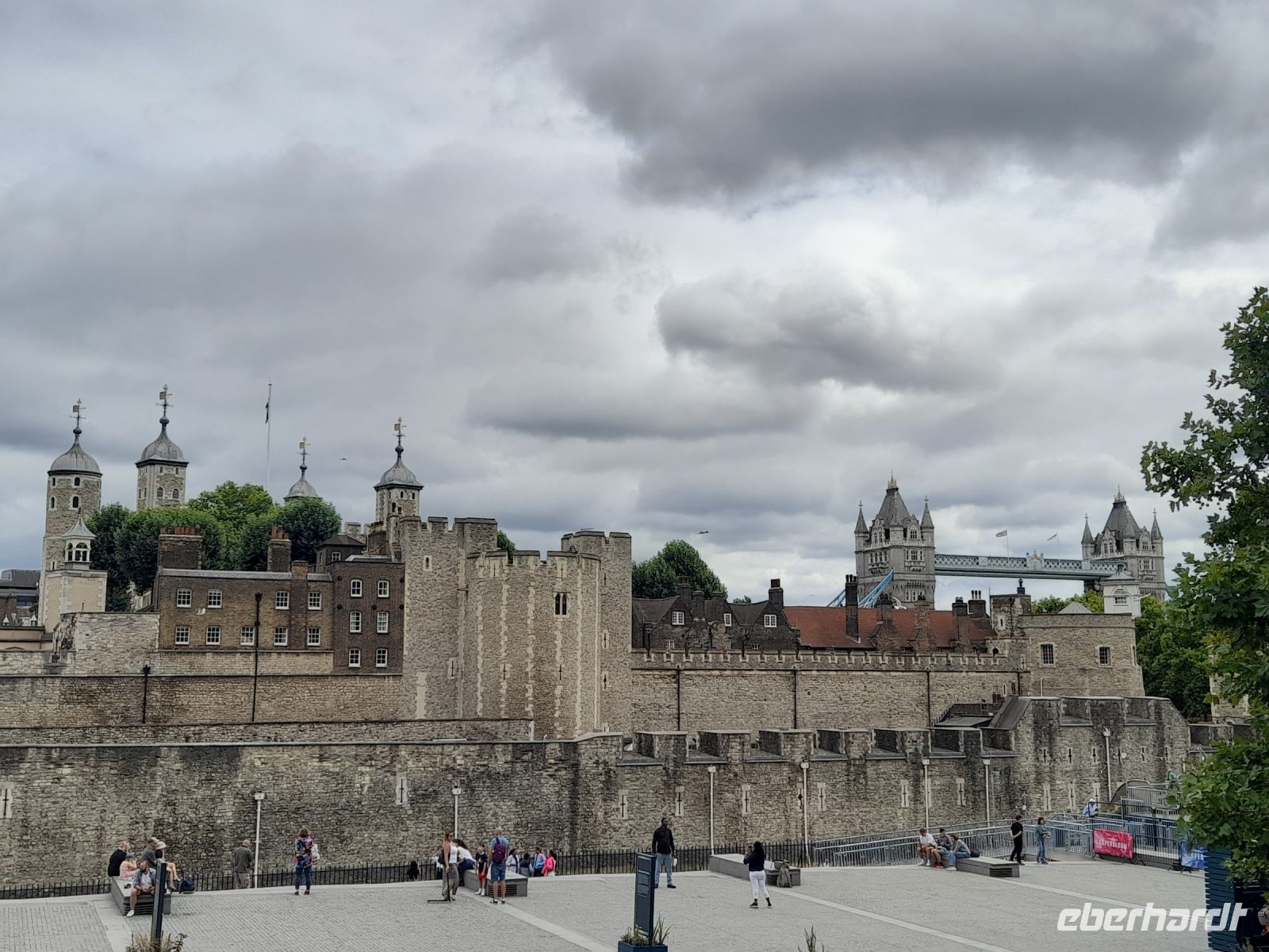 Von Dover aus geht es dann direkt weiter nach London. Wir kommen von Südosten in die Stadt hinein und fahren durch den bekannten Stadtteil Greenwich – das Maß aller Dinge, möchte man meinen, denn hier verläuft der Nullmeridian und auch die gesamte Weltzeit richtet sich nach der hier festgelegten Rechnung. Weiter geht es durch den neun Inn-Stadtteil Elephant & Castle und weiter nach Southwark. Wir überqueren die Themse schließlich über die bekannteste der über 30 Brücken, die 1896 vollendete Tower Bridge. Am anderen Ende erwartet uns der Tower of London, der älteste Sitz des englischen Königshauses, der zurückgeht auf die Zeiten Wilhelms des Eroberers. Heute werden hier die britischen Kronjuwelen verwahrt und ausgestellt. Ganz so viel Zeit bleibt uns heute nicht, aber für einen kleinen Spaziergang und eine Mittagspause reicht es.