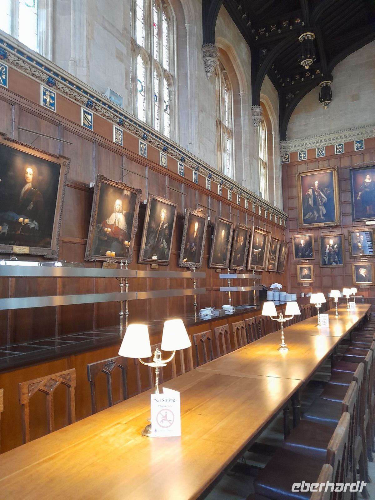Unser erstes Ziel ist das Christ Church College, das im 16. Jahrhundert durch König Heinrich VIII. gegründet wurde. Es ist eines der größten Colleges der Universität von Oxford und diente in den Harry Potter Filmen als Kulisse, unter anderem als Vorbild für die große Halle und für das Treppenhaus Hogwarts. Nach einer Besichtigung mit Audioguides treffen wir unsere beiden Stadtführerinnen Annetta und Susanne. Mit ihnen unternehmen wir einen Spaziergang durch die Altstadt und erfahren eine Menge Wissenswertes über das Leben an der Universität früher und heute und vor allem auch über die zahlreichen Bibliotheken, die sich in der Stadt befinden.