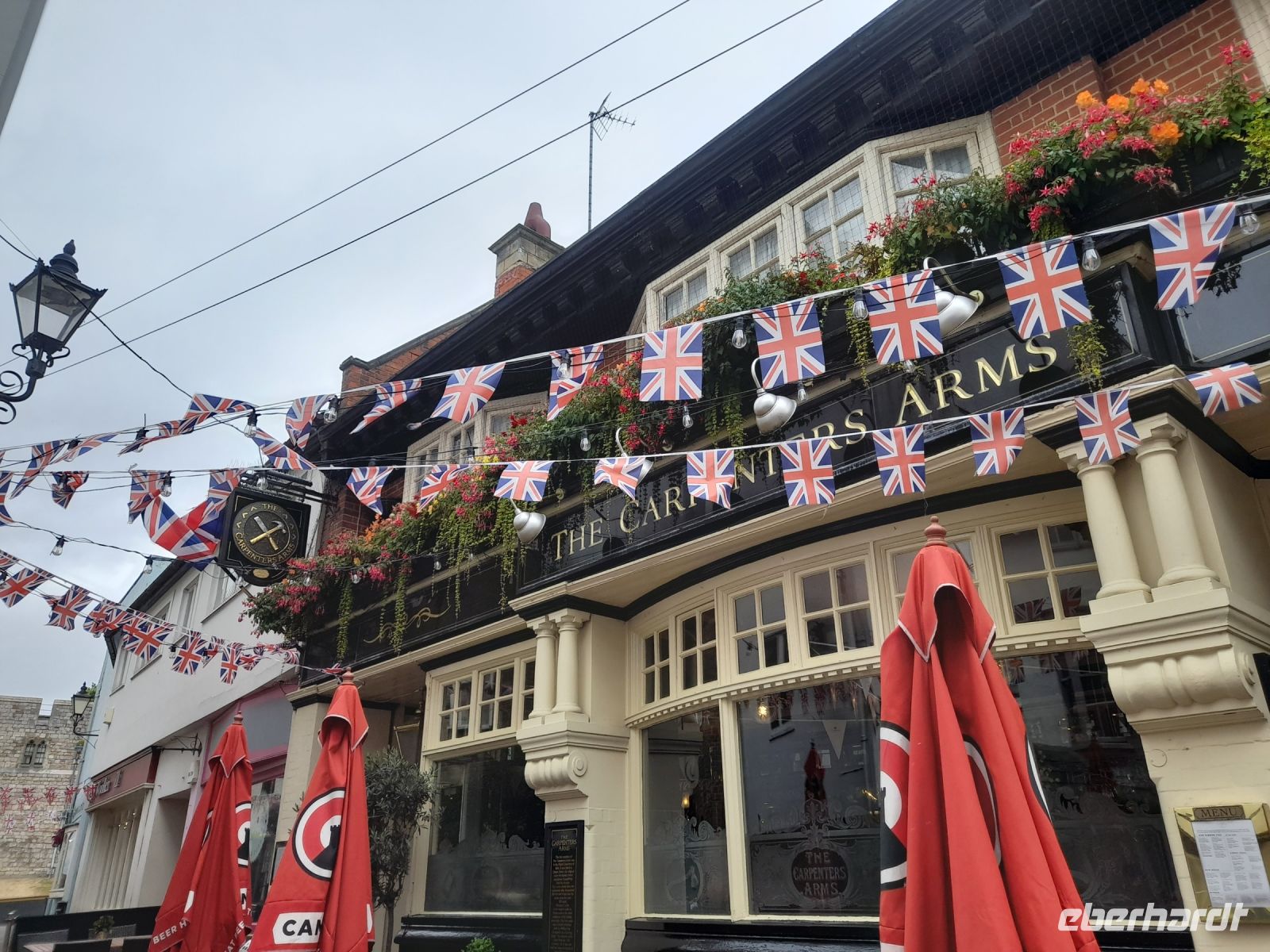 Nachdem dann einige Stunden später sämtliche Fan-Wünsche erfüllt sind, geht es für uns noch einmal zurück nach Windsor, wo wir heute Abend im Pub traditionelle Küche genießen dürfen.