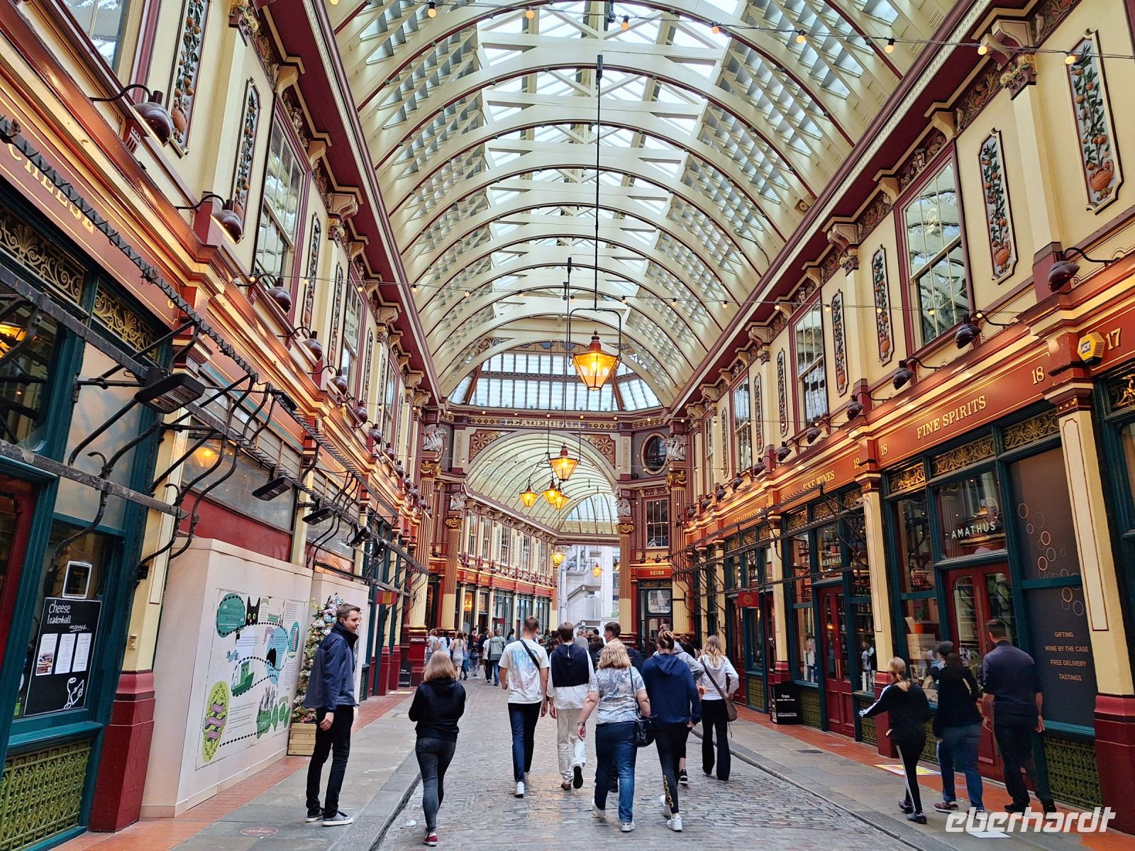 Nun ist es Zeit, unsere Reisegruppe zu komplettieren. Denn parallel sind noch einige Gäste mit dem Flugzeug nach London gereist. Sie haben schon eine Nacht in unserem Hotel verbracht und mit ein paar kleinen Hindernissen haben sie es nun geschafft, uns zu treffen. Das passt perfekt, denn wir werden von unserer örtlichen Gästeführerin Ulla schon erwartet, die uns mitnimmt auf eine unglaublich informative Fahrt durch London mit vielen Informationen und Eindrücken. Vor allem aber finden wir die ersten Drehorte unserer Tour hier: am Bahnhof Kings Cross mit dem Gleis 9¾, im Leadenhall Market, auf der Millennium Bridge und bei St. Pauls Cathedral.