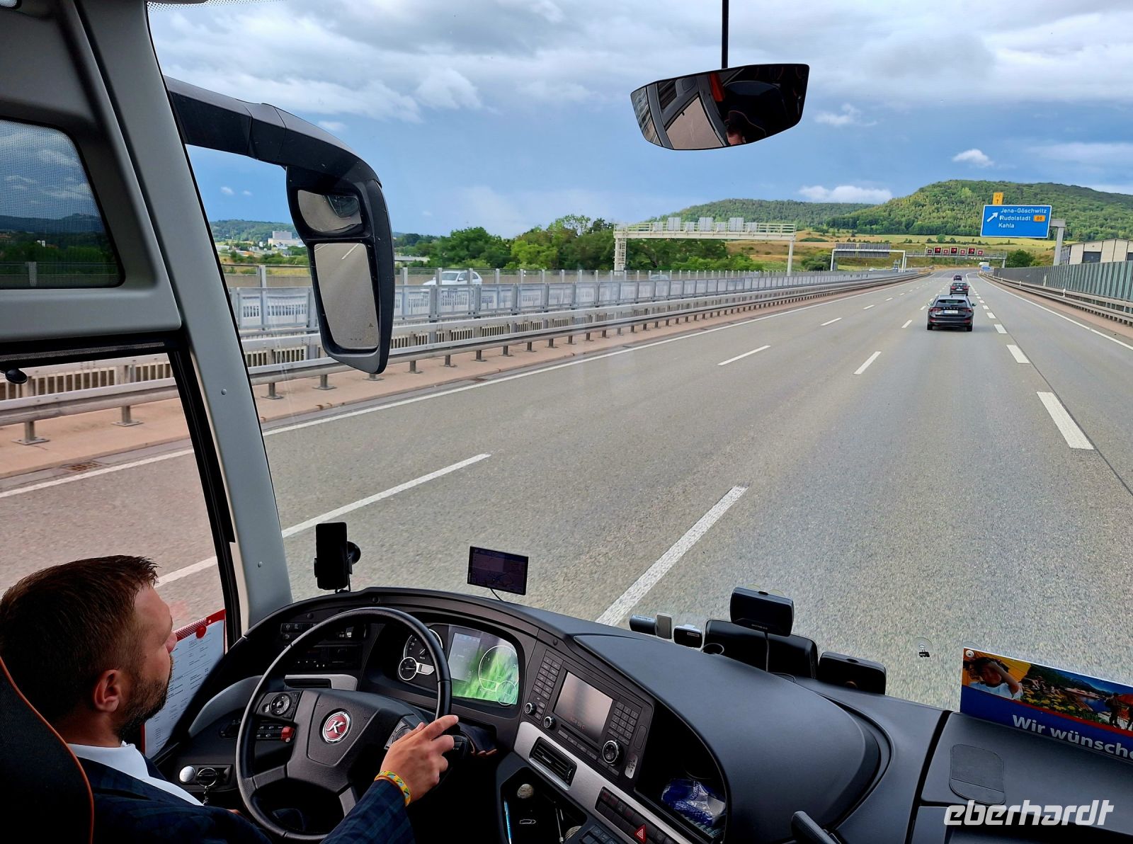 An diesem Morgen schauen einige von uns etwas verdrießlich aus. Sie wurden in der Nacht von einem Feueralarm geweckt. War es wirklich ein Hotelgast, der im Zimmer geraucht hat? Oder ein Fehlalarm? Egal, die Nachtruhe war unterbrochen. Aber nach einem üppigen Frühstück und einer Tasse Kaffee ist die Laune wieder gut und wir verstauen unsere Koffer im Bus.