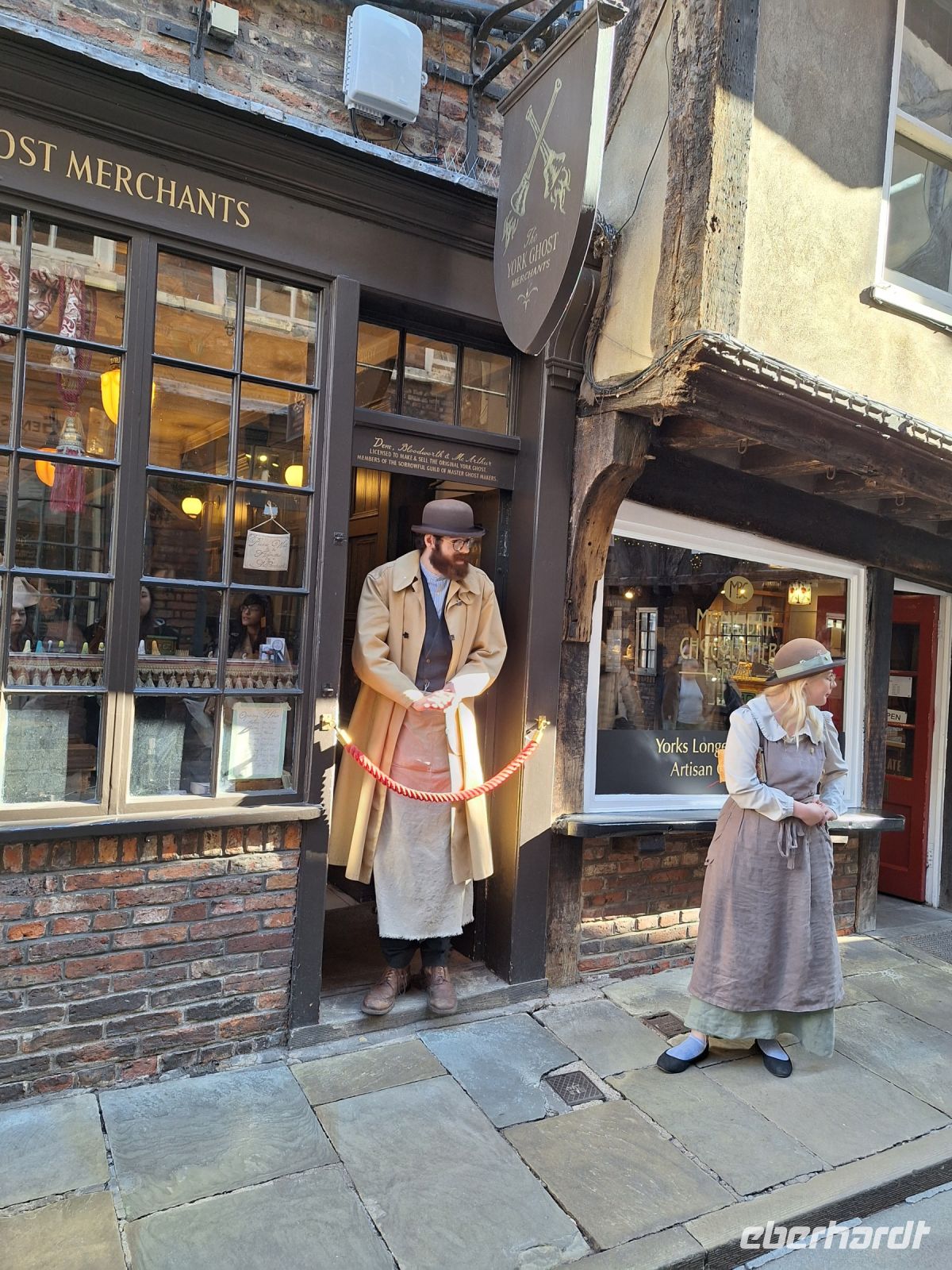 Ziel der Führung sind die „Shambles“ – eine historische Gasse mit mittelalterlichen Fachwerkgebäuden. Früher eine Art Fleischmarkt, finden sich heute hübsche Läden mit Namen wie "Der Shop, der nicht genannt werden darf", "World of Wizardry", "The Boy Wizard" und "Tränkekessel" – und schon ist klar, dass es in ihnen alles zu kaufen gibt, was das Herz unserer Harry Potter - Freunde erfreut.