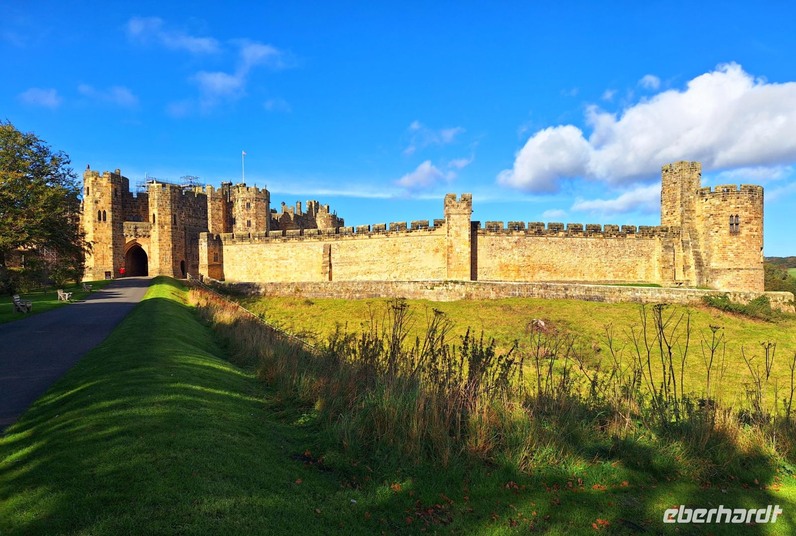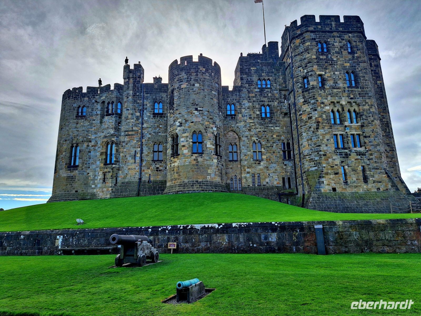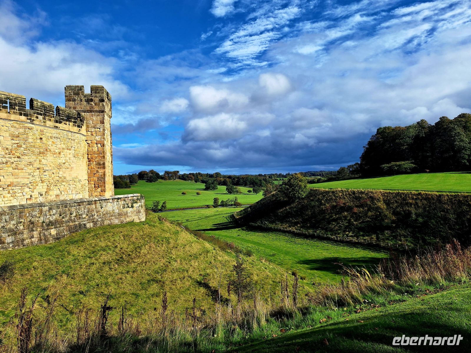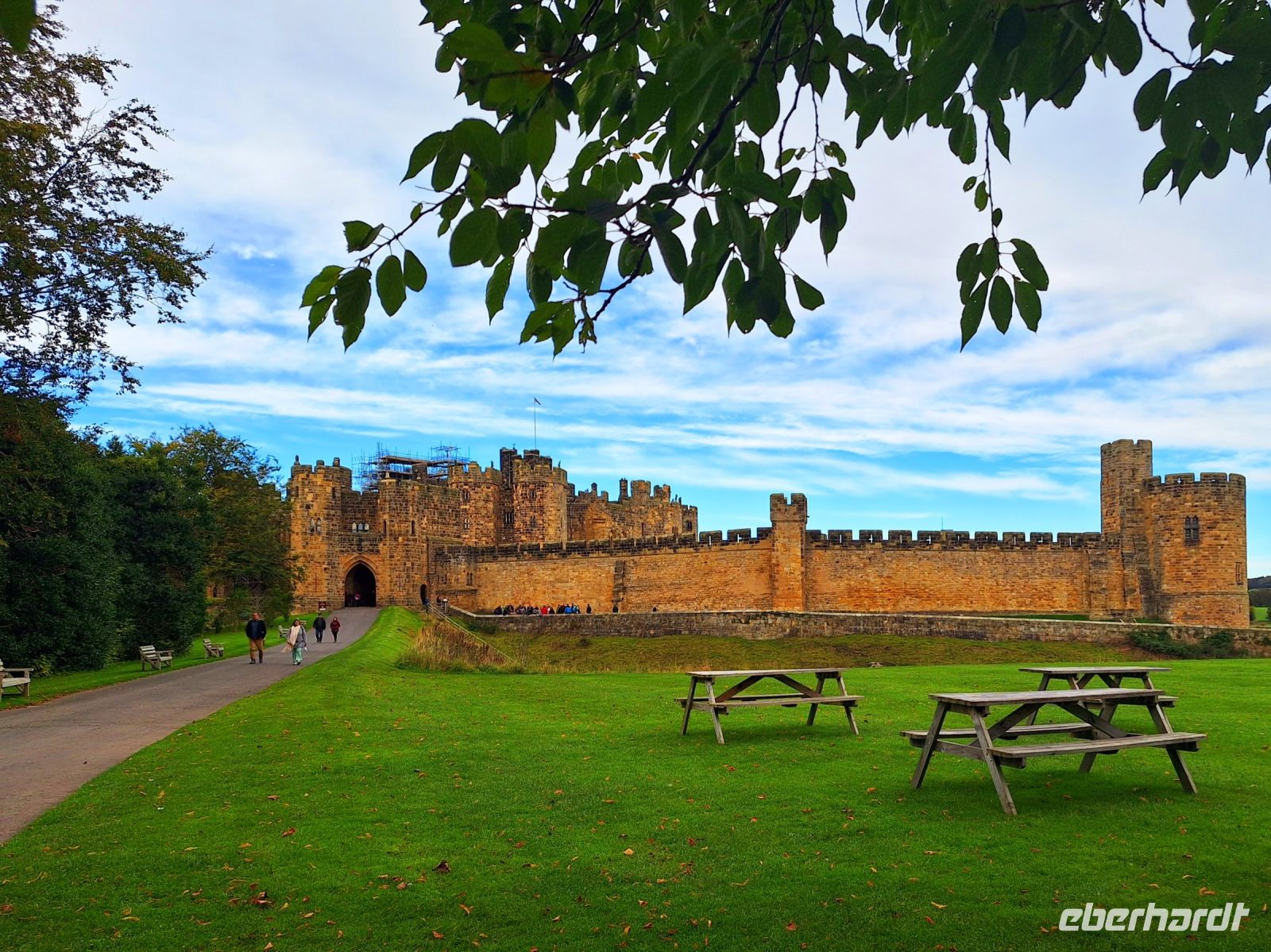 Wir fahren in nördlicher Richtung nach Alnwick und sind sehr froh, daß es am Horizont immer heller wird. Fällt unsere wichtige Besenflugstunde doch nicht ins Wasser?
