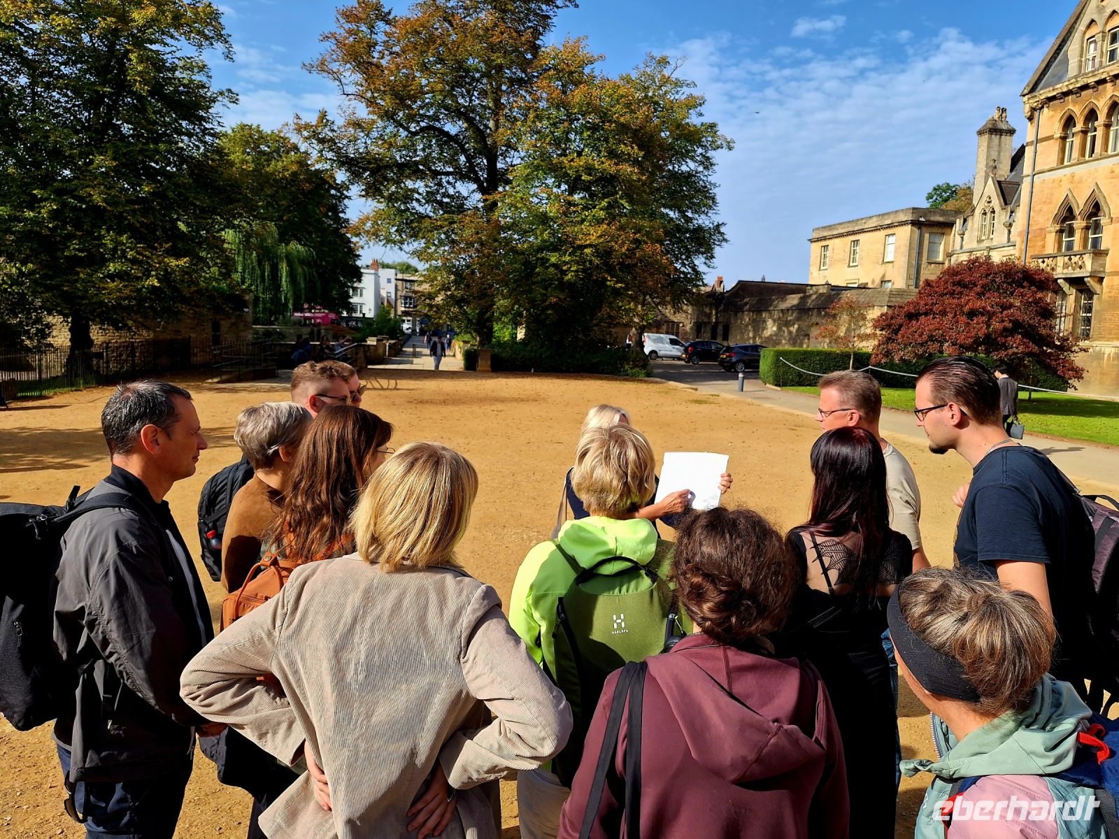 Danach werden wir von Susanne und Brigitte, unseren örtlichen Guides, zu einer sehr informativen und abwechslungsreichen Stadtführung abgeholt. Oxford ist eine wirklich schöne und lebendige Stadt. Wir sind am ersten Tag des beginnenden Semesters hier und so sind einige „Schulanfänger“ zu sehen, die mit einer Art Schnitzeljagd ihre neue Heimat erkunden.