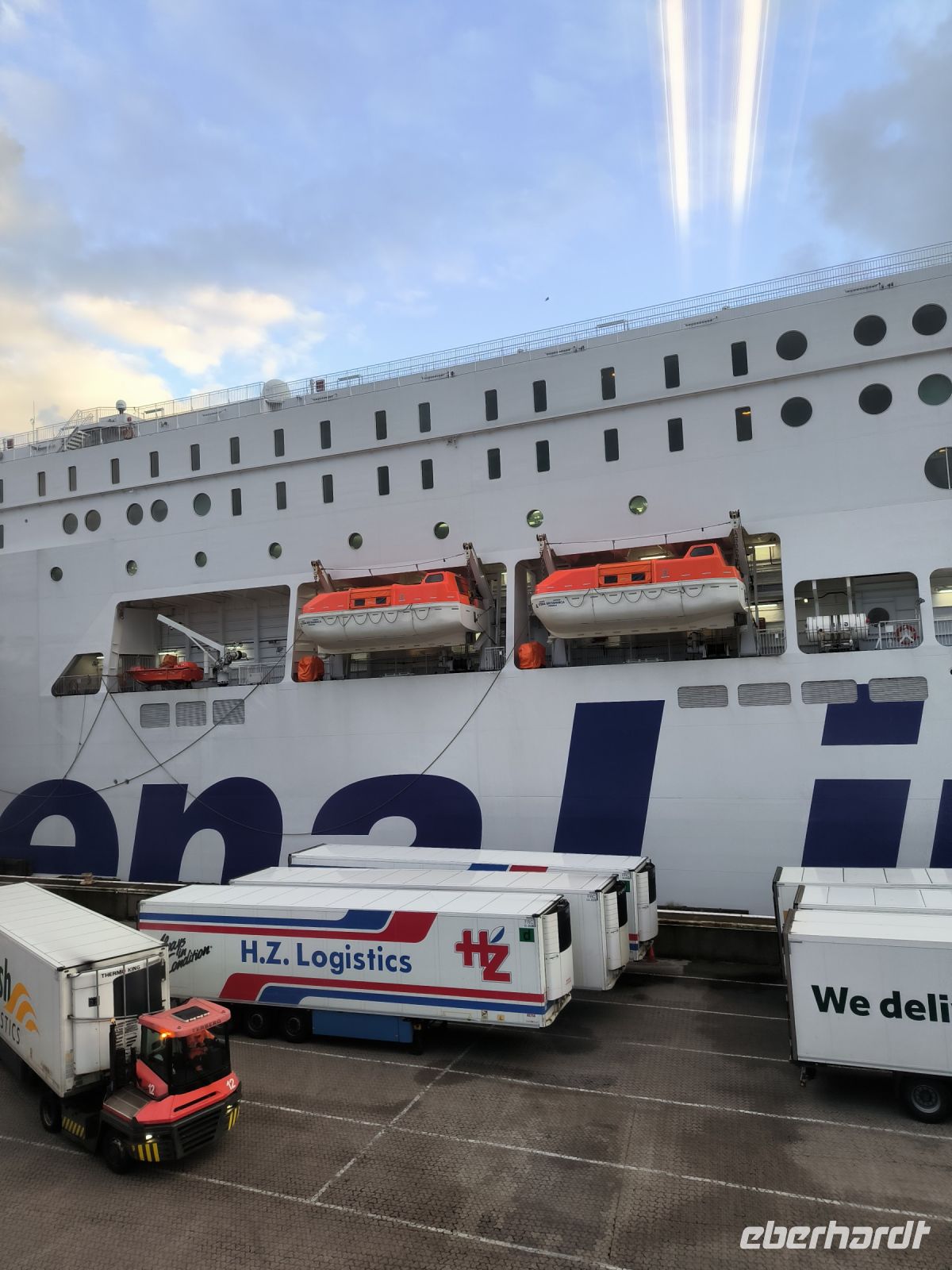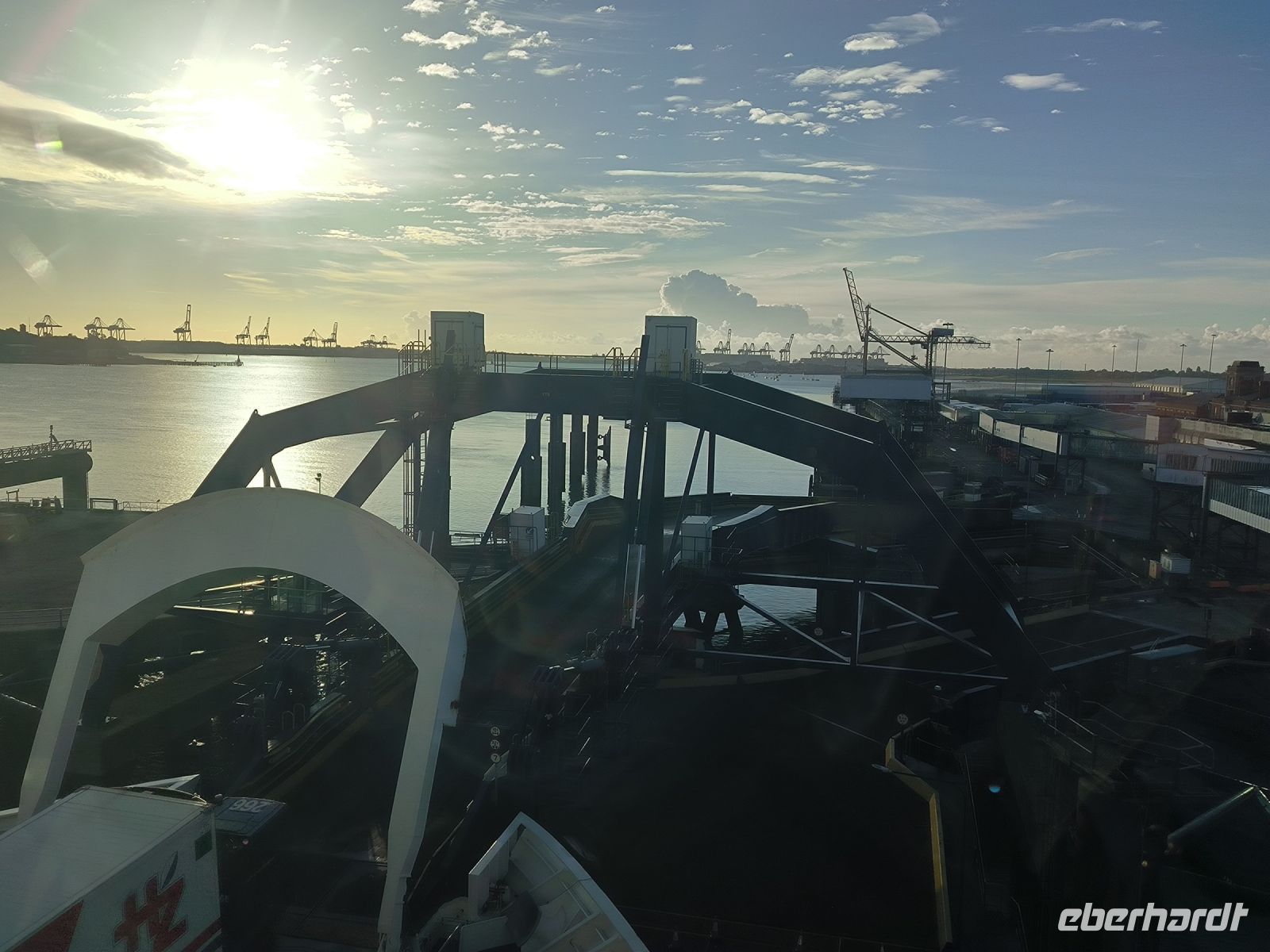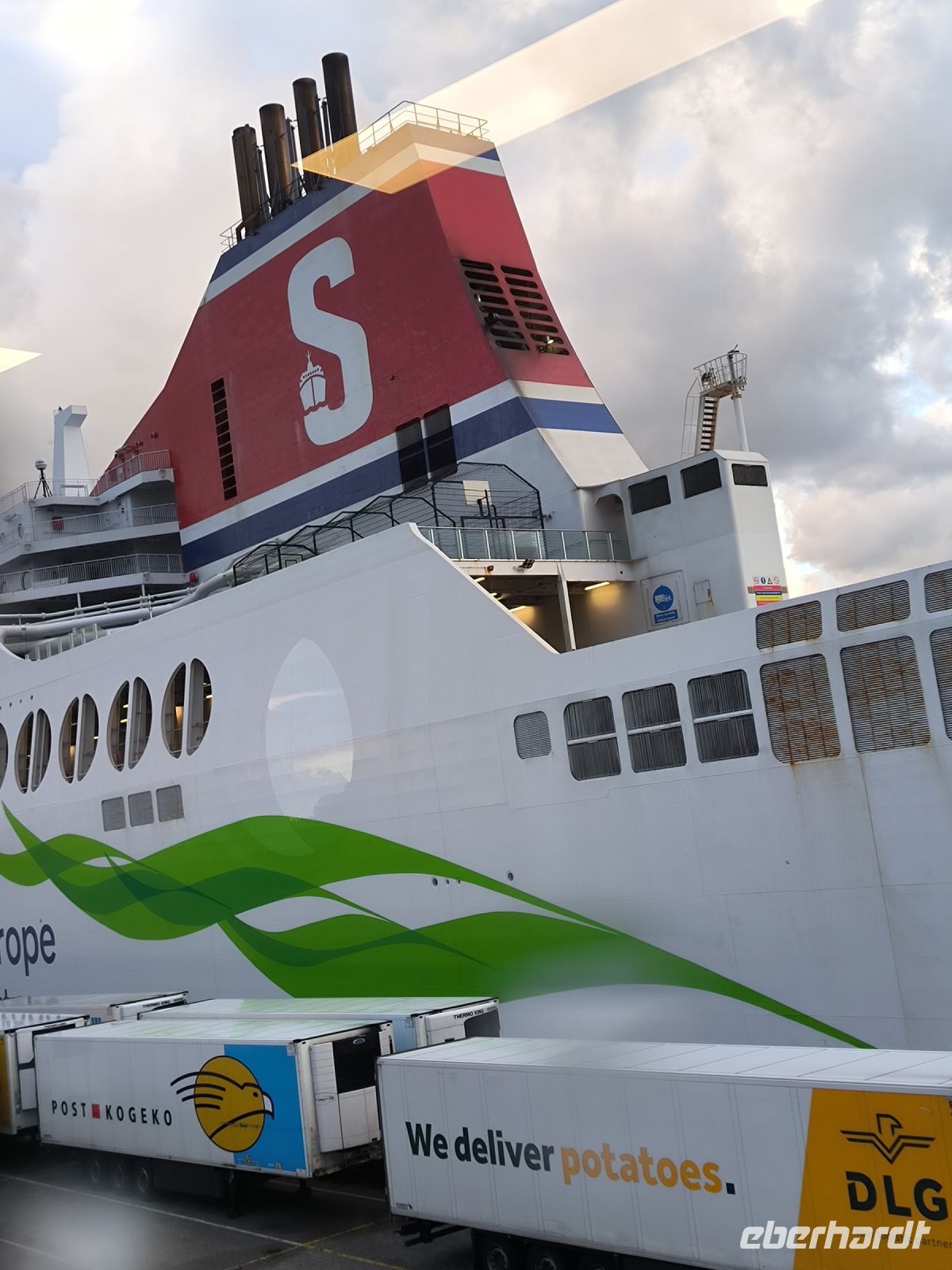 Alle anderen fahren weiter zum Fährhafen, wo wir uns der Pass- und Zollkontrolle unterziehen. Tatsächlich werden drei Koffer willkürlich ausgewählt. Diese und ihre Besitzer sind die „Stichproben“ und werden etwas genauer kontrolliert. Auch das Innere des Busses und drei Handgepäckstücke werden inspiziert. Natürlich ist alles in Ordnung und wir können auf der dänischen Fähre „Princess Seaways“ einchecken. Es schaukelt etwas mehr als auf der Hinfahrt, was nicht allen gefällt.