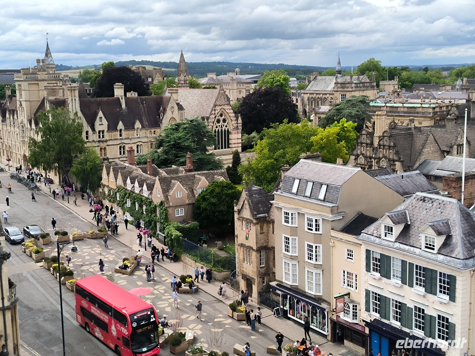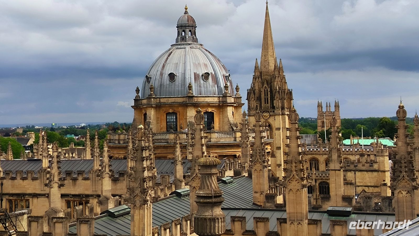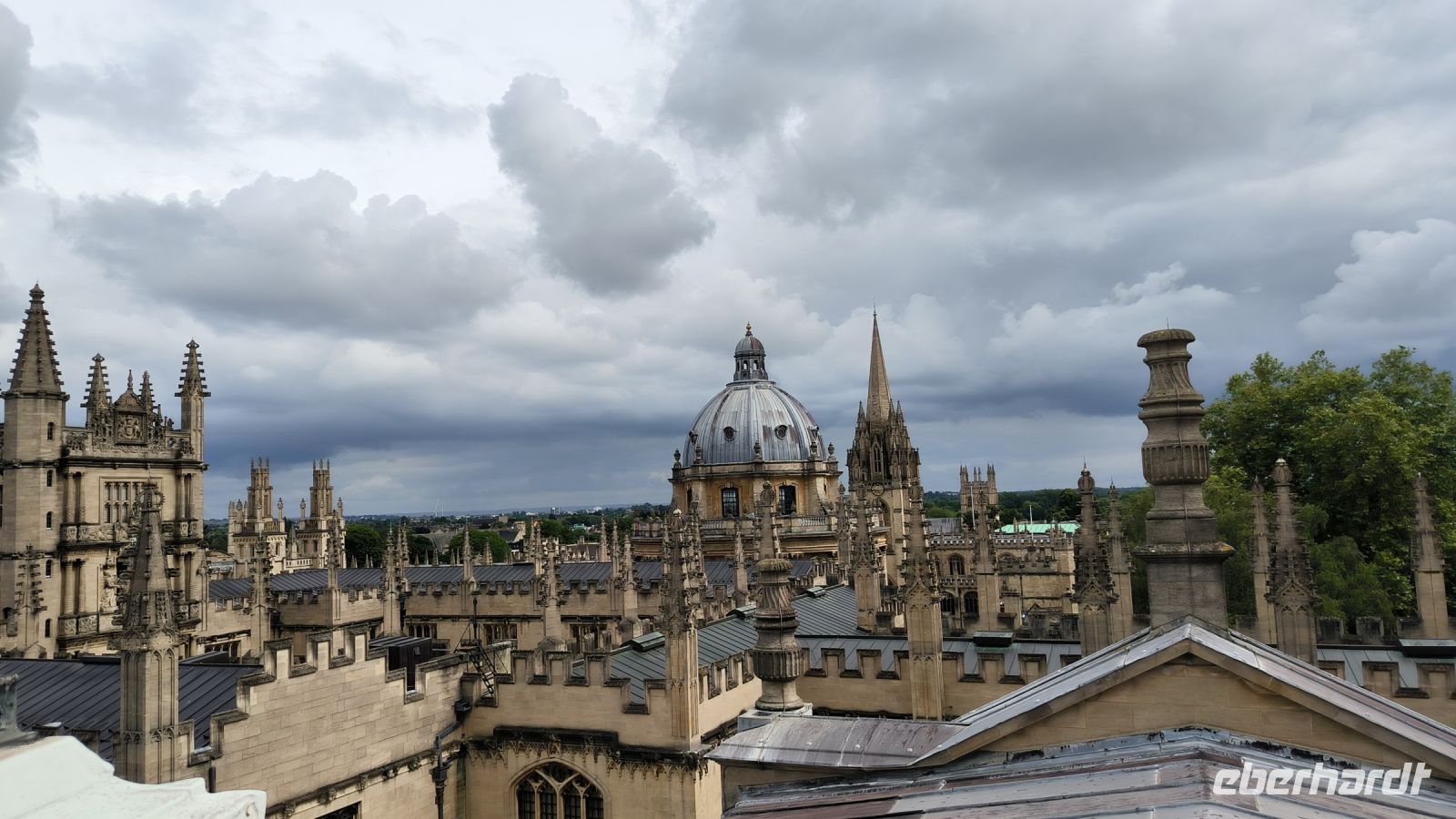 Danach bleibt noch Zeit, den Turm der Universitätskirche St. Mary the Virgin zu besteigen. Von hier aus, aber auch von der Kuppel des Sheldonian Theatres, hat man einen sensationellen Blick über die Colleges der Stadt.