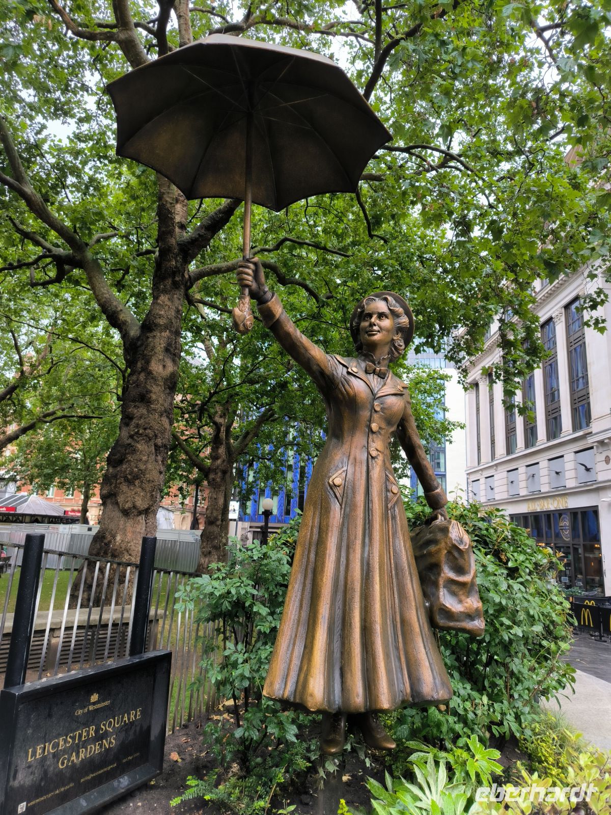 Und siehe da, unter 13 Bronzestatuen am Leicester Square finden wir neben Berühmtheiten wie Charlie Chaplin, William Shakespeare, Gene Kelly, Paddington Bear, Laurel & Hardy, Batman, Mary Poppins und Mr. Bean auch (heute etwas versteckt) die Harry Potter – Statue auf dem Besen.