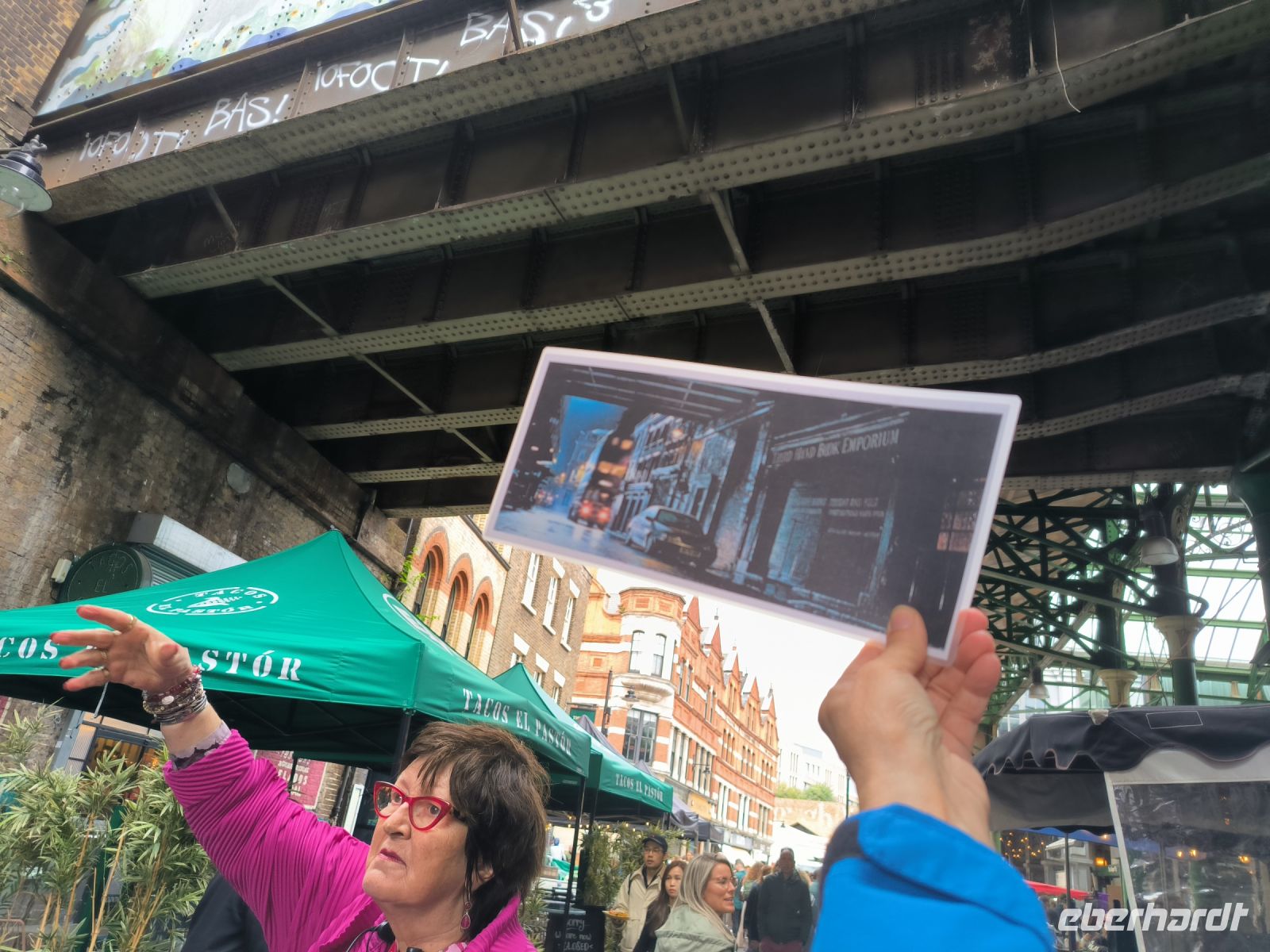 Am Sonntagmorgen haben sie es nun geschafft, uns zu treffen. Das passt perfekt, denn wir werden von unserer örtlichen Gästeführerin Marguerite schon erwartet, die uns mitnimmt auf eine unglaublich informative Fahrt durch London mit vielen Informationen und Eindrücken. Vor allem aber finden wir die ersten Drehorte unserer Tour hier: am Bahnhof Kings Cross mit dem Gleis 9¾, im Leadenhall Market, auf der Millennium Bridge, bei St. Pauls Cathedral und am Borough Market.