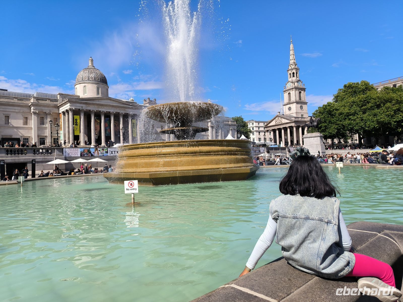 Dann ist es Zeit für eigene Erkundungen – und schon setzt der englische Regen ein. Ein Teil der Gruppe rettet sich in die anglikanische Kirche St Martin-in-the-Fields, wo man in der Krypta nicht nur das stille Örtchen besuchen, sondern auch auf den Grabplatten sitzend sein Mittagessen einnehmen kann. Das machen wir und als wir wieder zum Tageslicht aufsteigen, scheint schon wieder die Sonne.