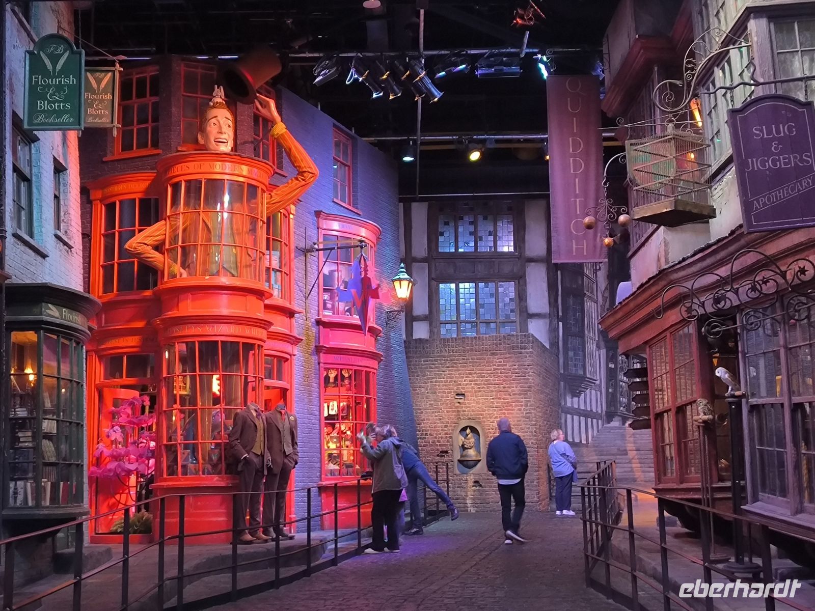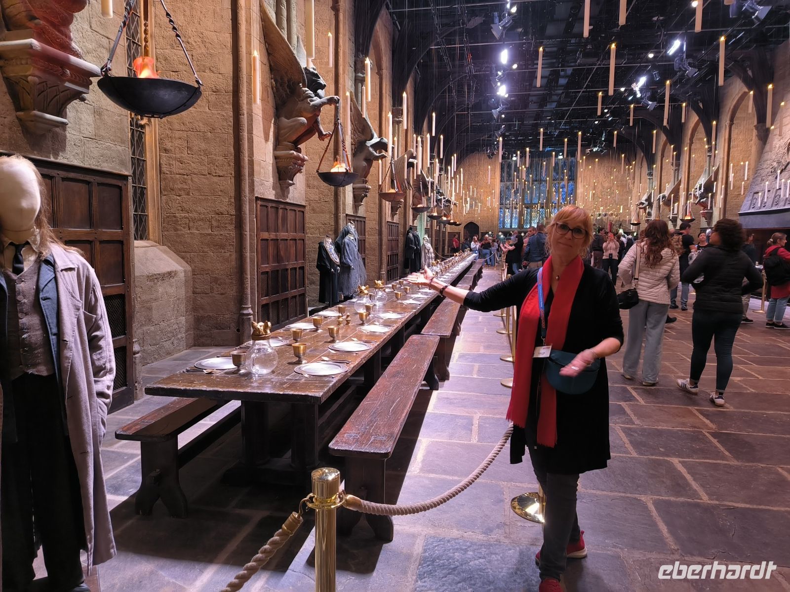 Doch nun sind alle Zauberschüler gespannt auf eines der Highlights dieser Reise. Wir fahren zu den Warner Brothers Filmstudios, wo die Harry Potter Filme zu großen Teilen gedreht und produziert wurden. Auf dem Weg dahin umrunden wir den Kreisverkehr und erhaschen einen ersten Blick in den Ligusterweg. Noch ist der große Parkplatz fast leer, Reiseleiterin Heike besorgt die Tickets für alle und schon kurze Zeit später gehen wir an den überdimensionalen Zauberstäben vorbei in die heiligen Hallen. Achtung Drachenalarm! Nicht kitzeln!