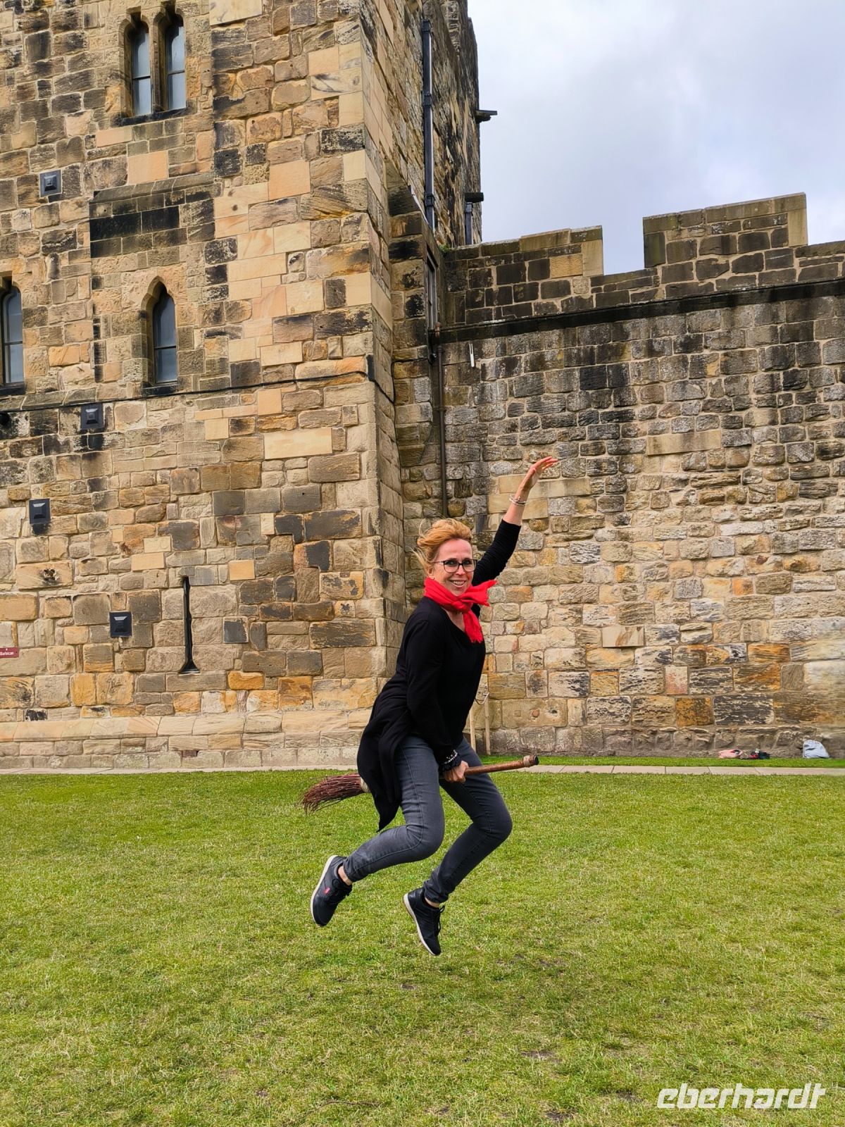 Der Tag der Abreise und der ersten Abschiede ist gekommen, aber vorher freuen wir uns auf ein weiteres, sehr wichtiges Ereignis unserer Reise. Wir müssen noch einmal zur Schule gehen und unsere Besenflug-Prüfung ablegen. Dazu fahren wir nach Alnwick Castle, dem zweitgrößten Adelssitz Englands (nach Windsor) und Stammsitz der Familie Percy.