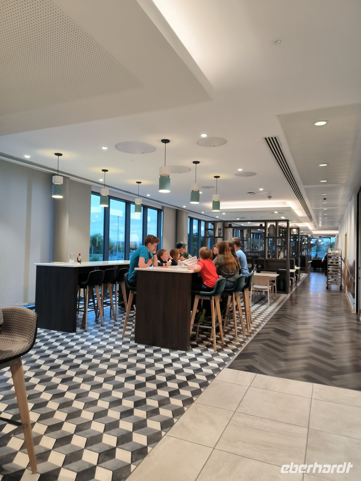 Kleiner Schreckmoment beim Betreten der Tiefgarage: ein Alarm geht los. Drachenalarm? Nein, da ist wohl jemand auf den falschen Knopf gekommen. Gemeinsam fahren wir dann durch London zu unserem Moxy Hotel in Heathrow. Nachdem alle ihre Zimmer bezogen haben, treffen wir uns zum Abendessen und danach erobern die Kids den großen Spielebereich.