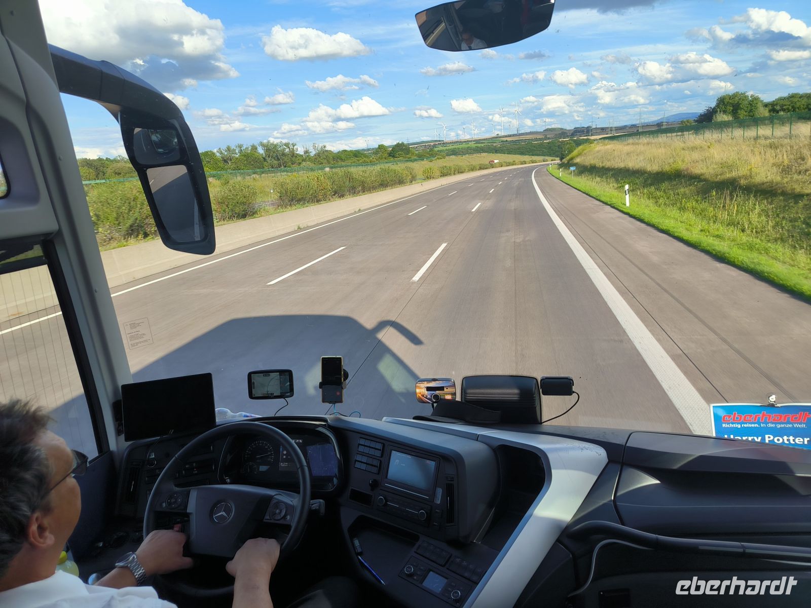 Über Chemnitz, Jena, Eisenach, Paderborn und das Ruhrgebiet führt unsere Fahrt nach Hoek van Holland. Die lange Fahrt wollen wir uns mit Harry Potter-Filmen verkürzen, aber leider ist die digitale Technik mit unserem nagelneuen und modernen Reisebus noch nicht ganz kompatibel. Maik wird das Problem später lösen.