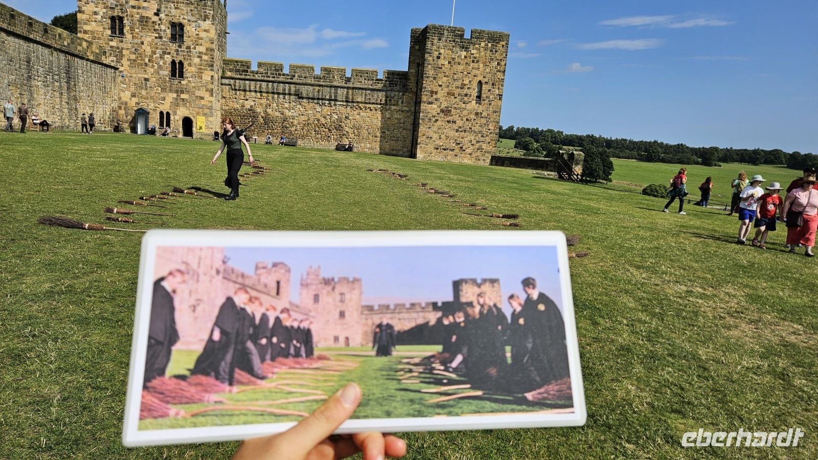 Alle sind schon etwas wehmütig, als es an diesem Morgen zu unserem letzten Harry Potter geht. Bei für uns typischen super Wetter und mit einem kleinen Lüftchen sind die Bedingungen perfekt, um in die Lüfte zu steigen. Aber bevor es zu diesem Highlight kommt, machen wir alle noch einen kleinen Spaziergang rund um das Schloss. Dort sehen wir natürlich ganz viele Besenflugszenen, aber auch wieder wie die Macher von Harry Potter uns austricksen. Denn Alwnick Castle diente im ersten Teil als Schloss von Hogwarts, aber wir suchen tatsächlich vergeblich das Quidditch Feld und die schottischen Highlands. Dann heben wir ab oder manche versuchen es zumindest. Mit vielem Lachen absolvieren alle erfolgreich ihre erste Besenflugstunde und machen danach noch schicke Bilder. In der anschließenden Freizeit besuchen alle mal die Innenräume des Schlosses, gehen in den Shop und schauen sich die wunderschönen Gärten von Alwnick Castle an. Am Bus überrascht Maik mal wieder alle, denn er hat doch tatsächlich einen Besen gekauft. Nach Hause zurückfliegen macht jedoch nur ein Teil und dieser muss uns jetzt am Flughafen verlassen. Das Drama ist kurz groß, aber dann trennen sich leider die Wege von Flug- und Buszauberern. Wohingegen einigen Fluggästen das Glück heute nicht hold ist, ist es den Busgästen umso mehr. Nach einem fantastischen Abendessen geht es für uns zum Bingo Spielen. Und da ist direkt ein wenig Magie im Spiel, denn Maya und Annika, gewinnen beide! Und das als Zwillinge! Das gewonnene Geld wird dann auch gleich mal auf den Kopf gehauen. Nach diesem turbulenten Abend fallen wir alle vollgegessen ins Bett.