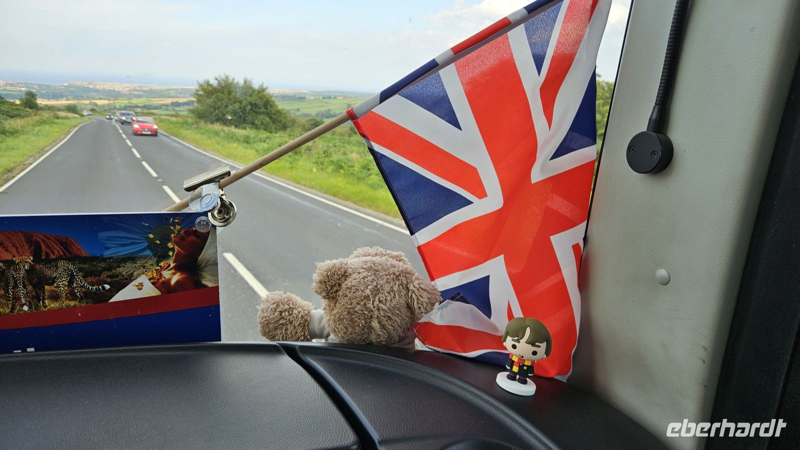 Auch heute heißt es wieder auf zum nächsten Hotel. Aber nicht ohne „Harry Potter und der Gefangene von Azkaban“ zu schauen. In York erwartet uns Christine, dem Anlass entsprechend gekleidet in Hexenhut und wallenden Umhang. Mit ihr schlendern wir durch York und erfahren viele wissenswerte Sachen über diese niedliche Stadt und haben auch noch eine kurze Lateinstunde. Gestärkt durch Zitronenbonbons geht alles viel besser. Unsere Stadtführung endet dann an den „Shambles“, einer kleinen Gasse mit krummen und schiefen Geschäften. Sie soll als Vorbild für die Winkelgasse gedient haben. Die ersten sprinten danach auch gleich in den „Shop, dessen Name nicht genannt werden darf“ und kaufen sich glitzernde Zaubertränke im „Potions Cauldron“. Nach einer schönen Freizeit kommen alle wieder zum Bus und die Fahrt geht weiter nach Pickering, wo wir uns kurz von Maik verabschieden müssen. Jetzt startet endlich unsere Zugfahrt nach Hogwarts. Anscheinend ist unserer Hogwarts Brief endlich angekommen. Die Zugfahrt führt uns durch das wunderschöne North Yorkshire Moor, vorbei an Schafen und Kühen. Und eine kleine Überraschung darf natürlich nicht fehlen. ?? In Goathland/ Hogsmead begrüßt uns Maik auch schon und alle sind verzaubert von diesem wunderschönen Bahnhof. An unserem Bus warten auch schon ein paar Schafe auf uns, die wir aber dort lassen. Nach einer wunderbaren Leistung von Maik am Berg sehen wir schon von weitem das Meer. Leider kommen wir an diesem Tag noch nicht ans Wasser, aber man hat einen wunderbaren Blick auf die weite Landschaft bei diesem schönen sonnigen und klaren Wetter. Im Hotel angekommen, freuen sich die Kids über Pizza beim Abendbrot und alle hüpfen ins Bett.