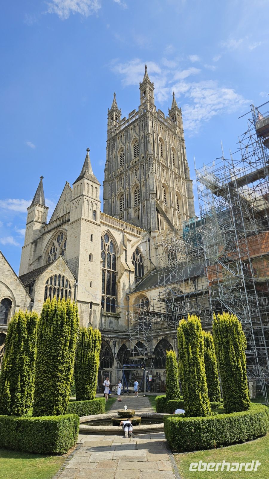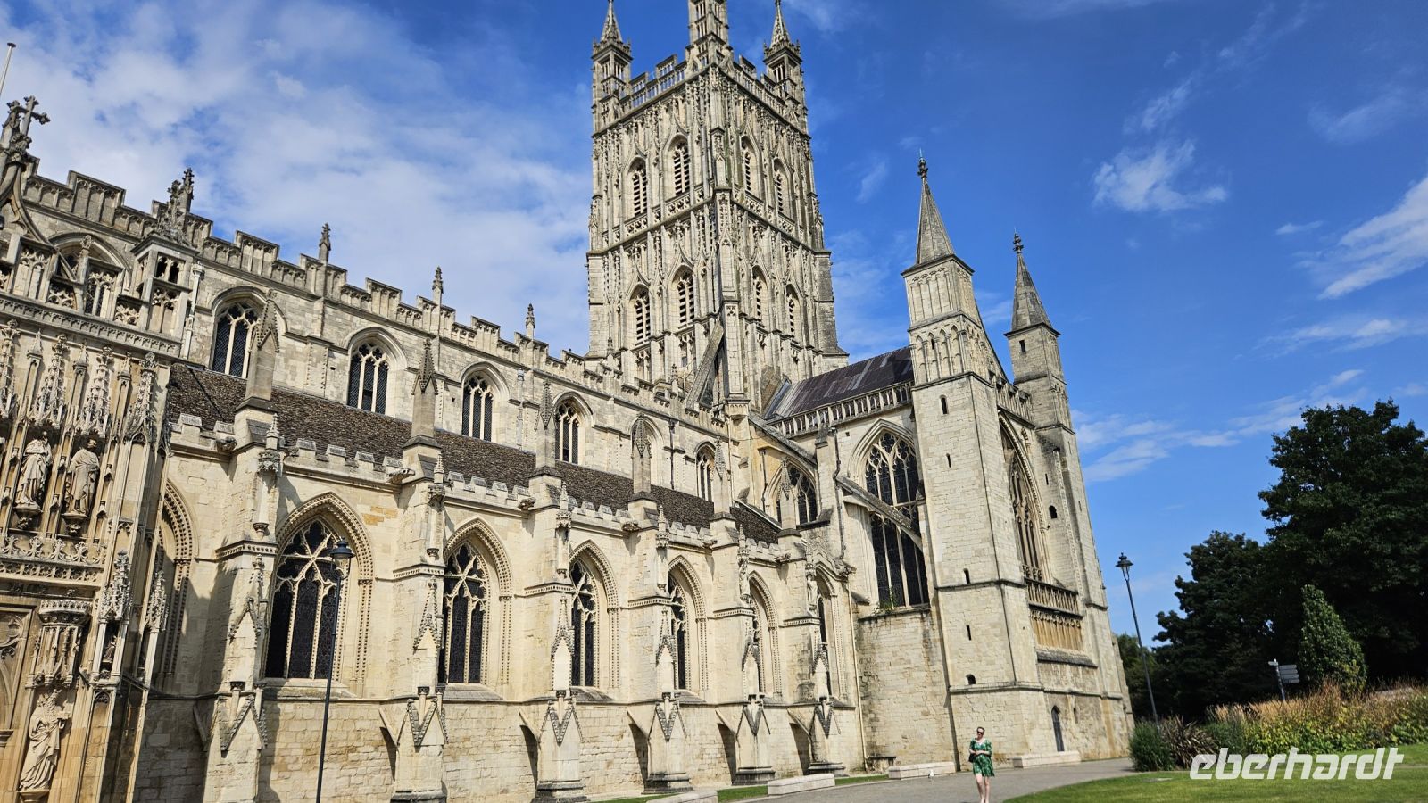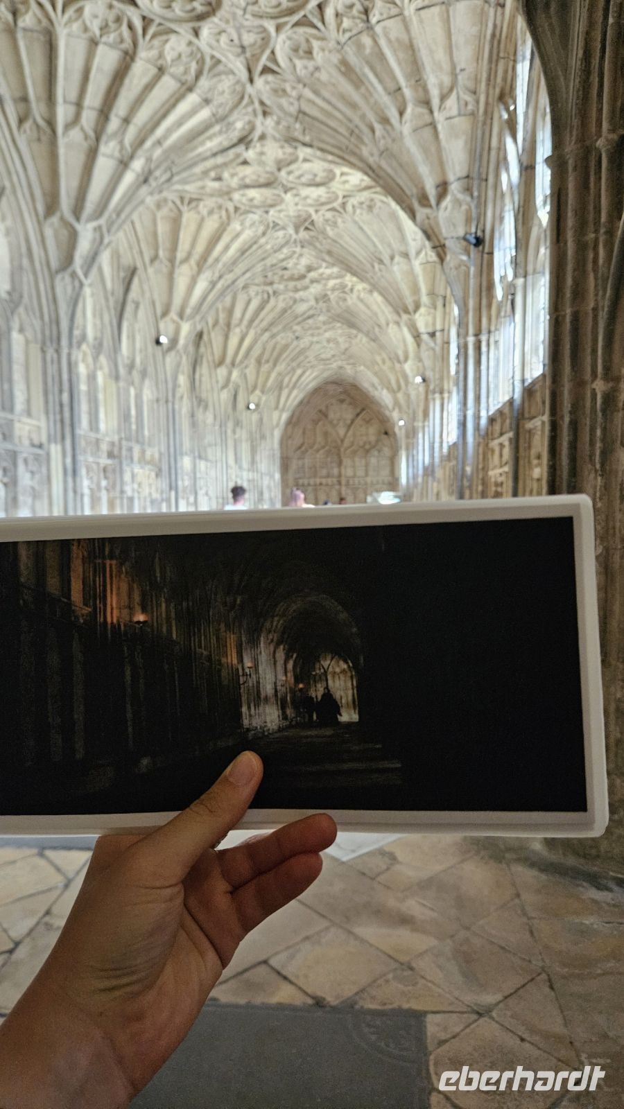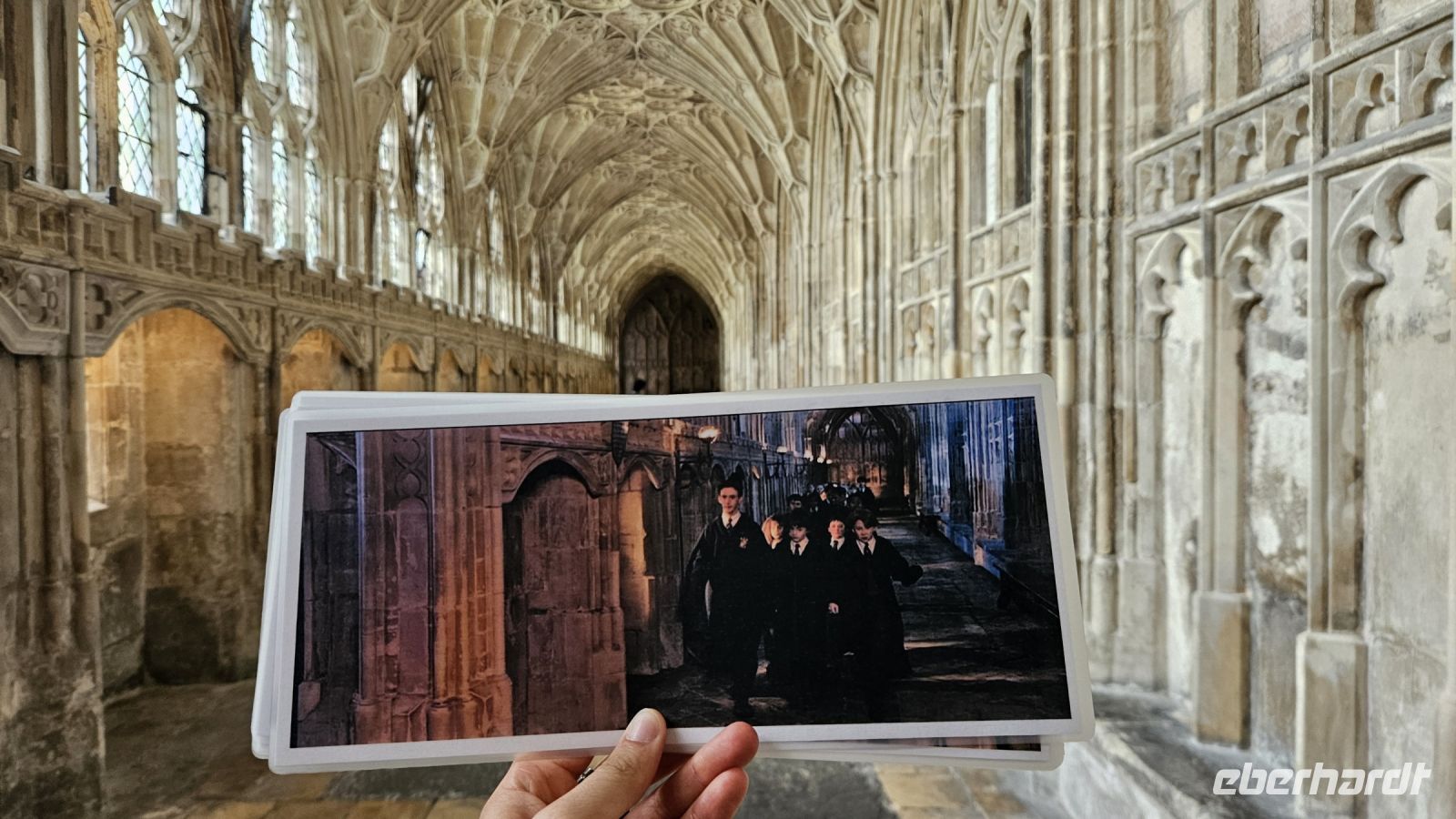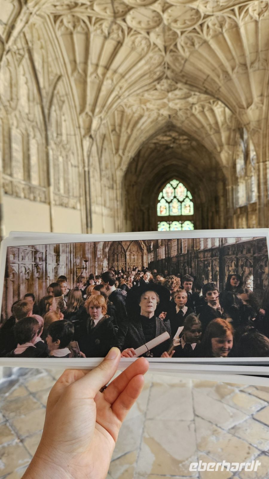 Am Bus wartet dann Maik mit kulinarischen Highlights auf uns. Ob Rostbratwurst oder Soljanka; er hat alles dabei! Nach diesem leckeren Mittagessen geht die Busfahrt weiter nach Gloucester. Hier schauen wir uns die wunderschöne und beeindruckende Kathedrale von Gloucester an. In deren Kreuzgängen wurden nicht nur ein oder zwei Szenen gedreht. Hier wurden viele verschiedene Szenen in verschiedenen Harry Potter Teilen gedreht. Also super Fotomotive!