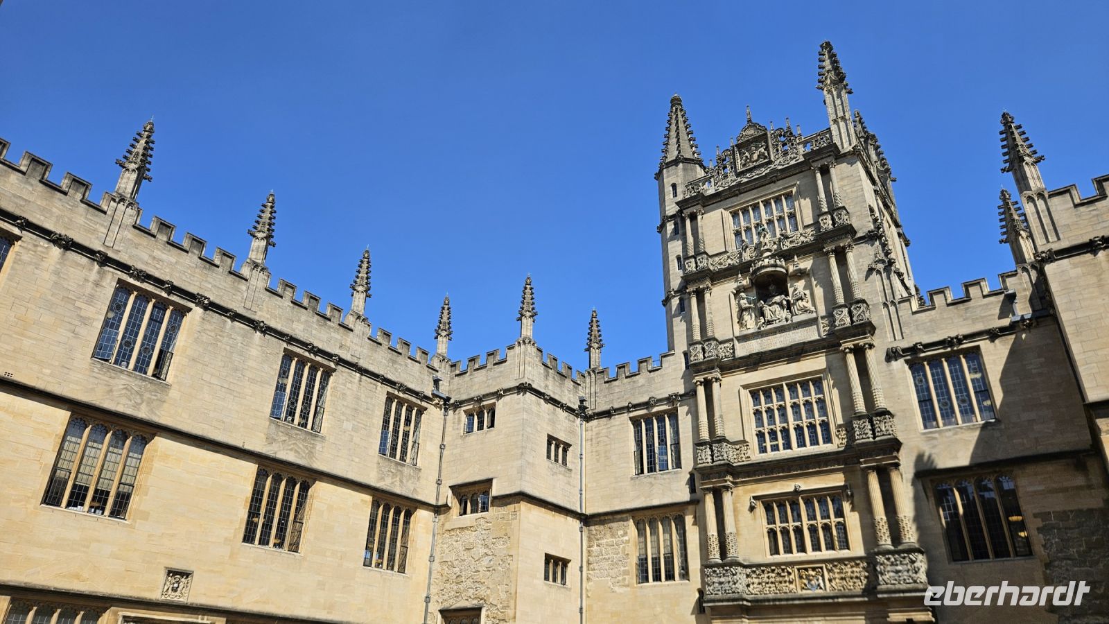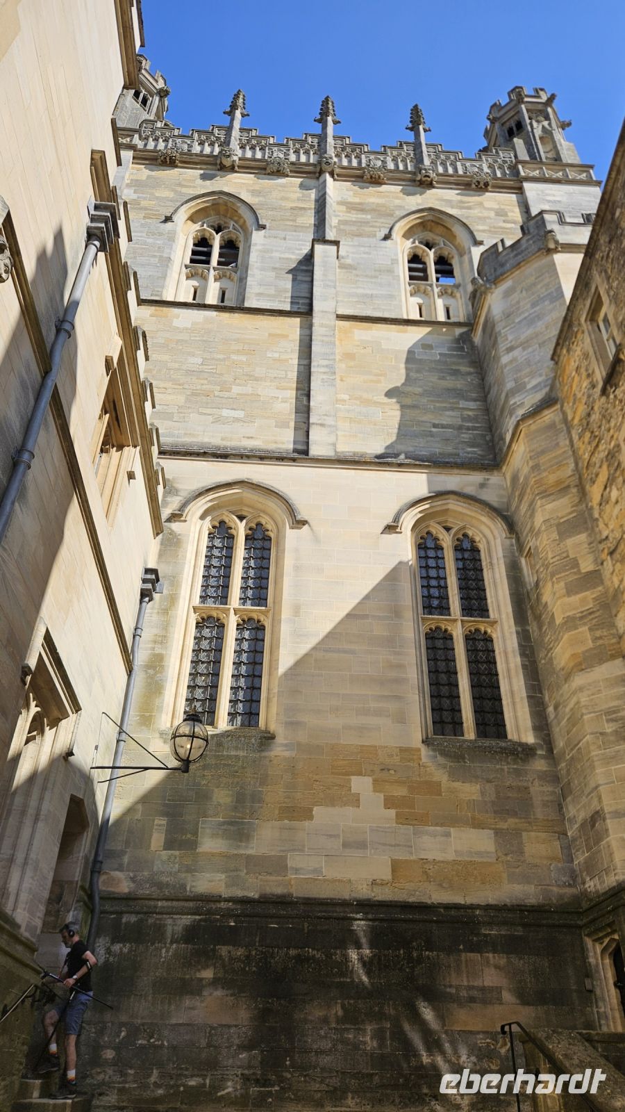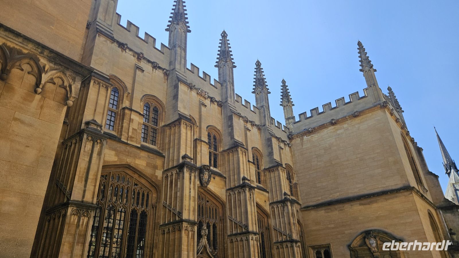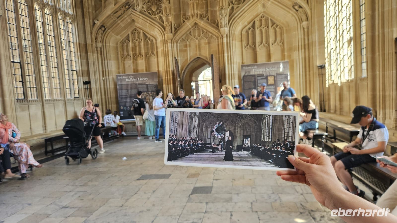 Gut gestärkt treffen wir uns alle wieder an der Divinity School. Hier befinden sich gleich zwei Drehorte: Duke Humfrey´s Libary, die als Drehort für die Bibliothek in Hogwarts genutzt wurde und die Divinity School, die als Drehort für den Krankenflügel, aber auch die Tanzstunde im vierten Teil diente. Tanzen wollte heute aber keiner von uns, aber alle waren begeistert. Danach haben wir alle auf eigene Faust Oxford noch etwas erkundet. Einige sind noch zum New College gegangen, das als Drehort für die Verwandlung von Draco Malfoy zum Frettchen diente und haben dort ein paar schöne Bilder in den Kreuzgängen gemacht. Andere gingen auf Shoppingtour oder schauten sich die Stadt nochmal genauer an und einige genossen einfach die Parks von Oxford bei diesem wunderschönen Wetter.