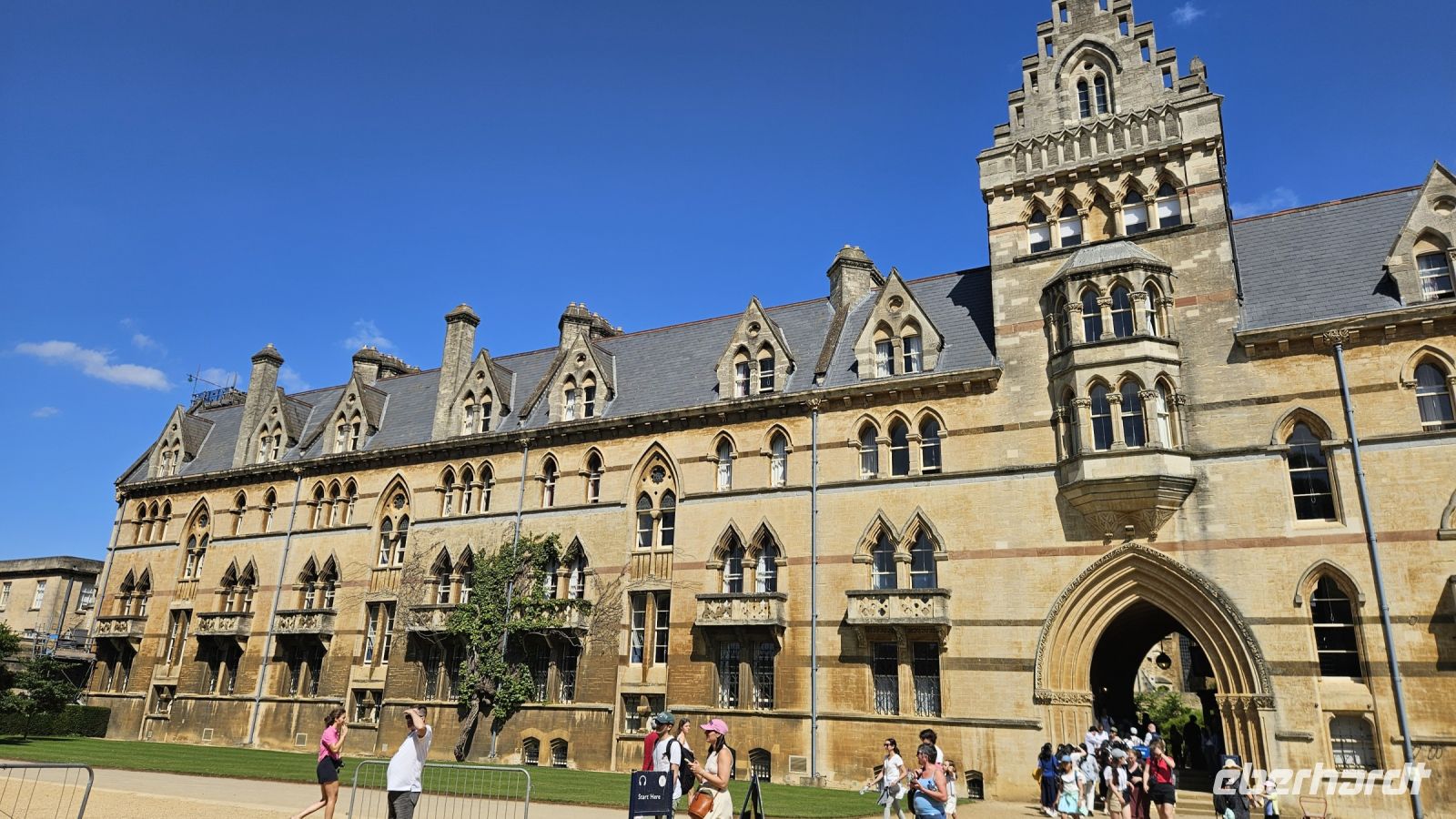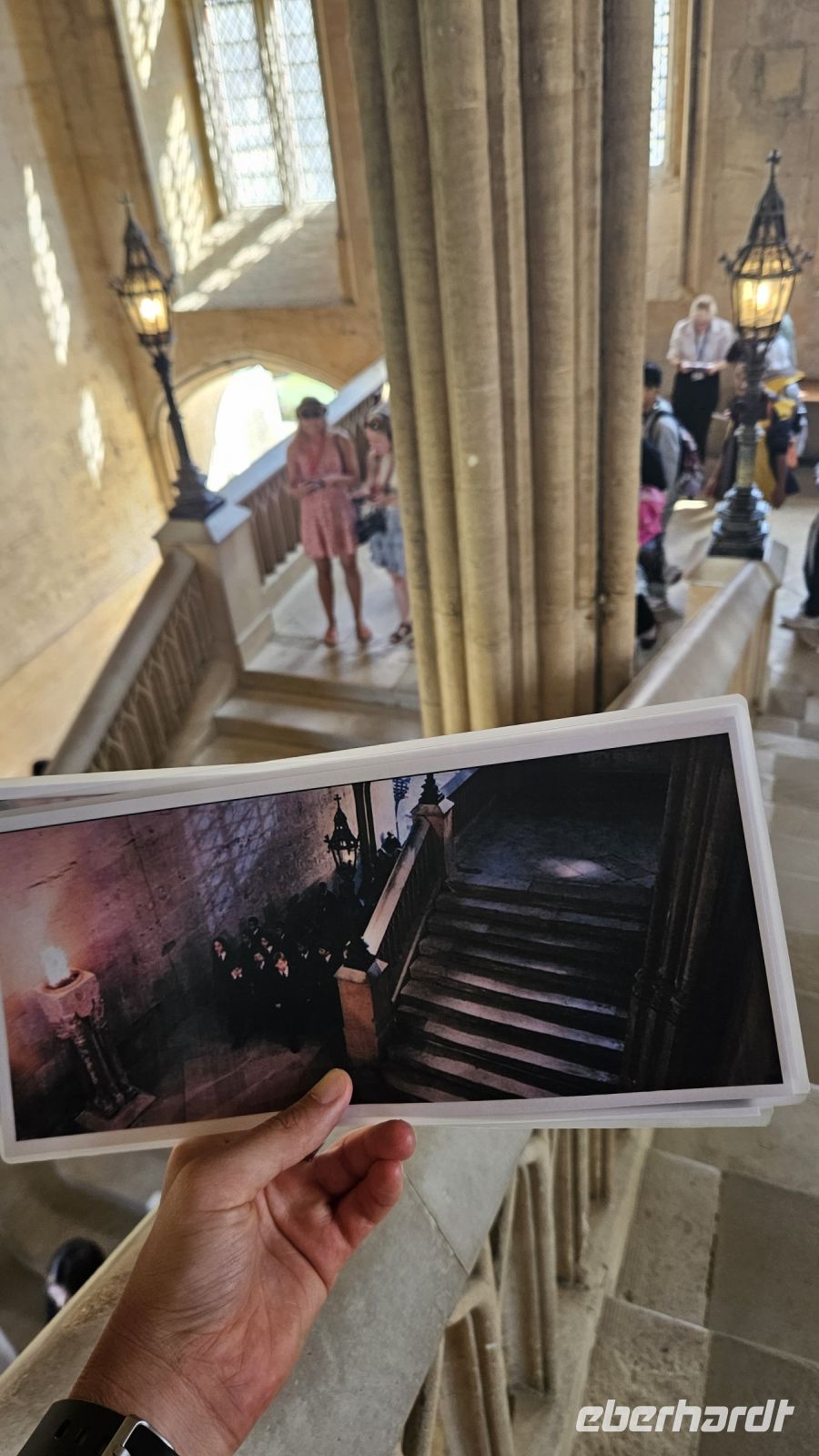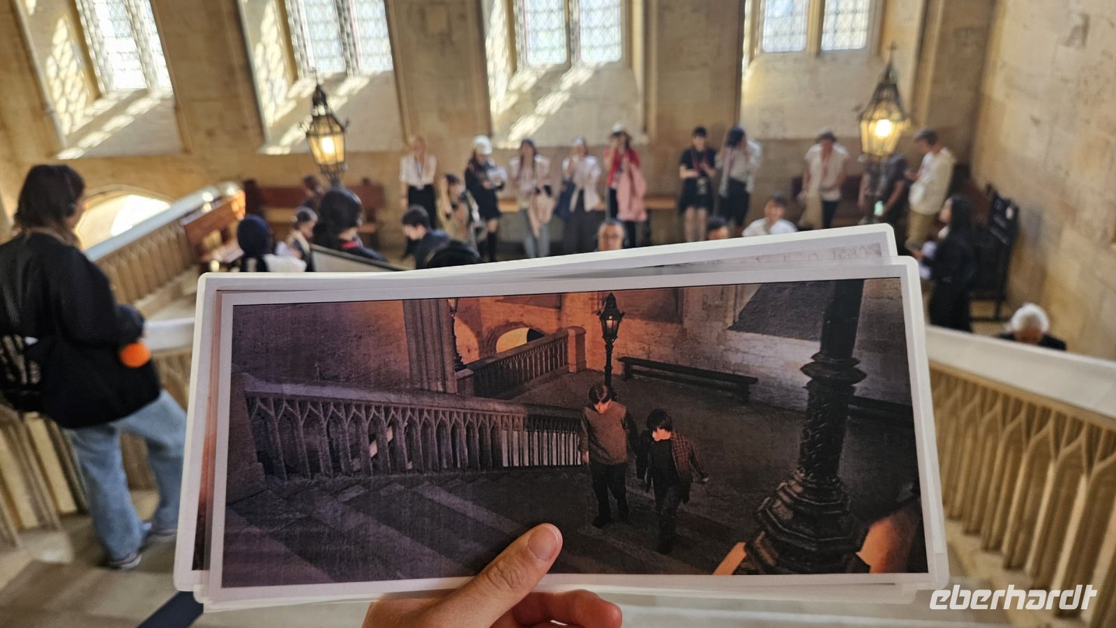 Heute erleben wir einen Hauch von universitärem Flair im wunderschönen Oxford. Unser erster Stopp ist das altehrwürdige College Christ Church. Hier wurden einige Treppenszenen von Harry Potter gedreht. Unter anderem gehen die Erstklässler hier die Treppe hinauf nach ihrer Bootsüberfahrt und werden oben von Professor McGonagall begrüßt. Aber auch Tom Riddle und Harry sind diese Treppe im zweiten Teil nach oben gelaufen. Der dahinterliegende Speisesaal war die Inspiration für die Große Halle von Hogwarts, die wir dann am nächsten Tag in den Warner Bros. Studios sehen werden. Nachdem alle ihren Rundgang in diesem großen und prunkvollen College beendet haben, geht es für alle weiter mit einer Stadtführung. Susanne und Ian führen uns in die wunderschöne Innenstadt von Oxford. Hier kommt bei einigen der Wunsch auf auch hier studieren zu können, wie es unter anderem C.S. Lewis und J.R.R. Tolkien schon getan haben. Dann haben alle eine kurze Mittagspause.