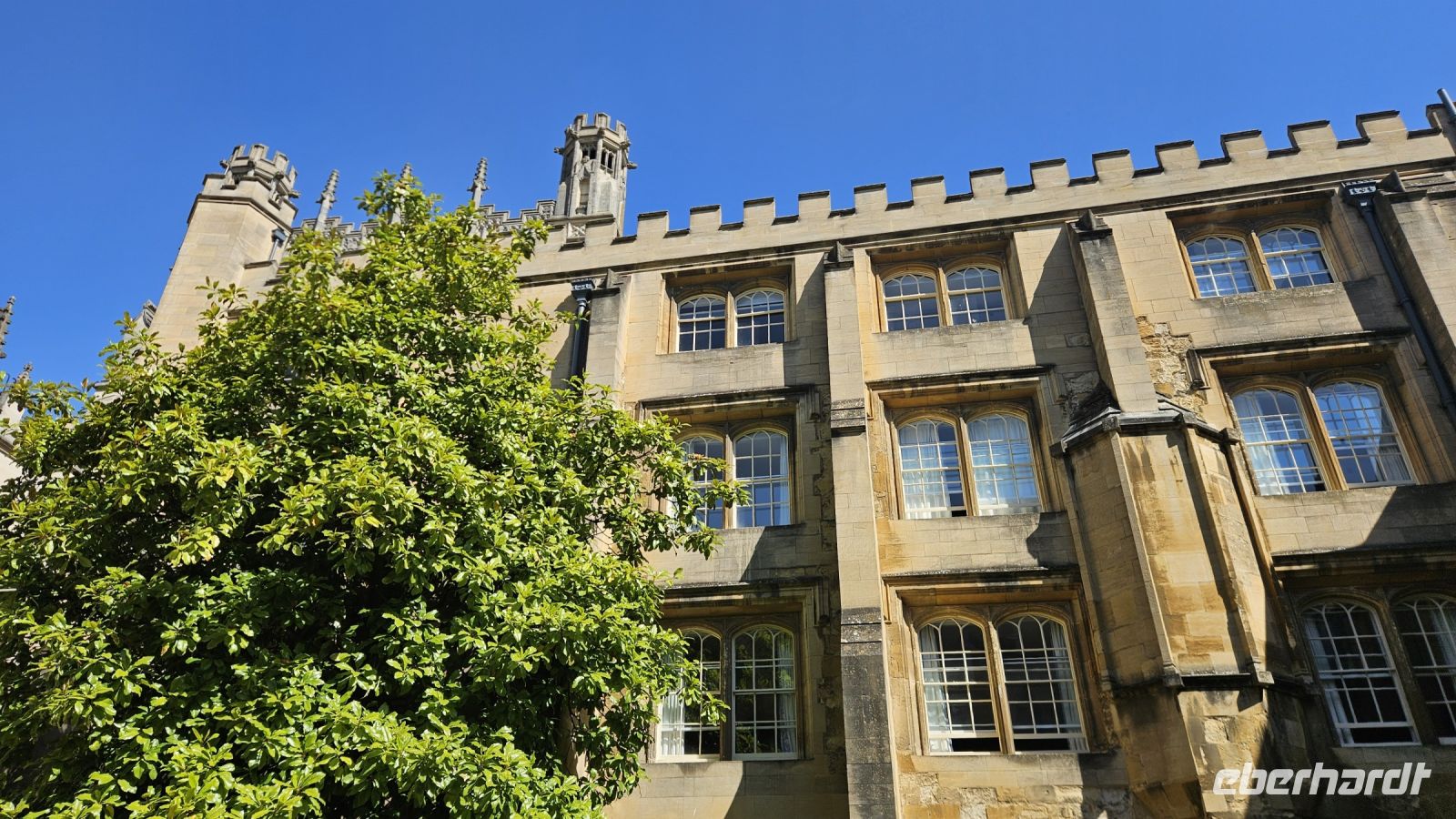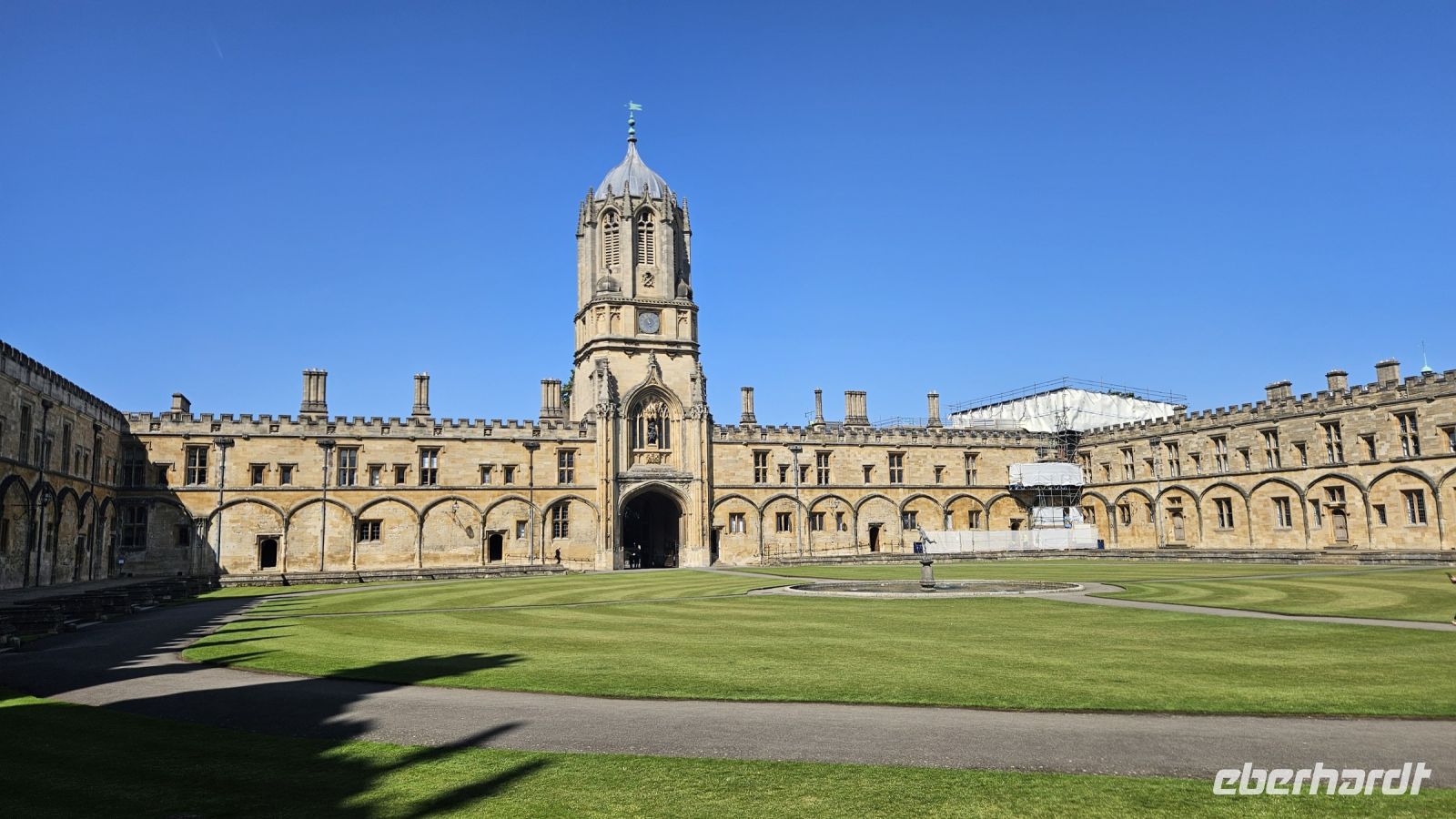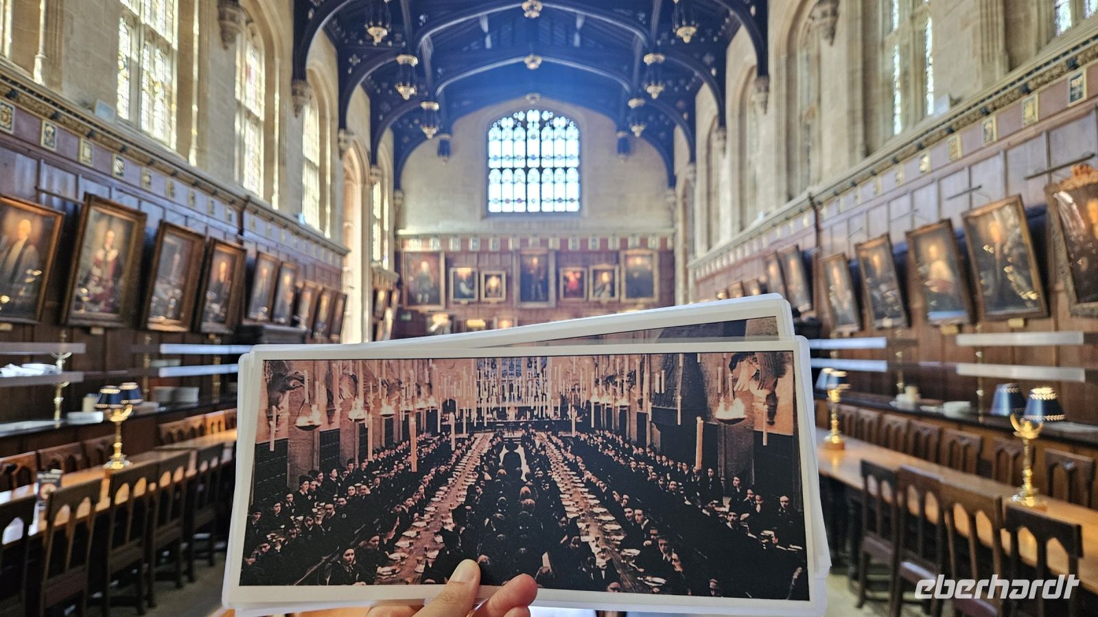 Heute erleben wir einen Hauch von universitärem Flair im wunderschönen Oxford. Unser erster Stopp ist das altehrwürdige College Christ Church. Hier wurden einige Treppenszenen von Harry Potter gedreht. Unter anderem gehen die Erstklässler hier die Treppe hinauf nach ihrer Bootsüberfahrt und werden oben von Professor McGonagall begrüßt. Aber auch Tom Riddle und Harry sind diese Treppe im zweiten Teil nach oben gelaufen. Der dahinterliegende Speisesaal war die Inspiration für die Große Halle von Hogwarts, die wir dann am nächsten Tag in den Warner Bros. Studios sehen werden. Nachdem alle ihren Rundgang in diesem großen und prunkvollen College beendet haben, geht es für alle weiter mit einer Stadtführung. Susanne und Ian führen uns in die wunderschöne Innenstadt von Oxford. Hier kommt bei einigen der Wunsch auf auch hier studieren zu können, wie es unter anderem C.S. Lewis und J.R.R. Tolkien schon getan haben. Dann haben alle eine kurze Mittagspause.