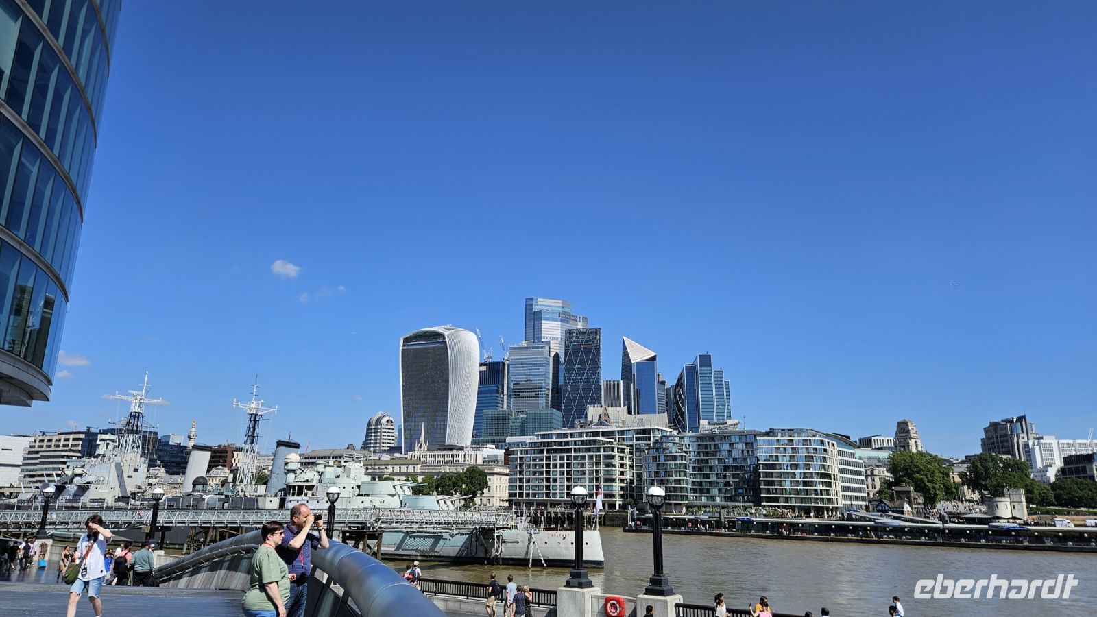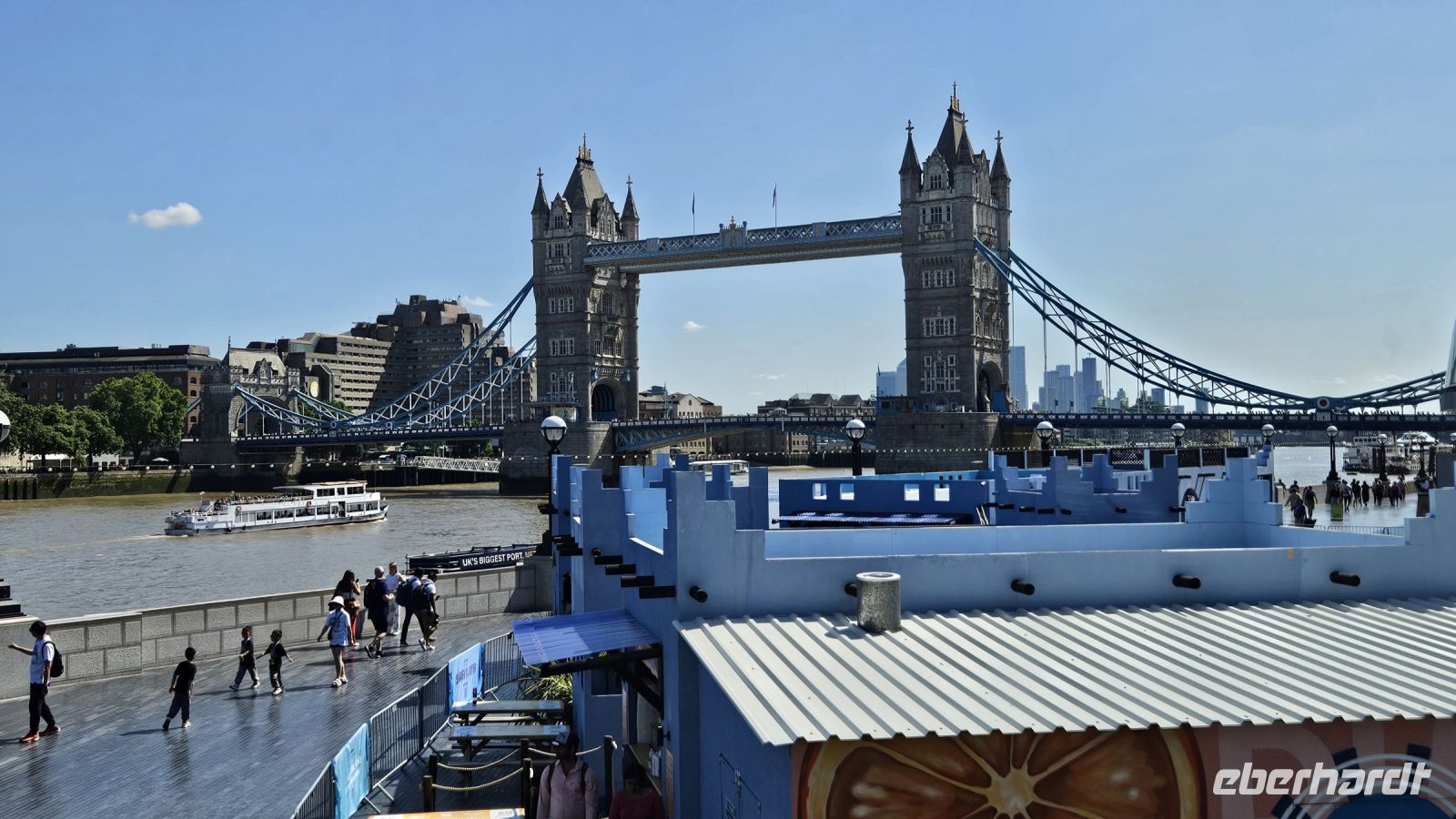Wieder eingestiegen in den Bus fährt uns Maik vorbei an Trafalger Square, Piccadilly Circus, Westminster Abbey und dem Parlament. Aber wir wären nun mal nicht die Eberhardt Version vom „Fahrenden Ritter“, wenn wir nicht über die Lambeth Bridge fahren würden, wie dieser das im dritten Teil gemacht hat. Zum Glück teilt sich unsere Eberhardt Version nicht auf der Brücke.